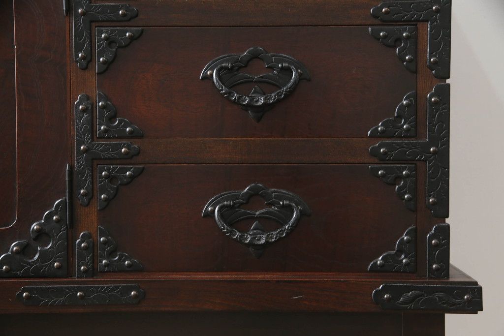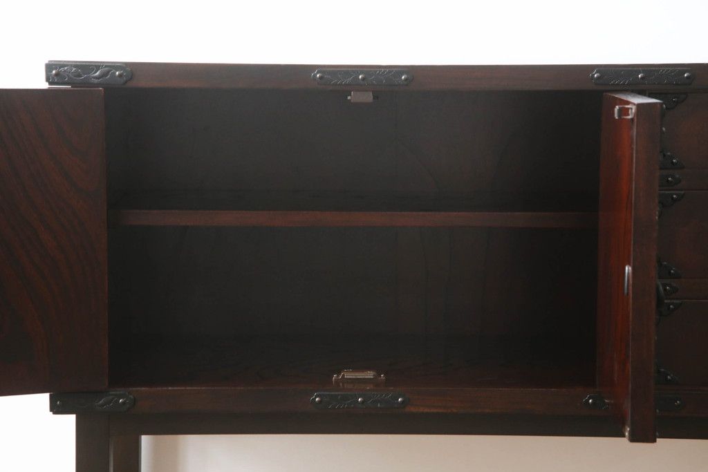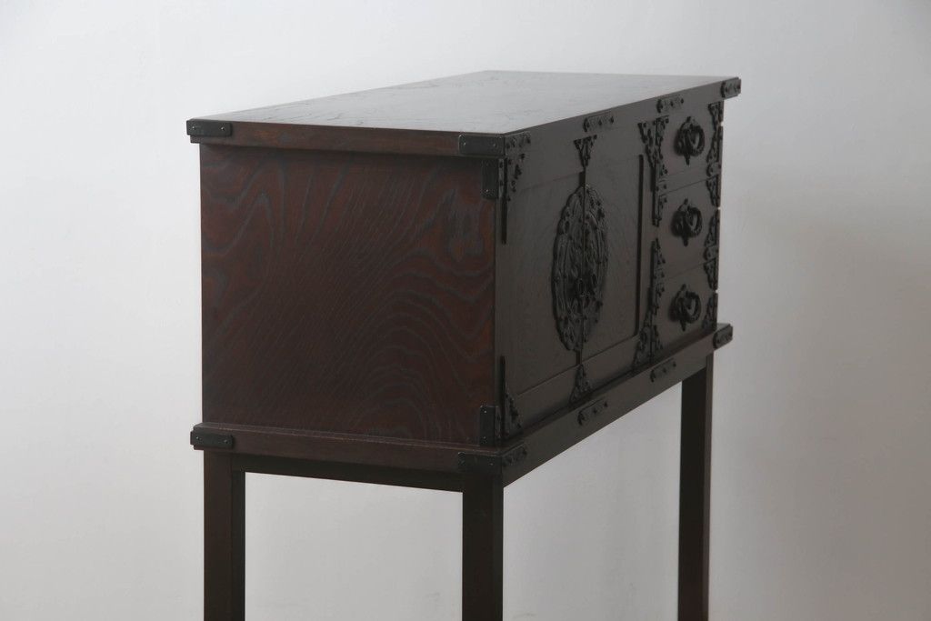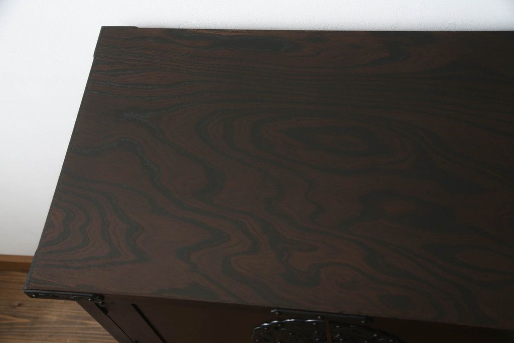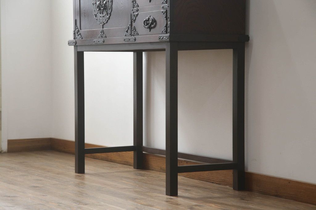 民芸家具 > 岩谷堂箪笥をリペア&カスタム!台輪をカットし木製脚を取り付け。1トーン落ち着いた色味に着色仕上げ。(サイドボード、サイドキャビネット、戸棚、収納棚、引き出し、収納箪笥、和タンス)