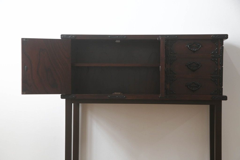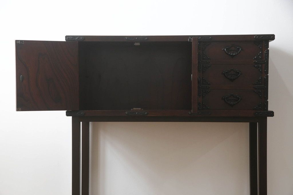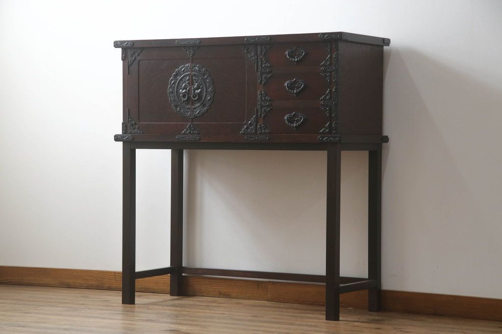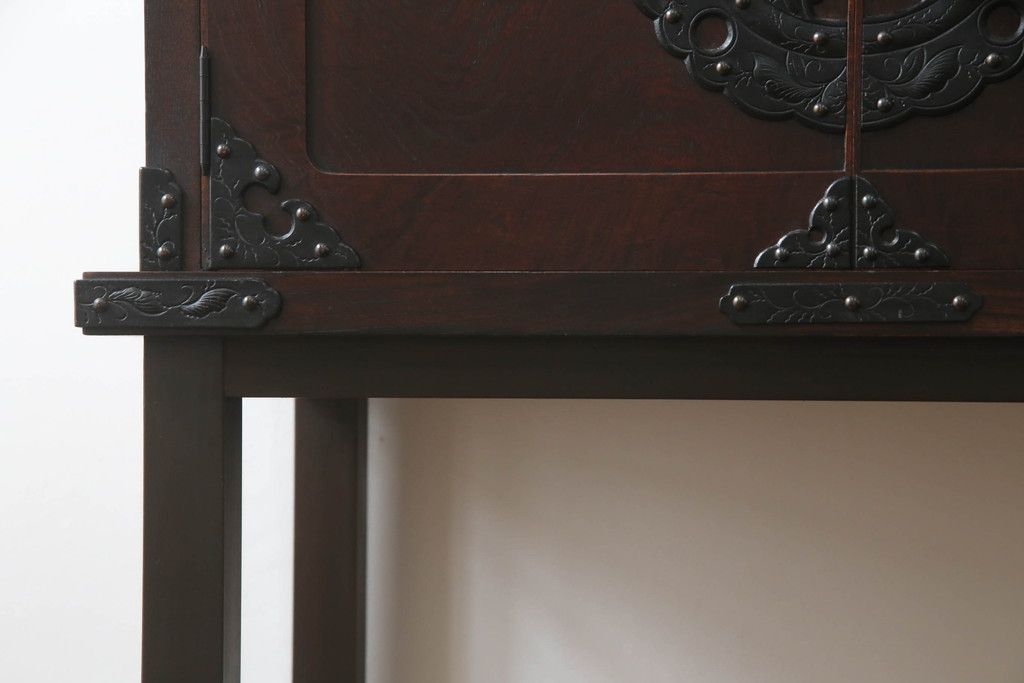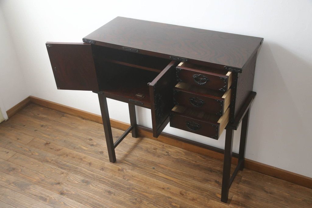 民芸家具 > 岩谷堂箪笥をリペア&カスタム!台輪をカットし木製脚を取り付け。1トーン落ち着いた色味に着色仕上げ。(サイドボード、サイドキャビネット、戸棚、収納棚、引き出し、収納箪笥、和タンス)