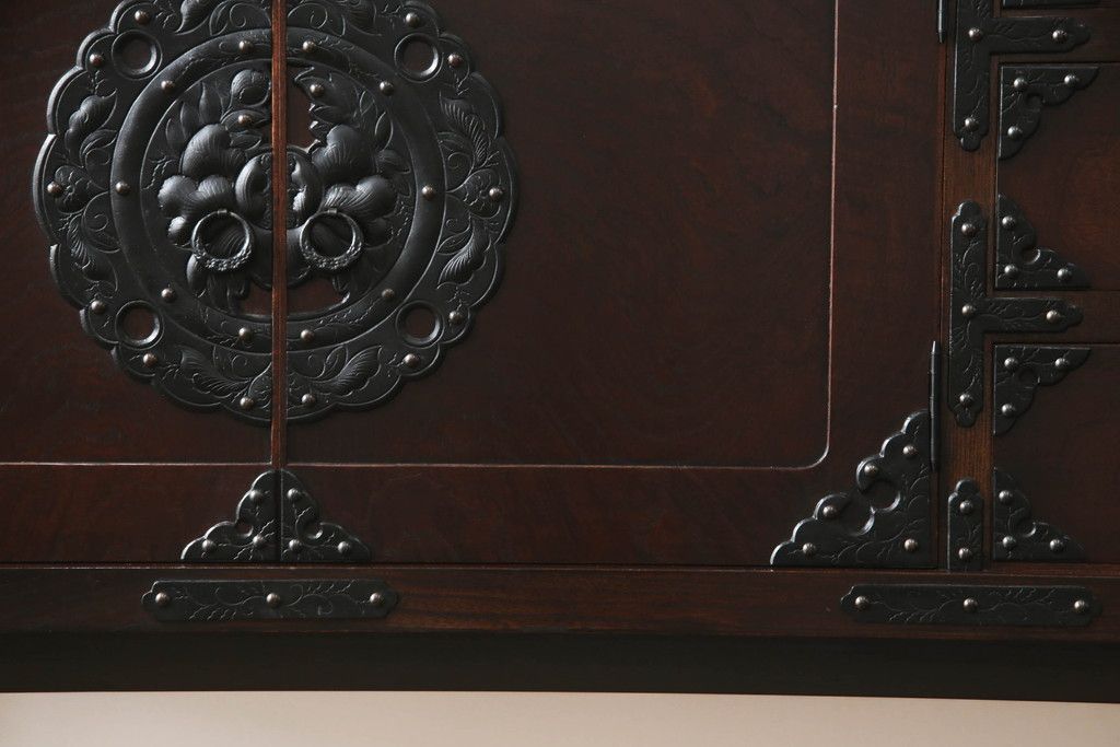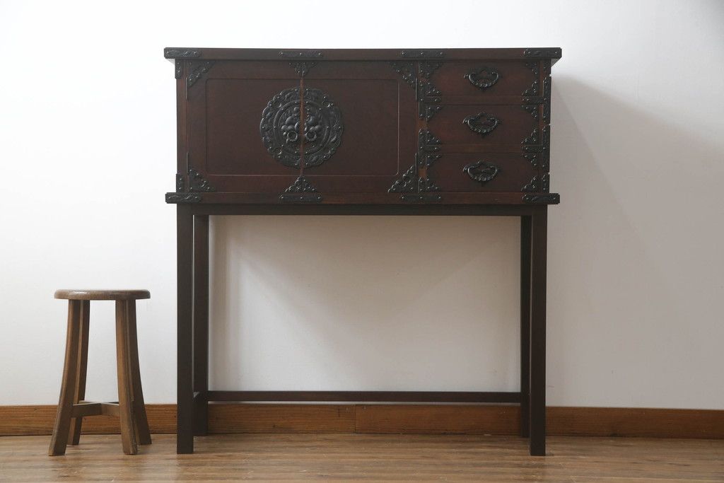 キャビネット・戸棚> サイドキャビネット > 岩谷堂箪笥をリペア&カスタム!台輪をカットし木製脚を取り付け。1トーン落ち着いた色味に着色仕上げ。(サイドボード、サイドキャビネット、戸棚、収納棚、引き出し、収納箪笥、和タンス)