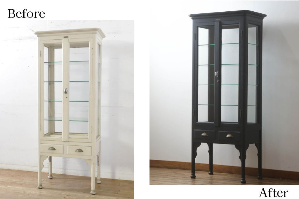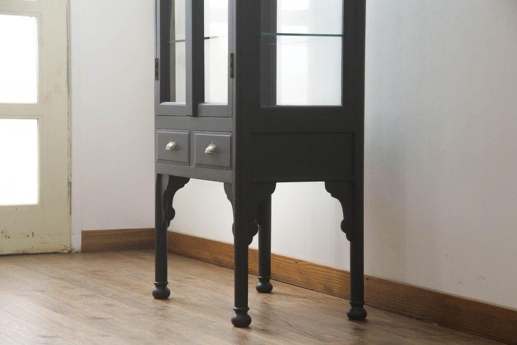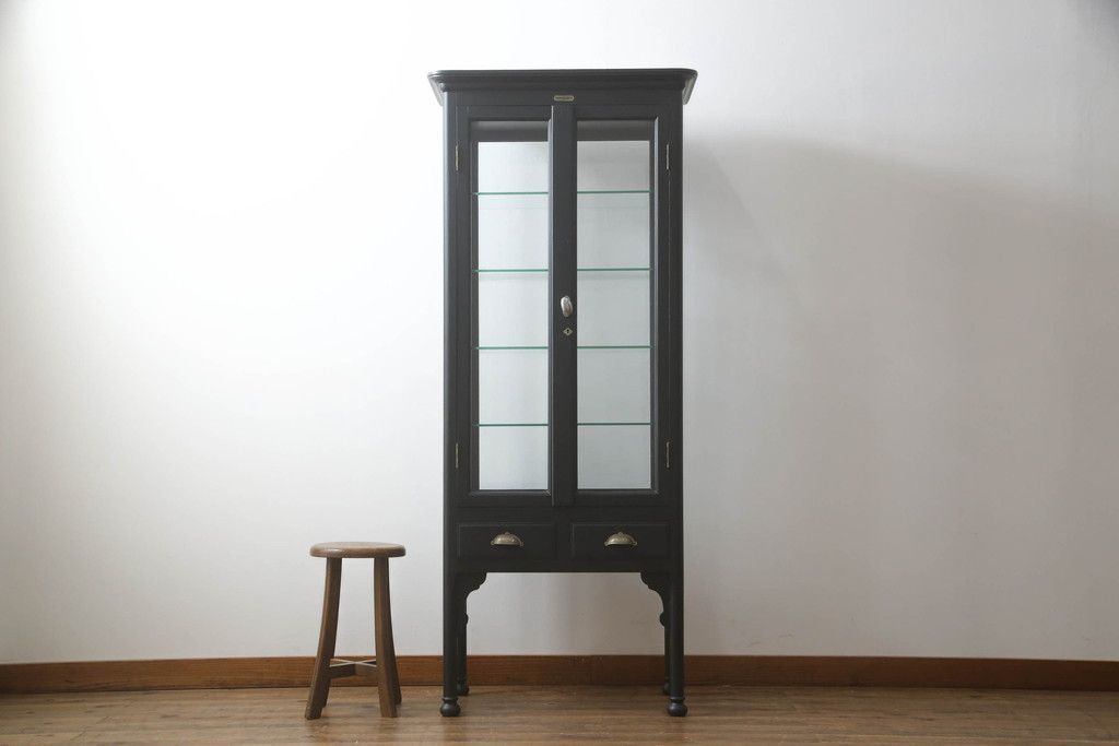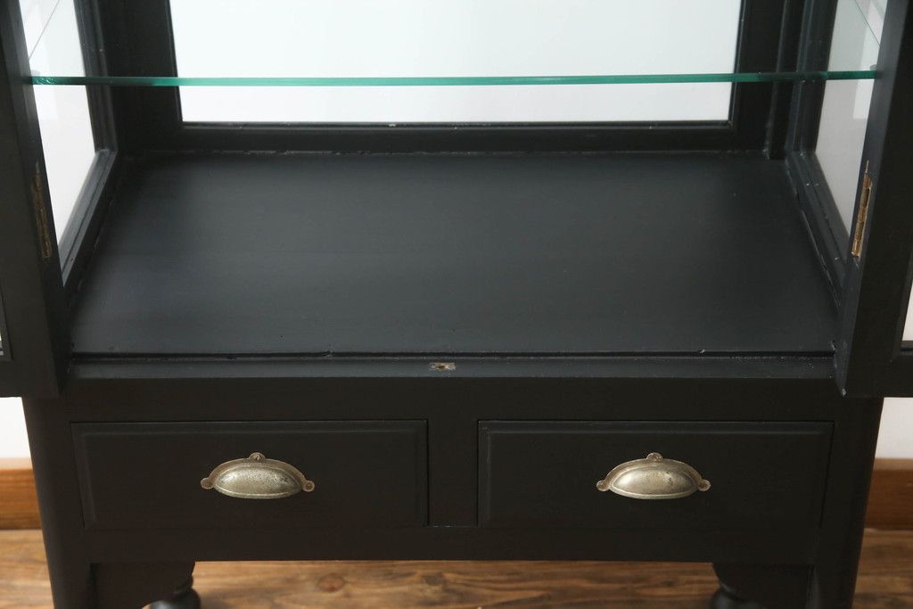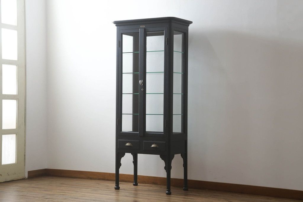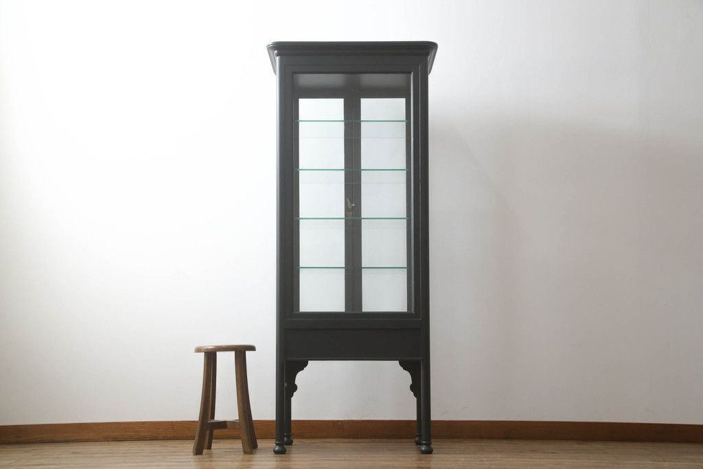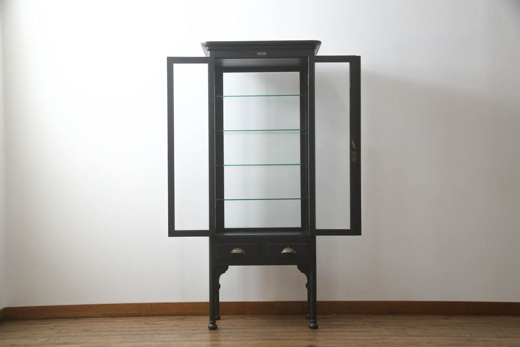 セミオーダー家具実績 > ケビントガラスケースをリペア&カスタム!鍵を製作し、本体をマットブラックでペイント仕上げ。(ショーケース、デンタルケース、デンタルキャビネット、陳列棚、飾り棚、収納棚、戸棚、店舗什器)