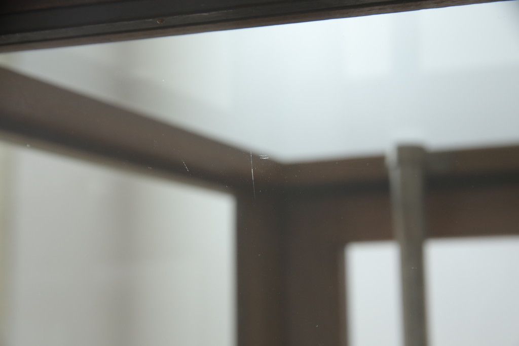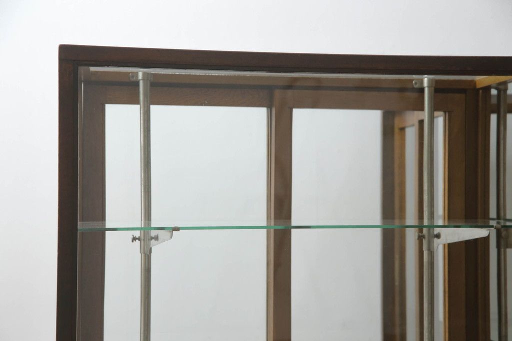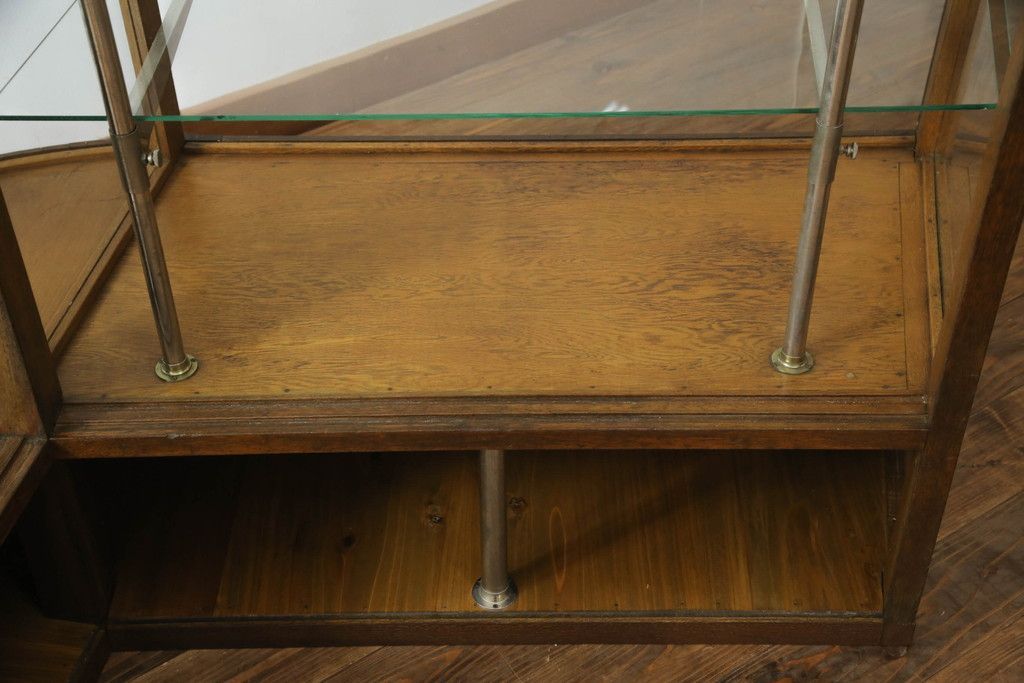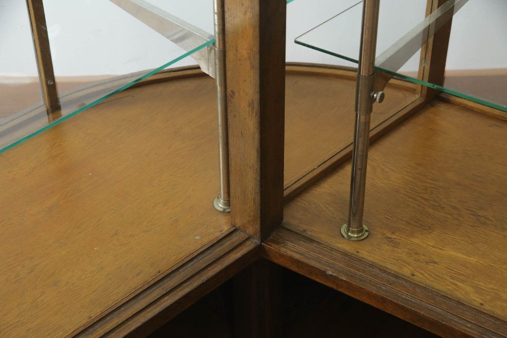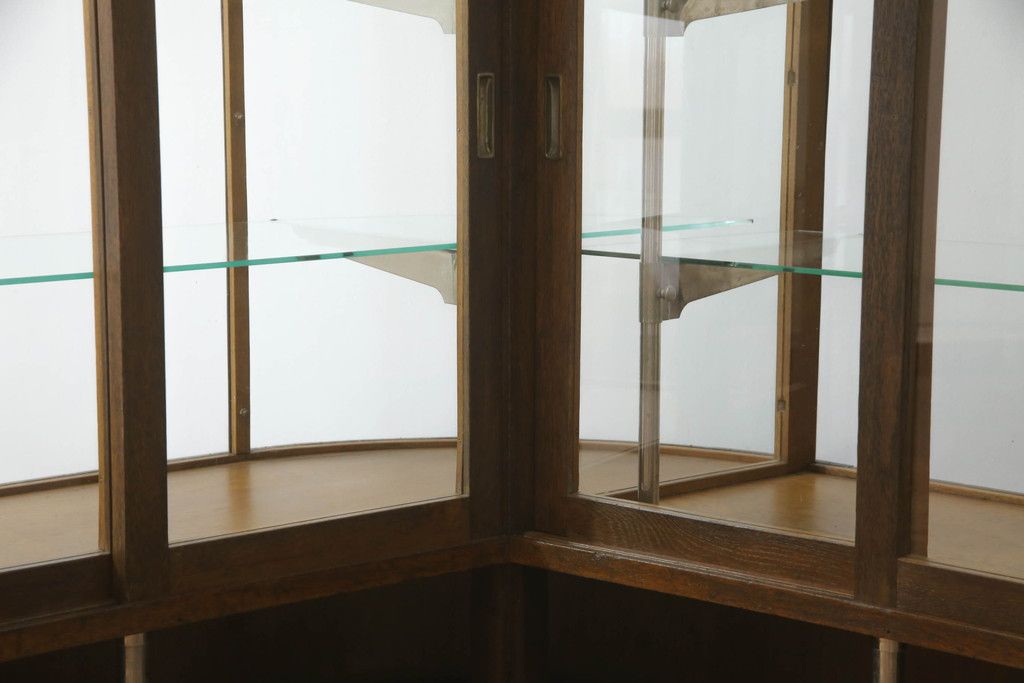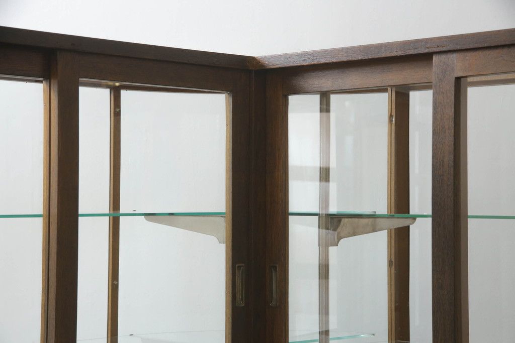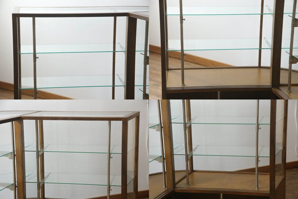 店舗什器 > L字ガラスケースをリペア&カスタム!高品質リペアを施し、下部は物を収納できるようオープン仕様に。1トーン落ち着いた色味に着色仕上げ。(Rガラス、ショーケース、店舗什器、陳列棚、曲げガラス)