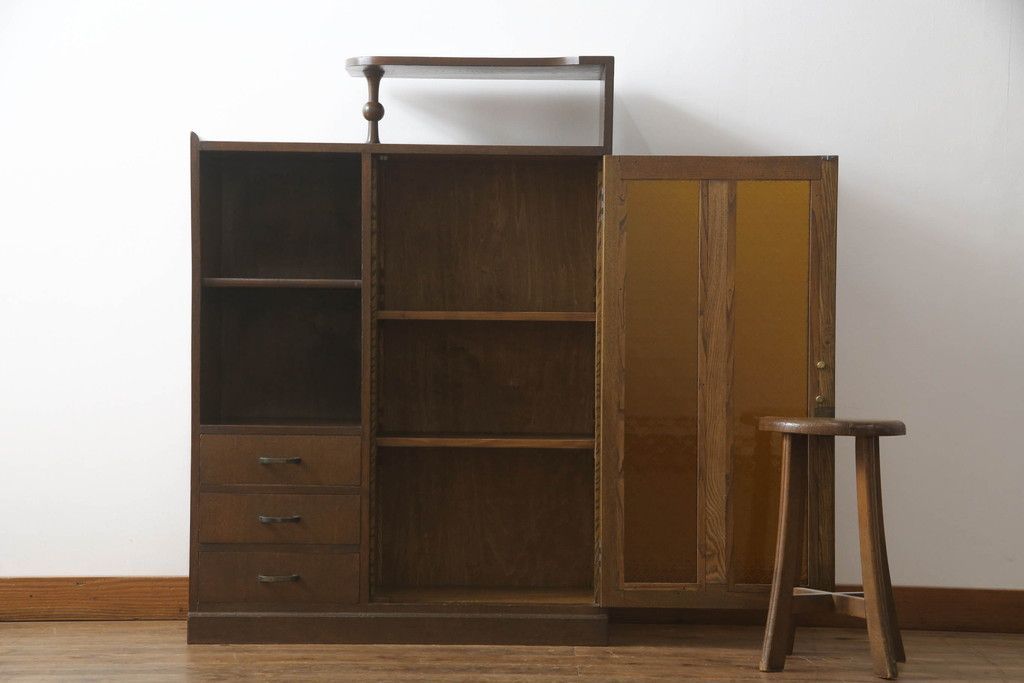 戸棚をリペア&カスタム!扉のガラスを模様入りのカラーガラスに変更。(収納棚、本箱、キャビネット、引き出し)