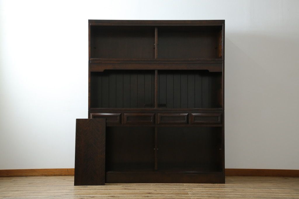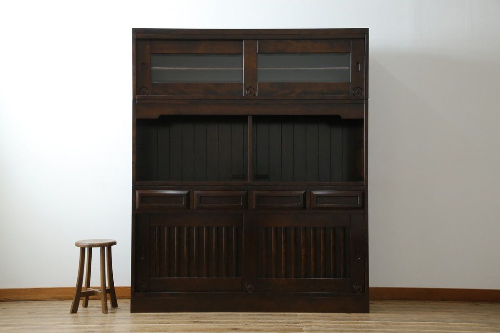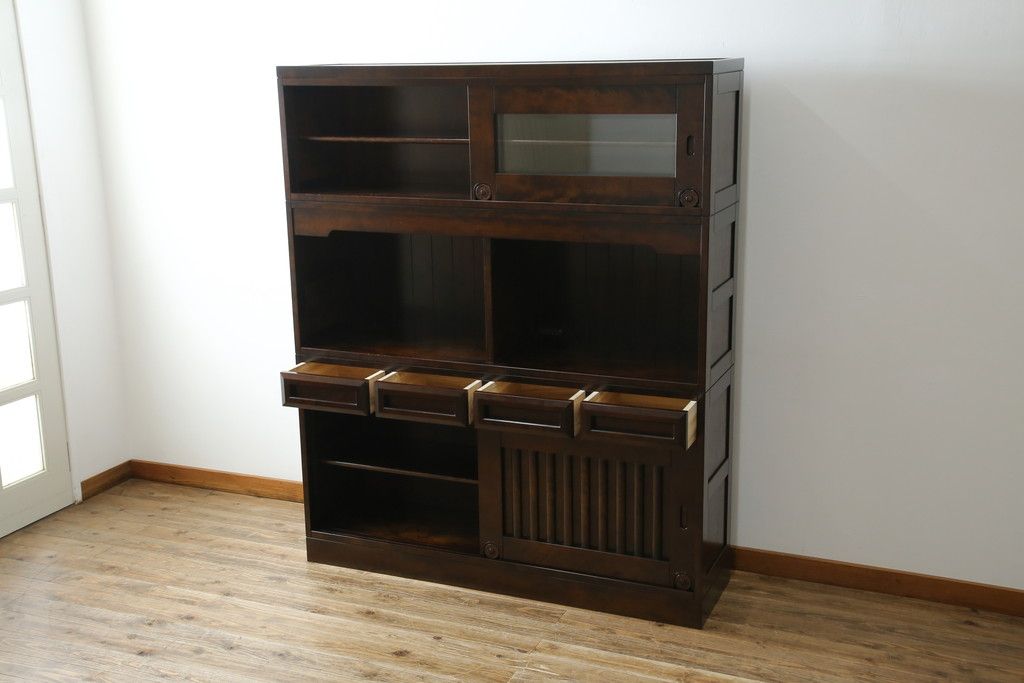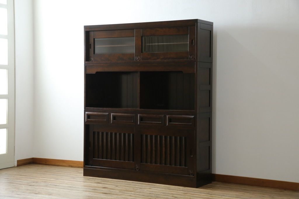 中古 美品 星野民芸(星野民藝) 落ち着いたシックな色合いが魅力の高山式食器棚(水屋箪笥、和風キャビネット、飾り棚、収納棚、戸棚)(R-075403)