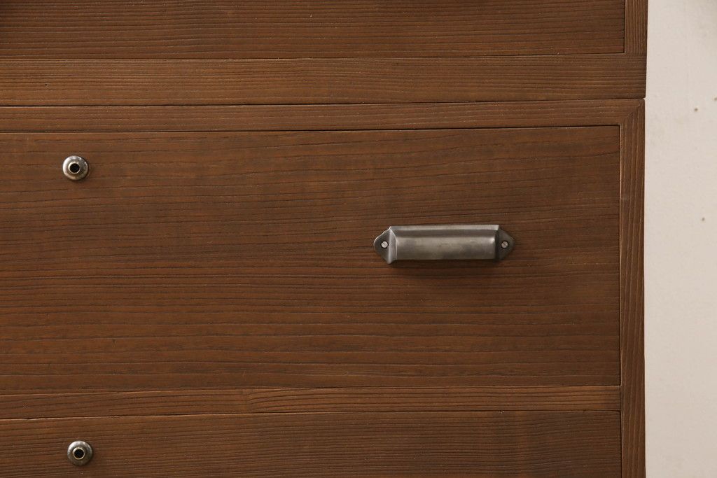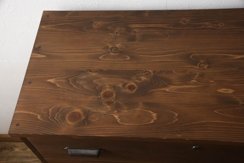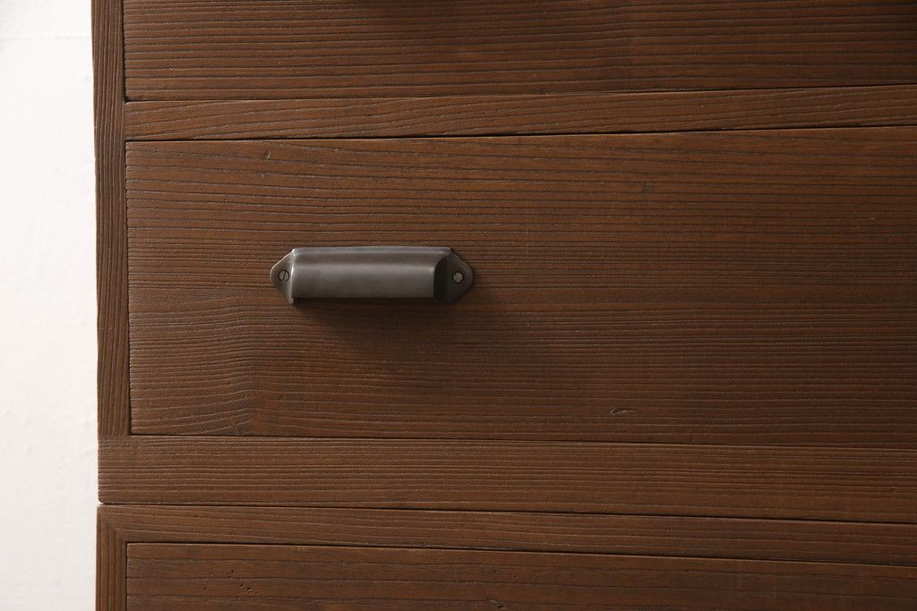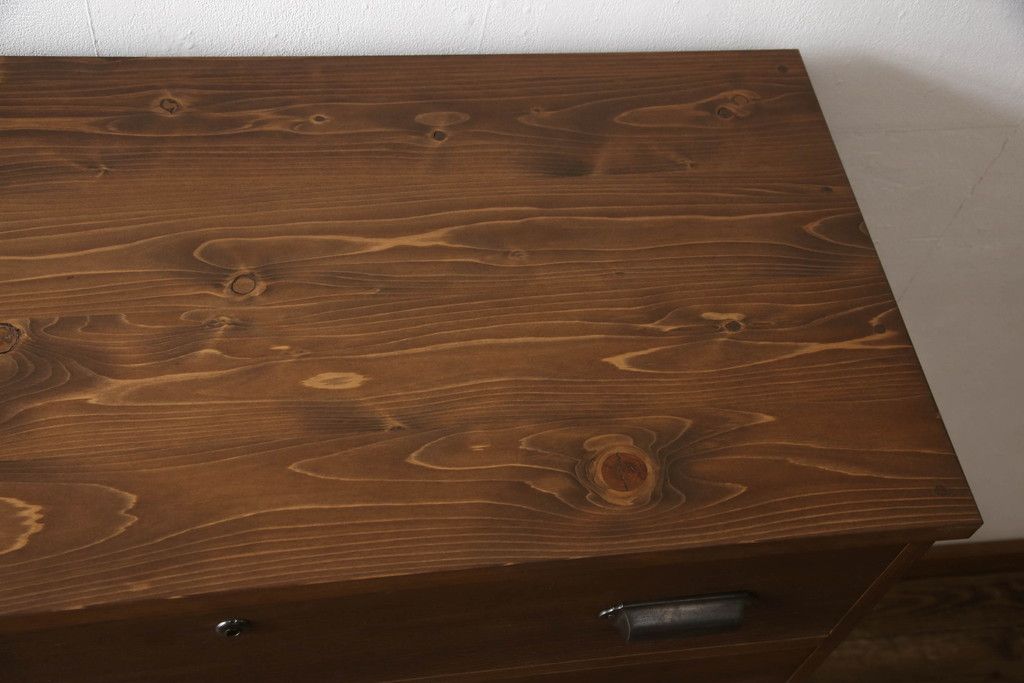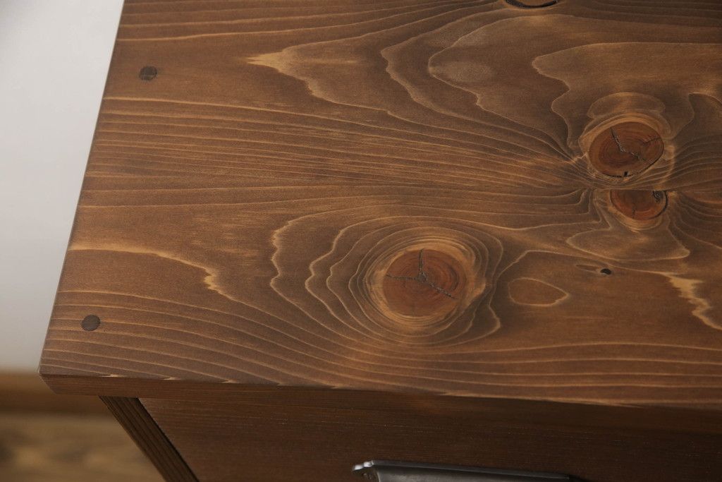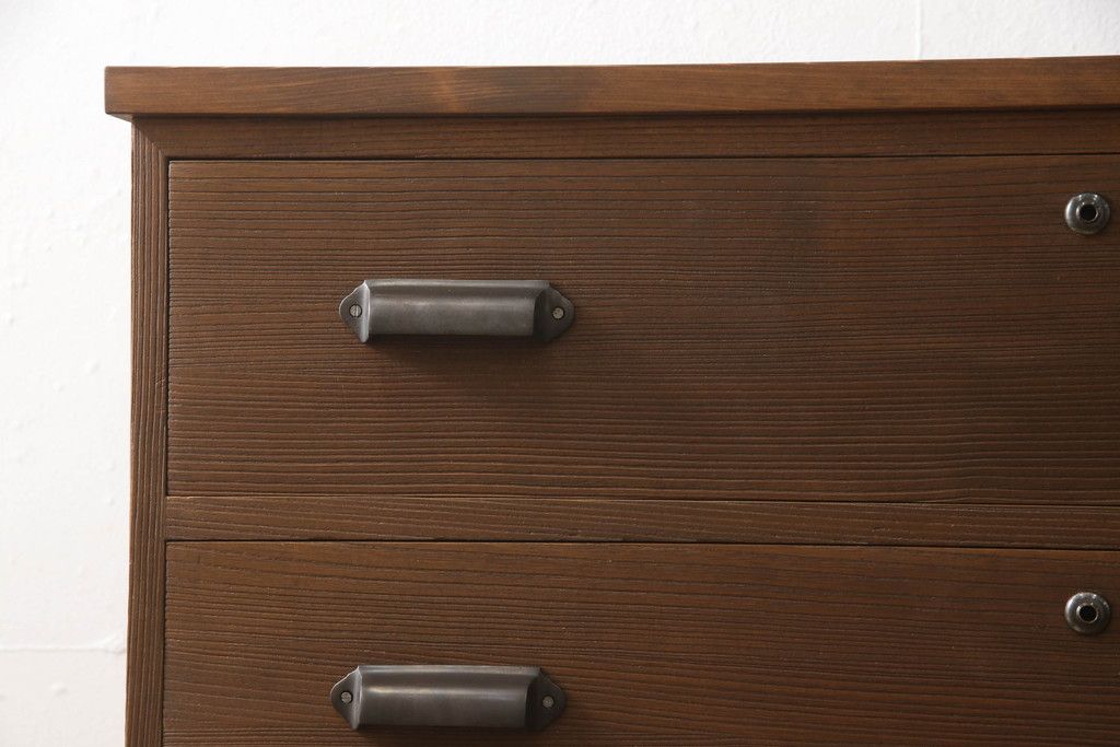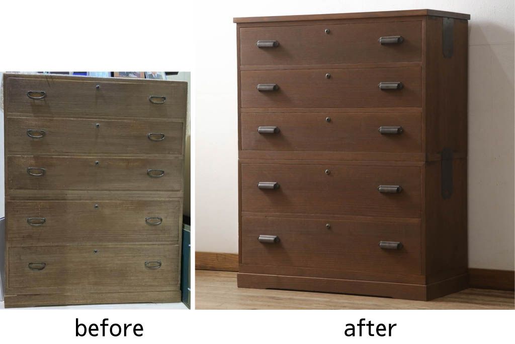 2段重ね桐箪笥を綺麗に再生!取っ手を交換し、ヒノキ無垢材で天板を取り付け。オーク系の着色と蜜蝋ワックス仕上げ。