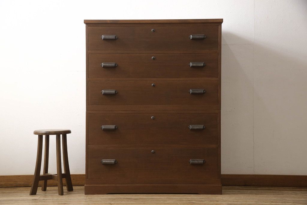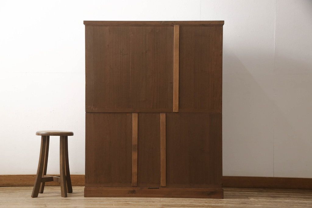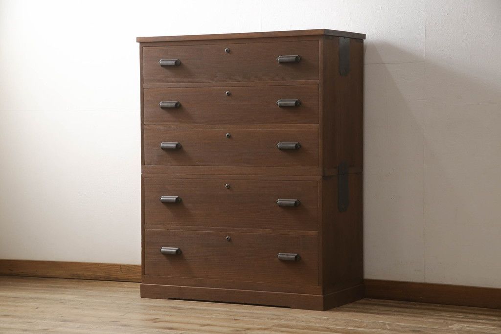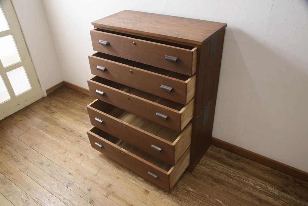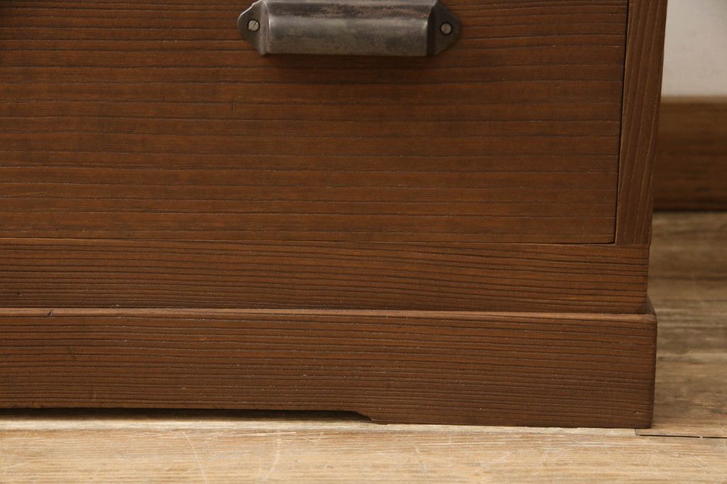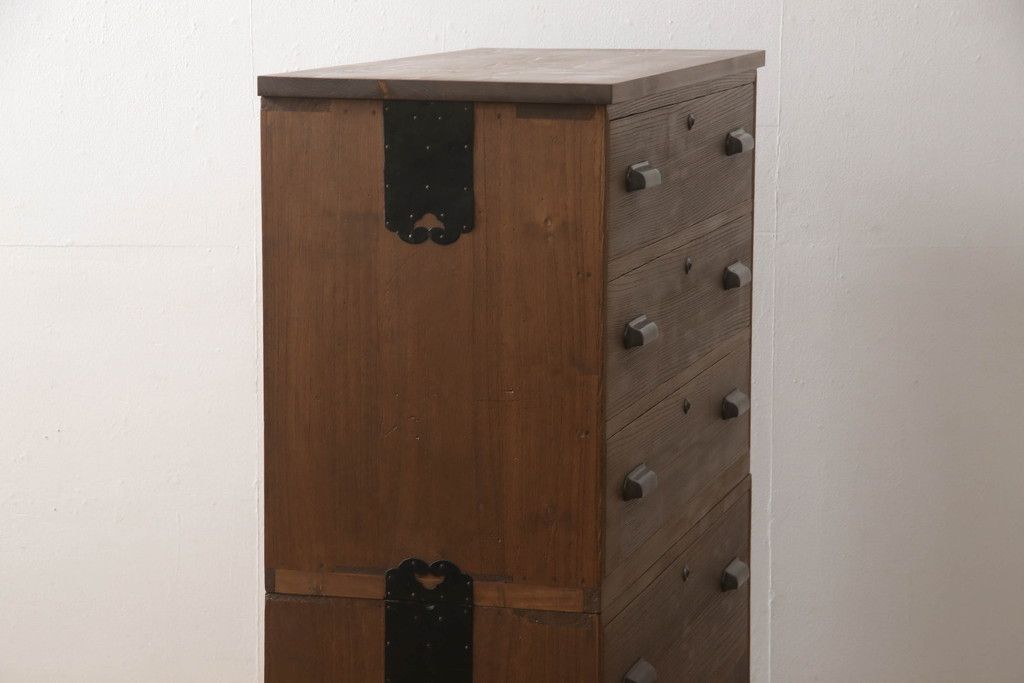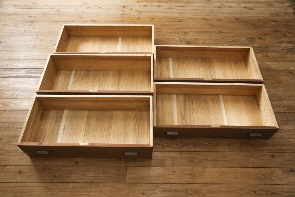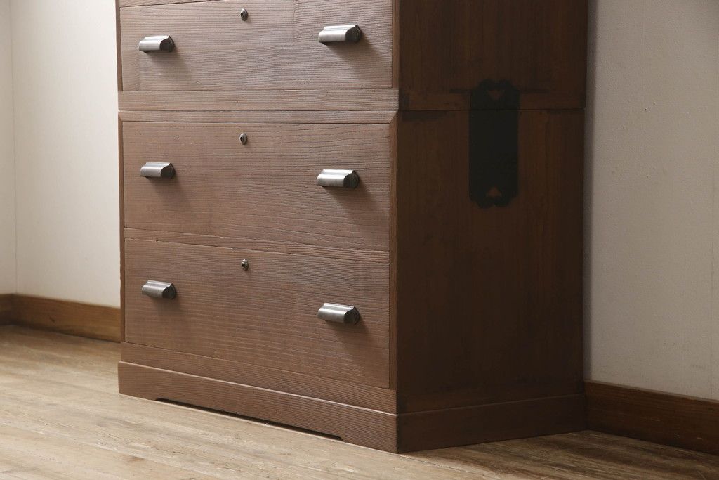 2段重ね桐箪笥を綺麗に再生!取っ手を交換し、ヒノキ無垢材で天板を取り付け。オーク系の着色と蜜蝋ワックス仕上げ。