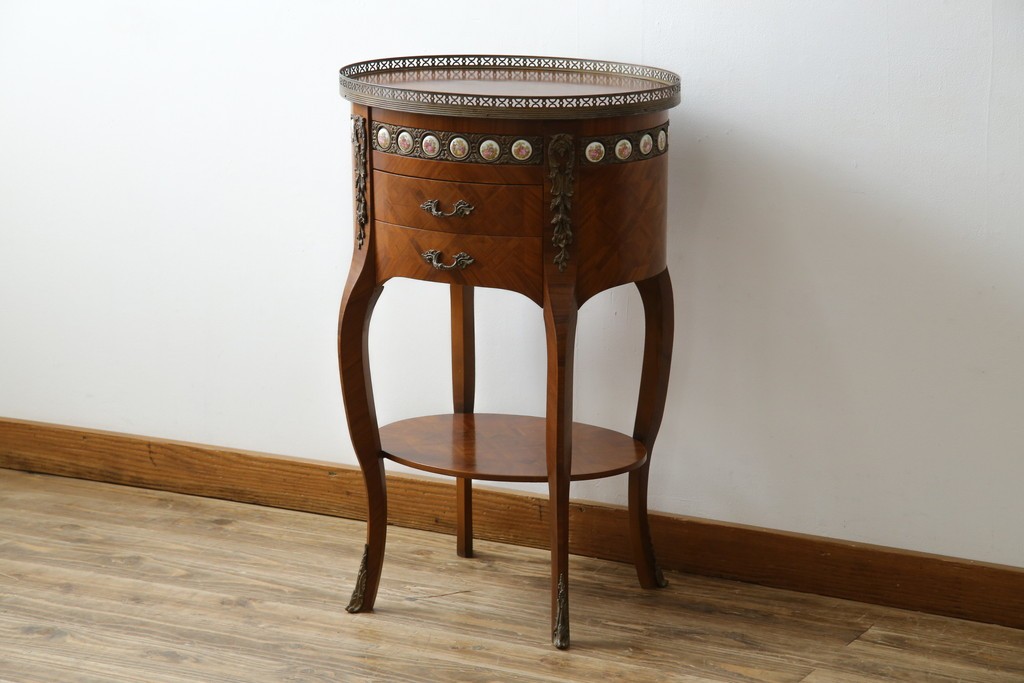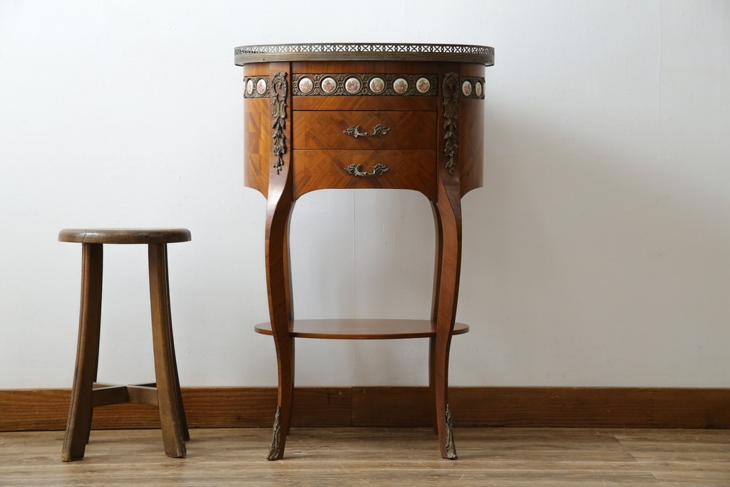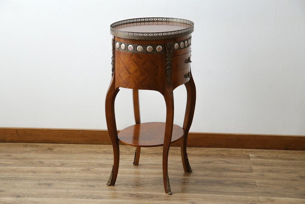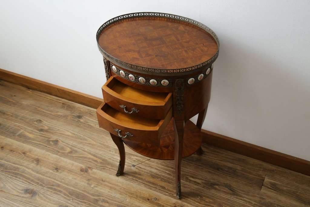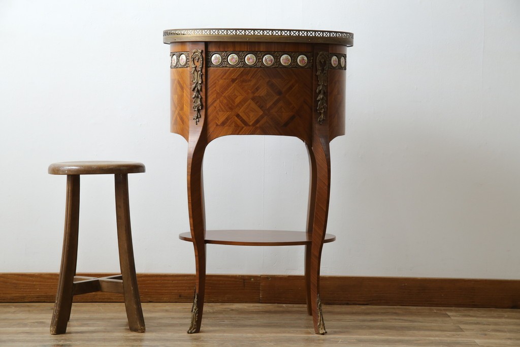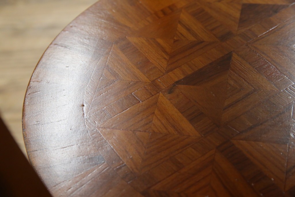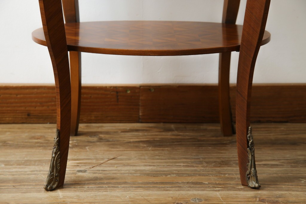 テーブル > 中古 スペイン家具 マリネール(Mariner) パーケットリー(寄木細工) すっと伸びた猫脚が上品なサイドテーブル (R-075443)