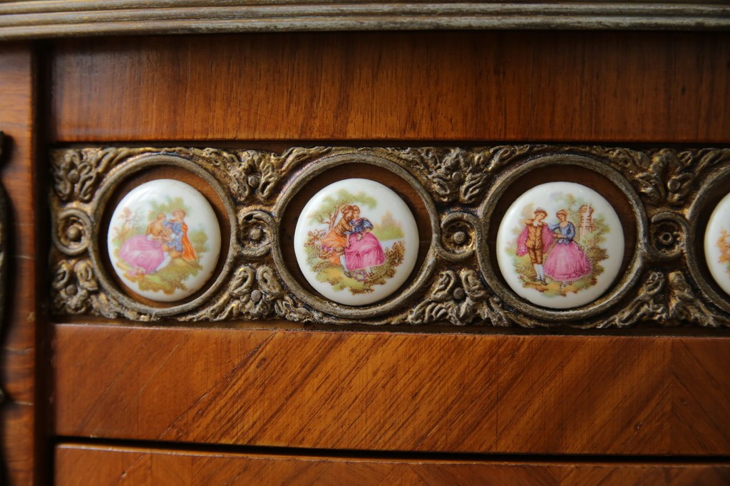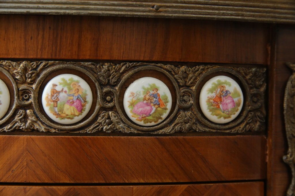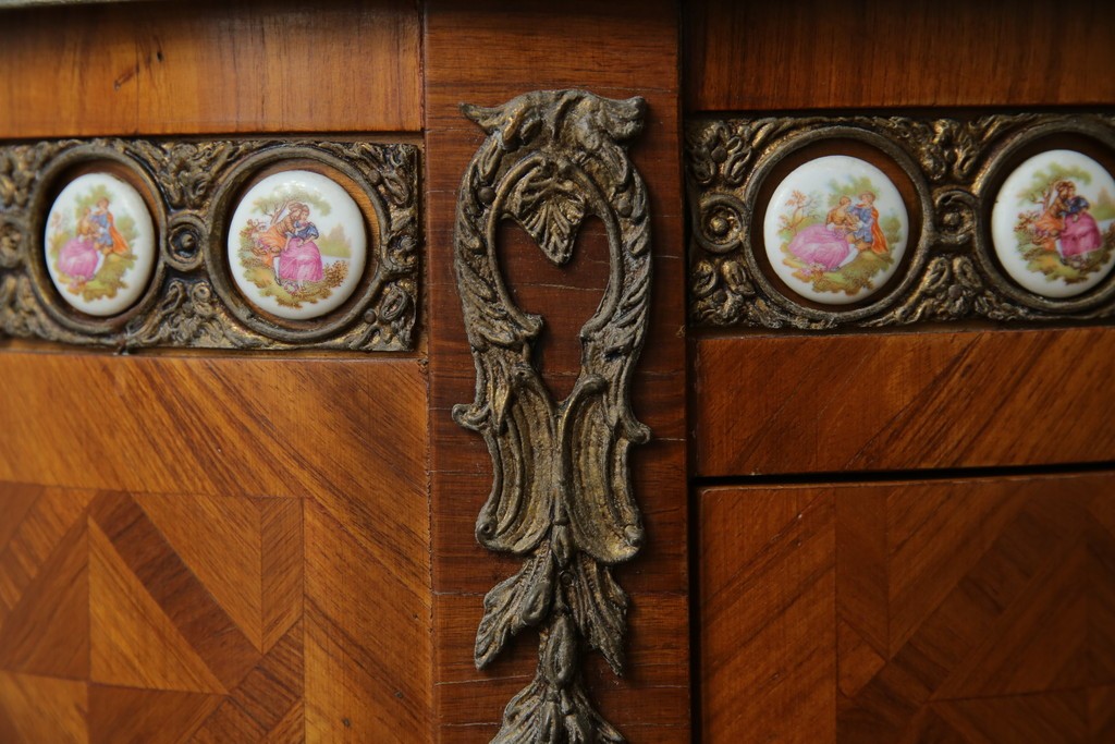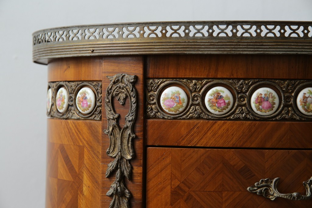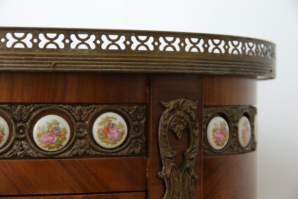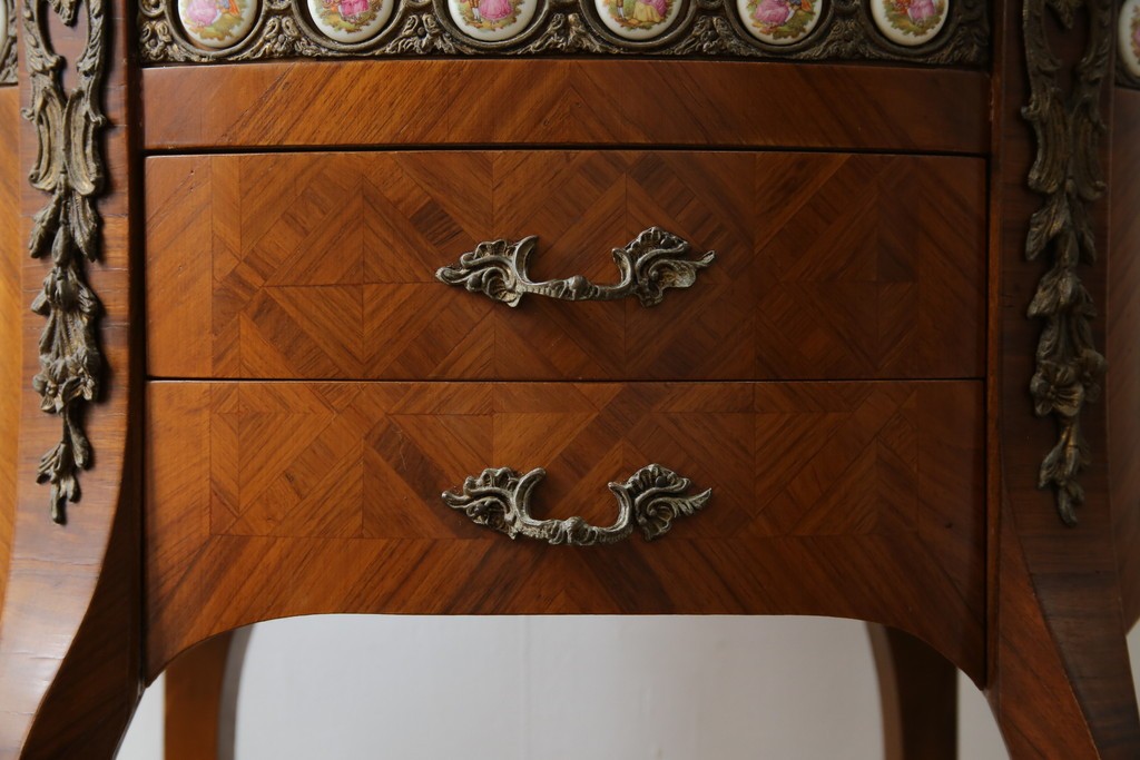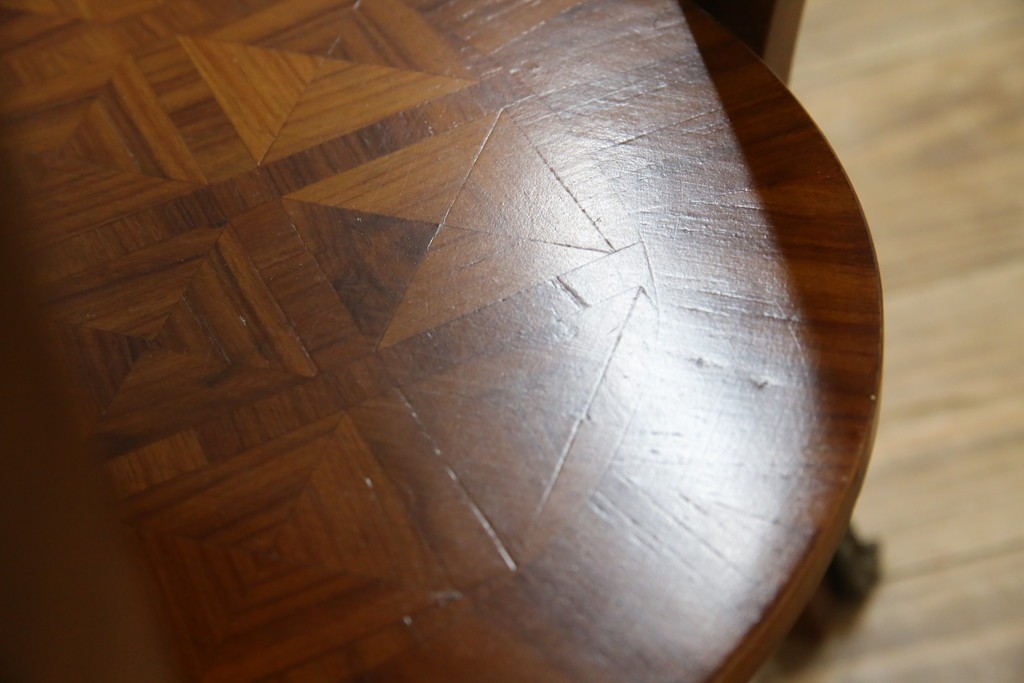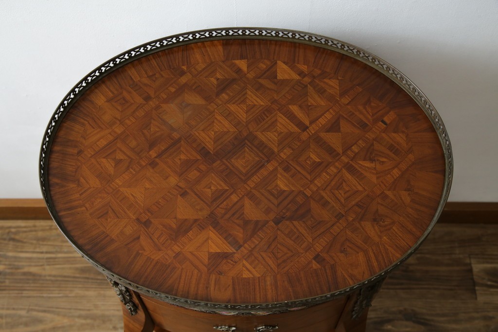 テーブル > 中古 スペイン家具 マリネール(Mariner) パーケットリー(寄木細工) すっと伸びた猫脚が上品なサイドテーブル (R-075443)