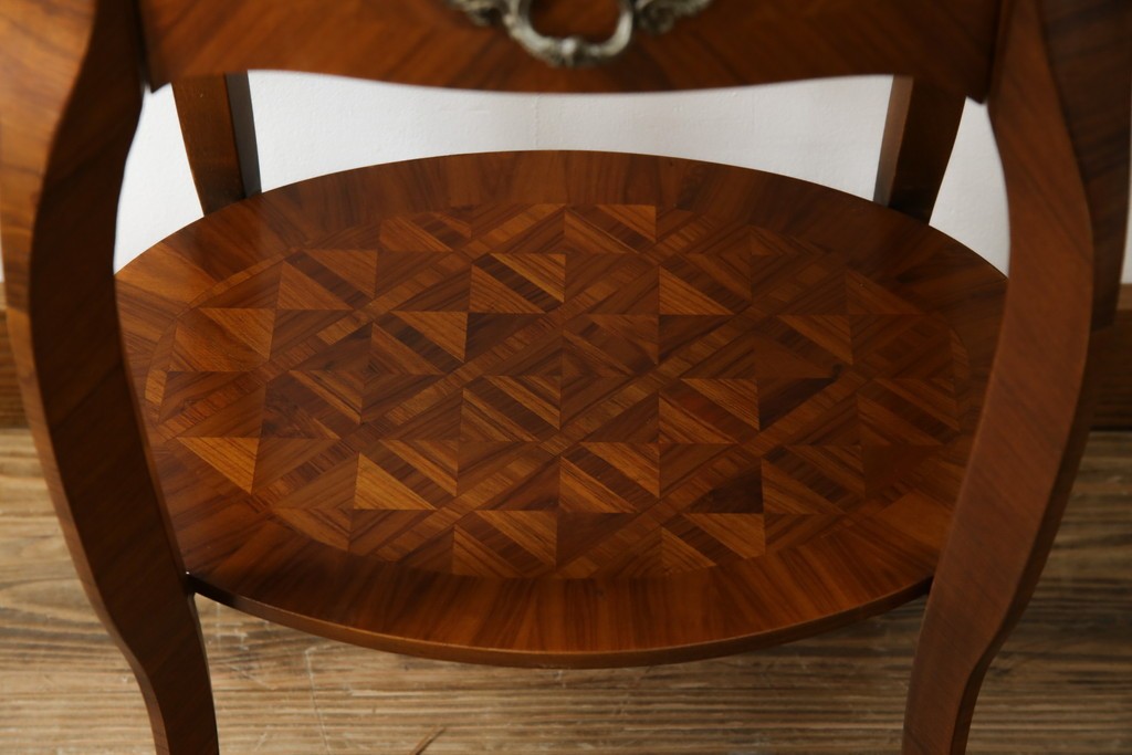 中古 スペイン家具 マリネール(Mariner) パーケットリー(寄木細工) すっと伸びた猫脚が上品なサイドテーブル (R-075443)