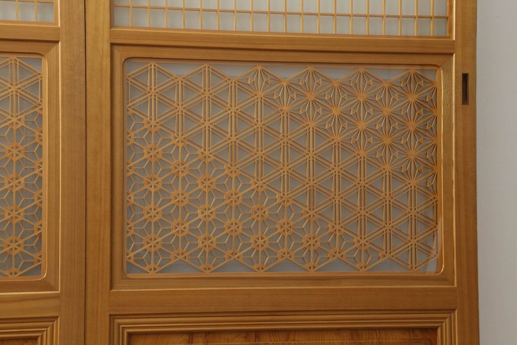 組子入りガラス帯戸をリペア&カスタム!設置場所に合わせて高さをリサイズ。(帯戸、引き戸、ガラス戸、建具)