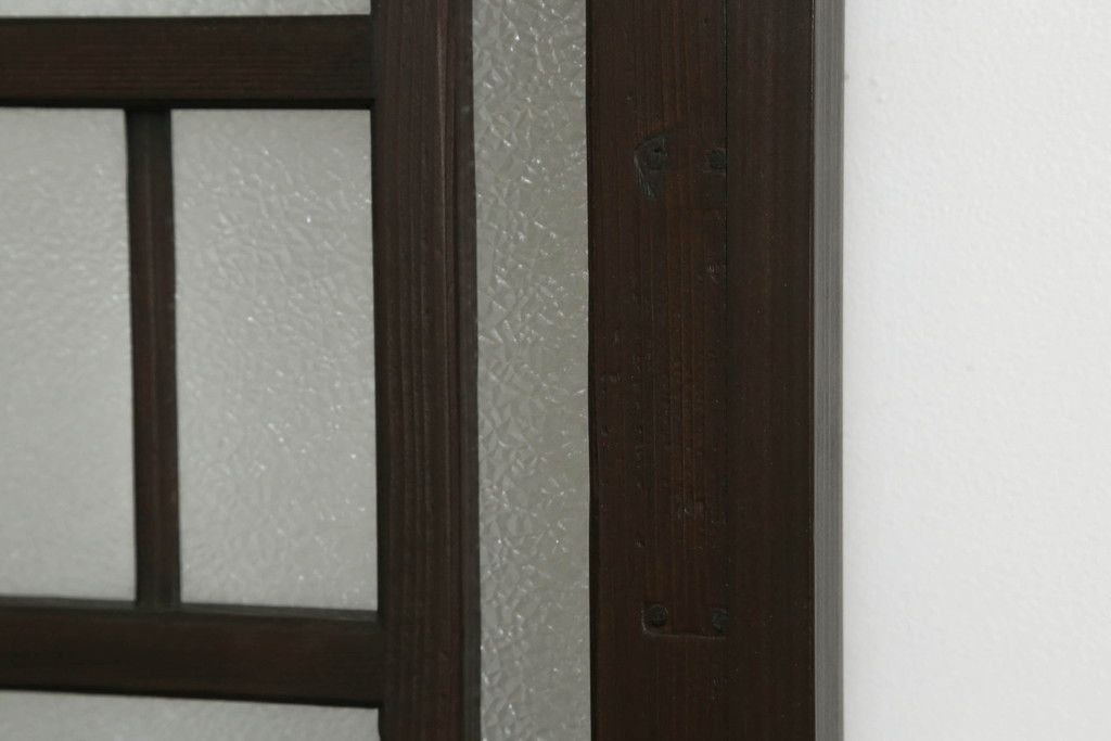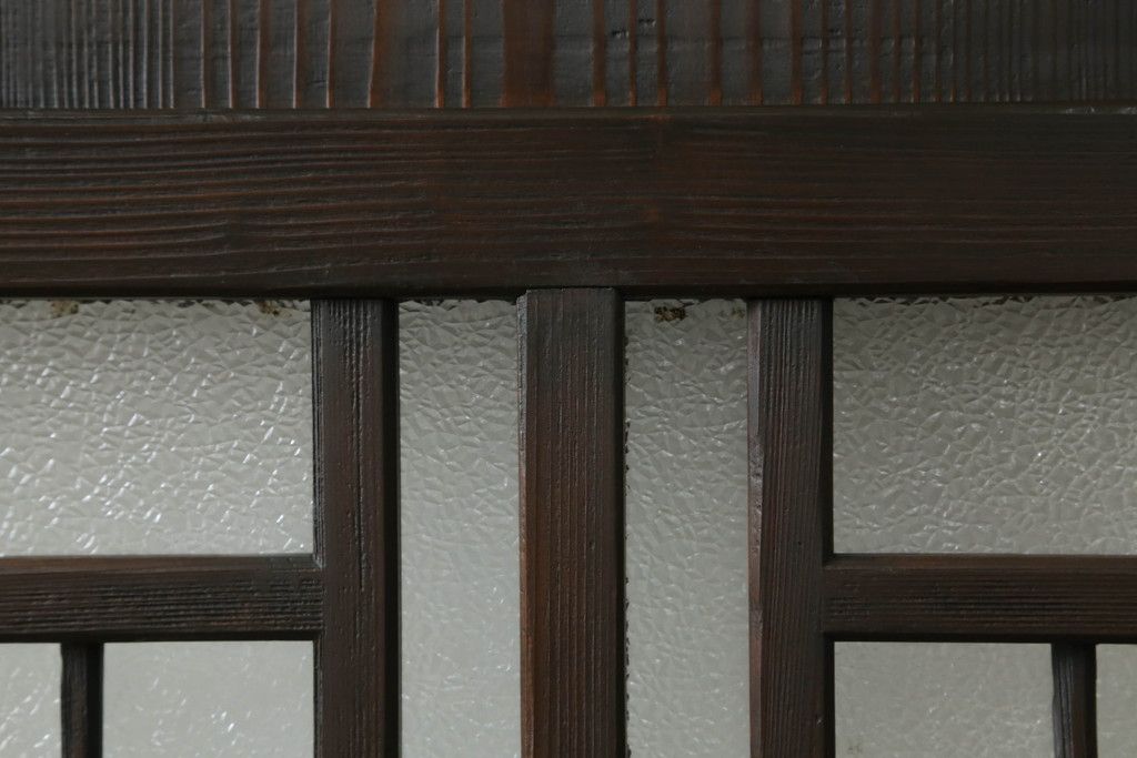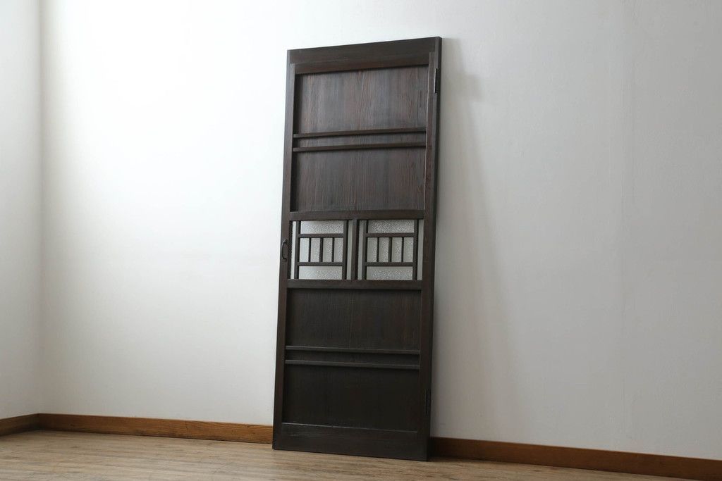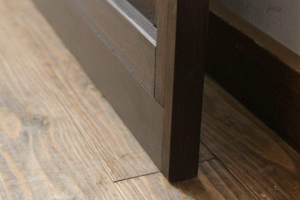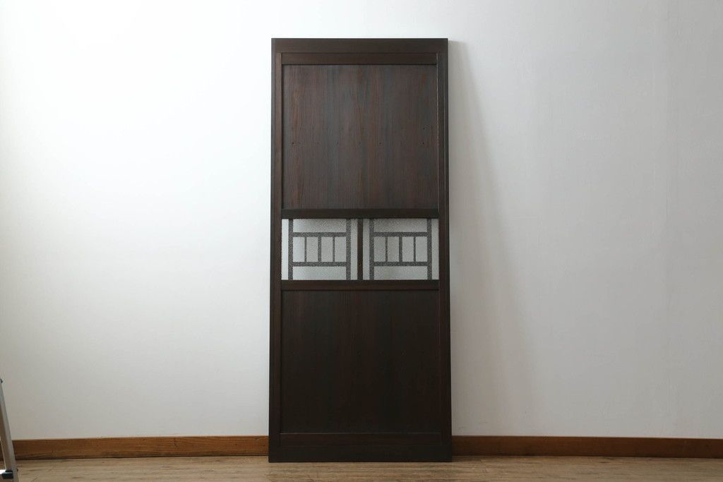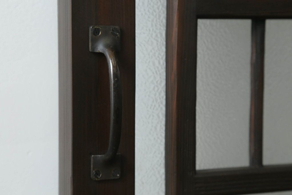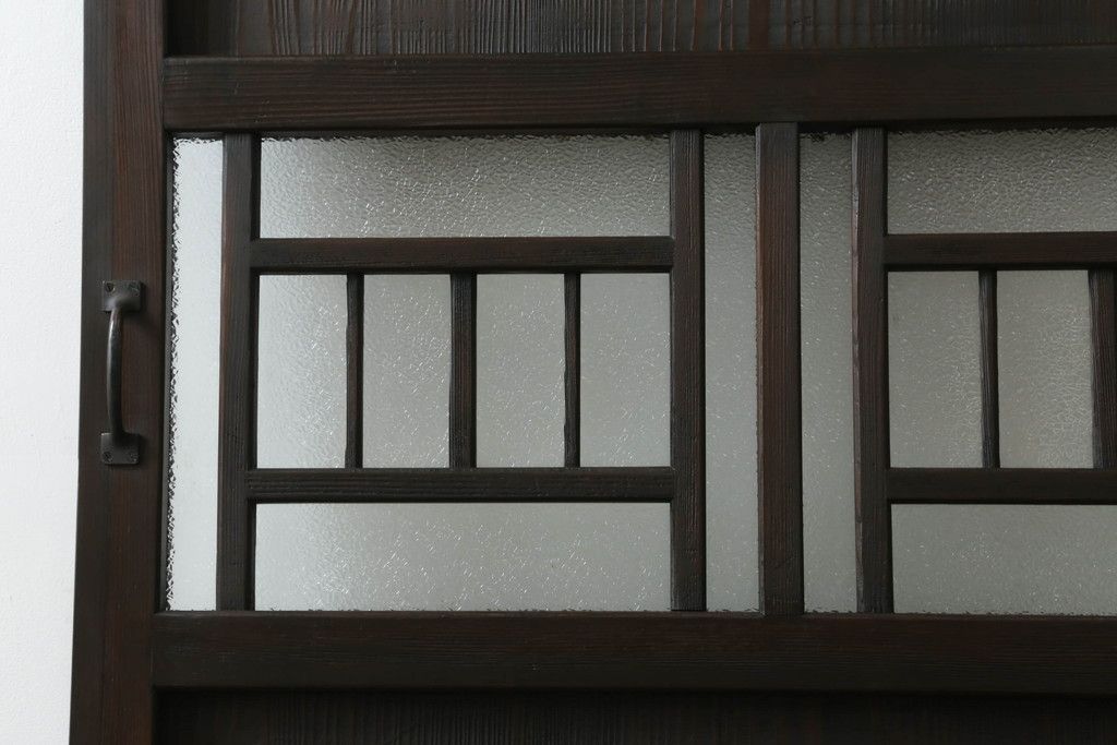 ドア・建具> ガラス戸 > 大正期の扉をリペア&カスタム!設置場所に合わせてリサイズ。マグネット式ラッチ金具を取り付け。濃い茶色で着色し仕上げ。(ドア、ガラスドア、片開きドア、木製ドア)