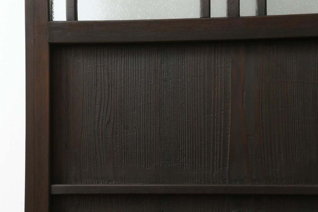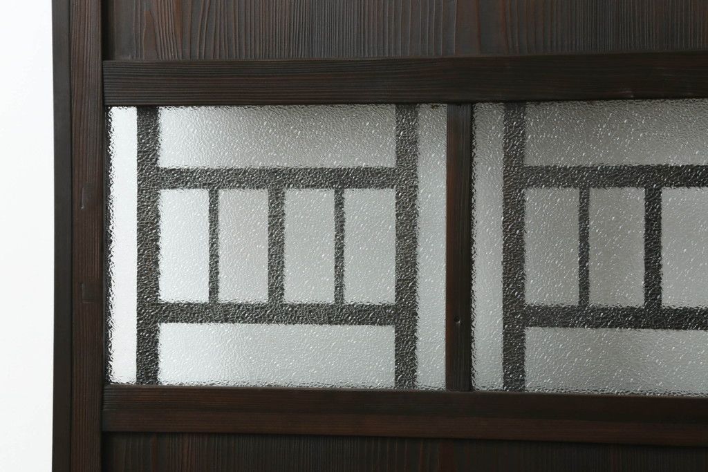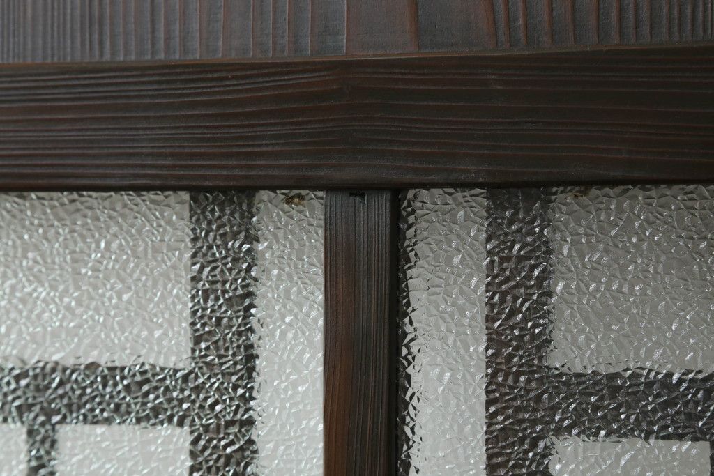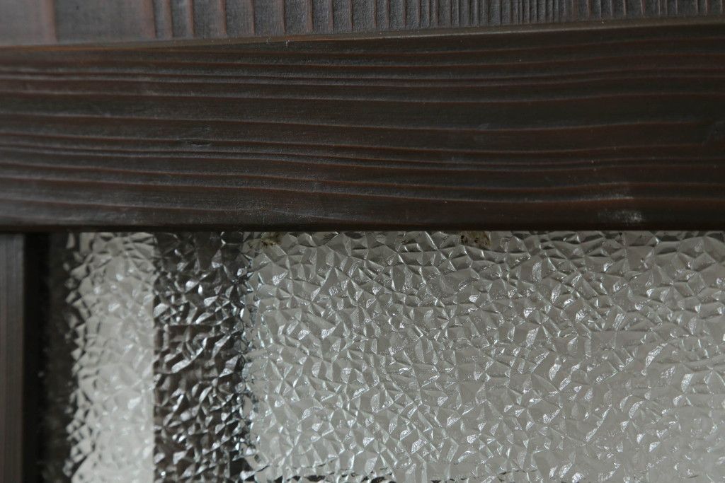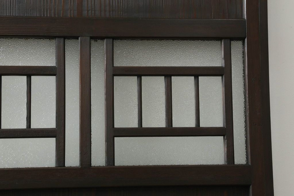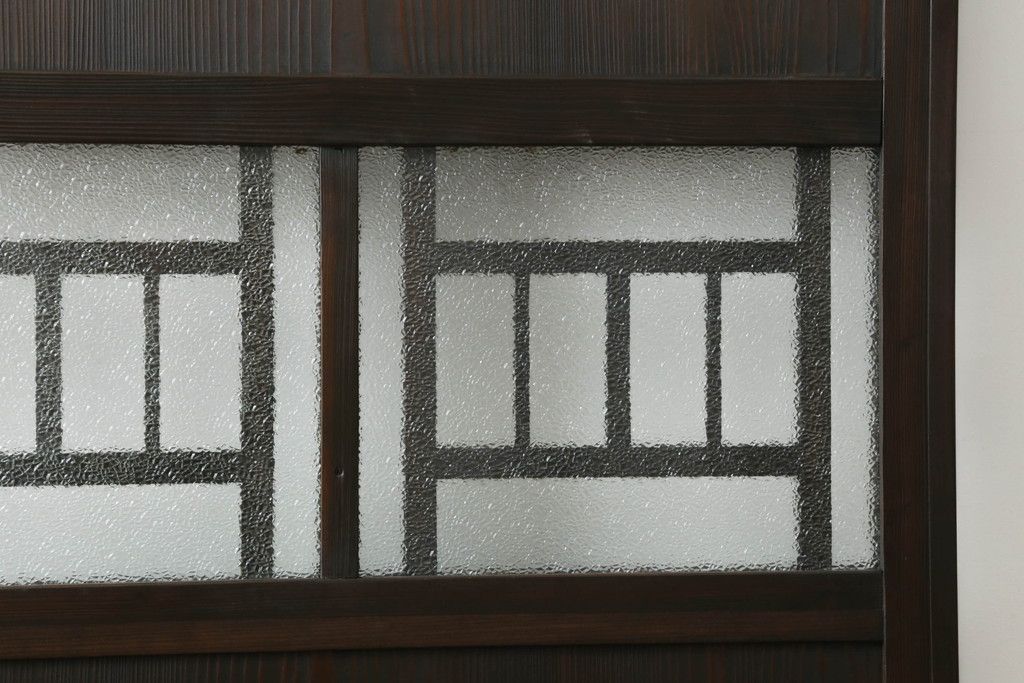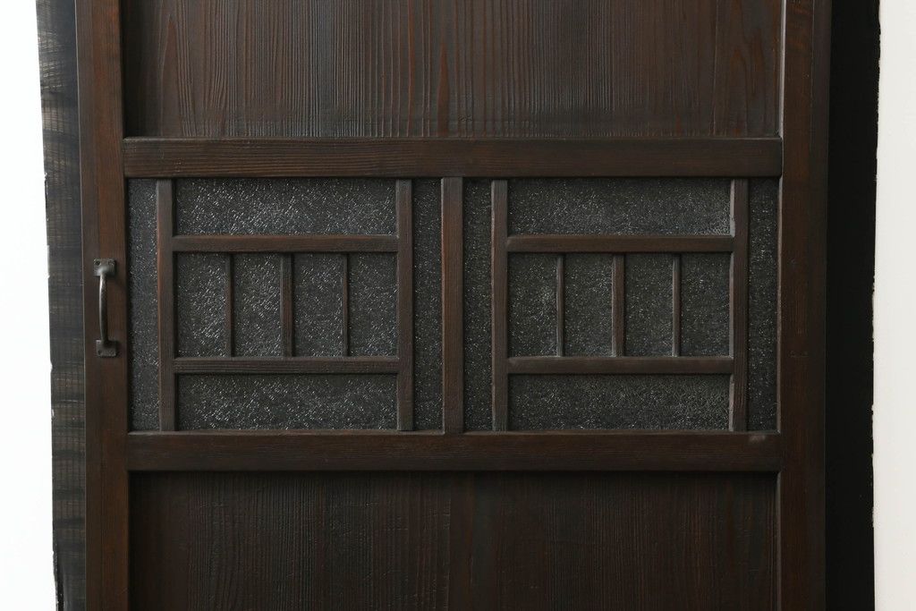ドア・建具> ガラス戸 > 大正期の扉をリペア&カスタム!設置場所に合わせてリサイズ。マグネット式ラッチ金具を取り付け。濃い茶色で着色し仕上げ。(ドア、ガラスドア、片開きドア、木製ドア)