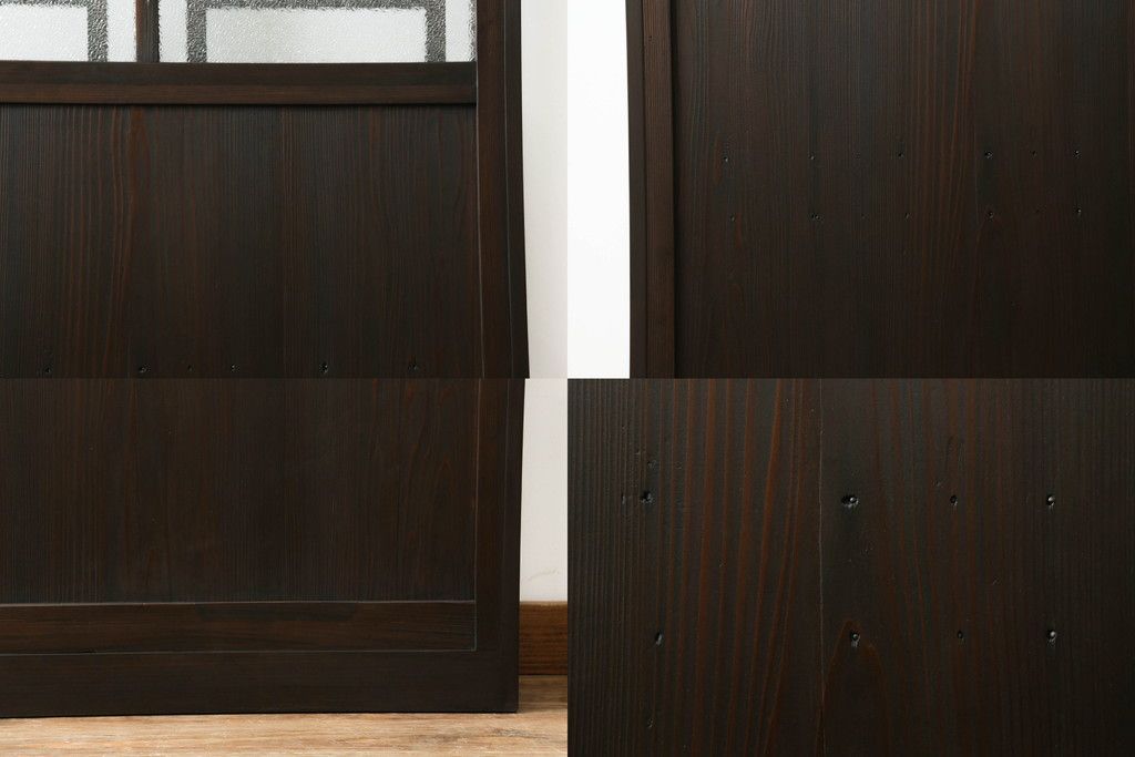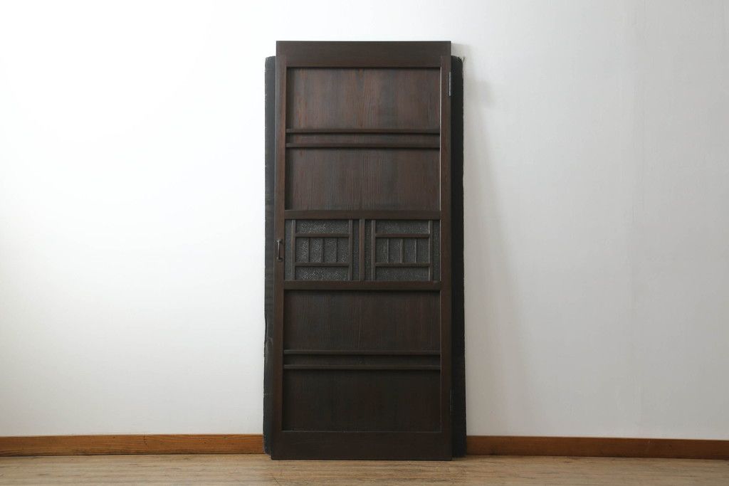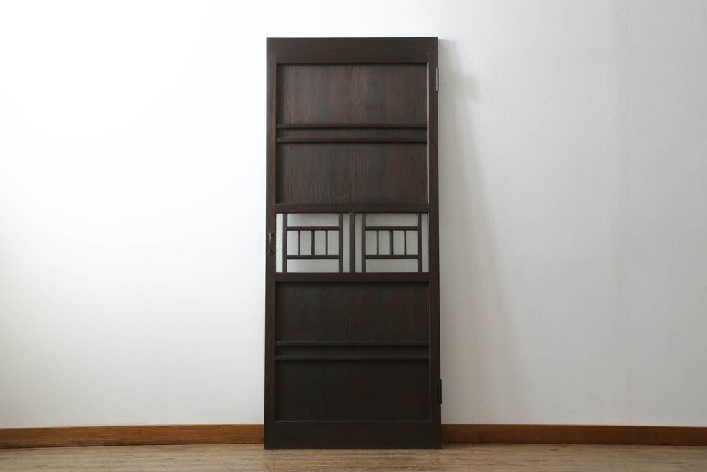 ドア・建具> ドア・扉 > 大正期の扉をリペア&カスタム!設置場所に合わせてリサイズ。マグネット式ラッチ金具を取り付け。濃い茶色で着色し仕上げ。(ドア、ガラスドア、片開きドア、木製ドア)