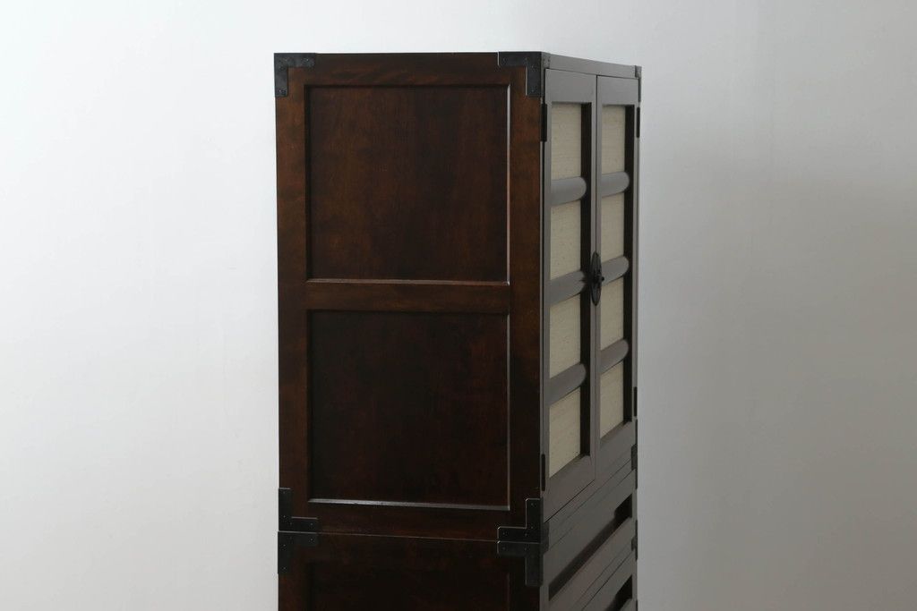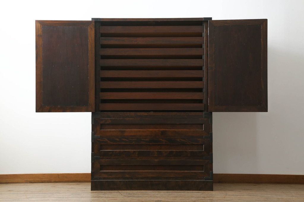 和箪笥 > 和箪笥をリペア&カスタム!高品質リペアを施し、観音扉部分の布をふすま紙に張り替え。現状の色味をベースに着色仕上げ。(衣装箪笥、着物箪笥、収納たんす、時代箪笥、チェスト、引き出し)