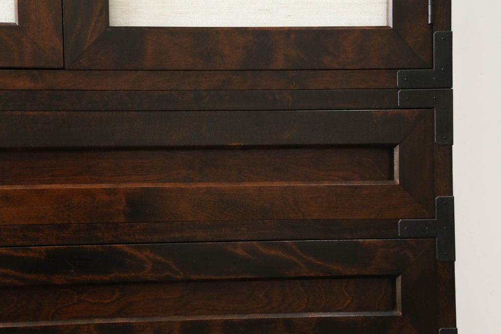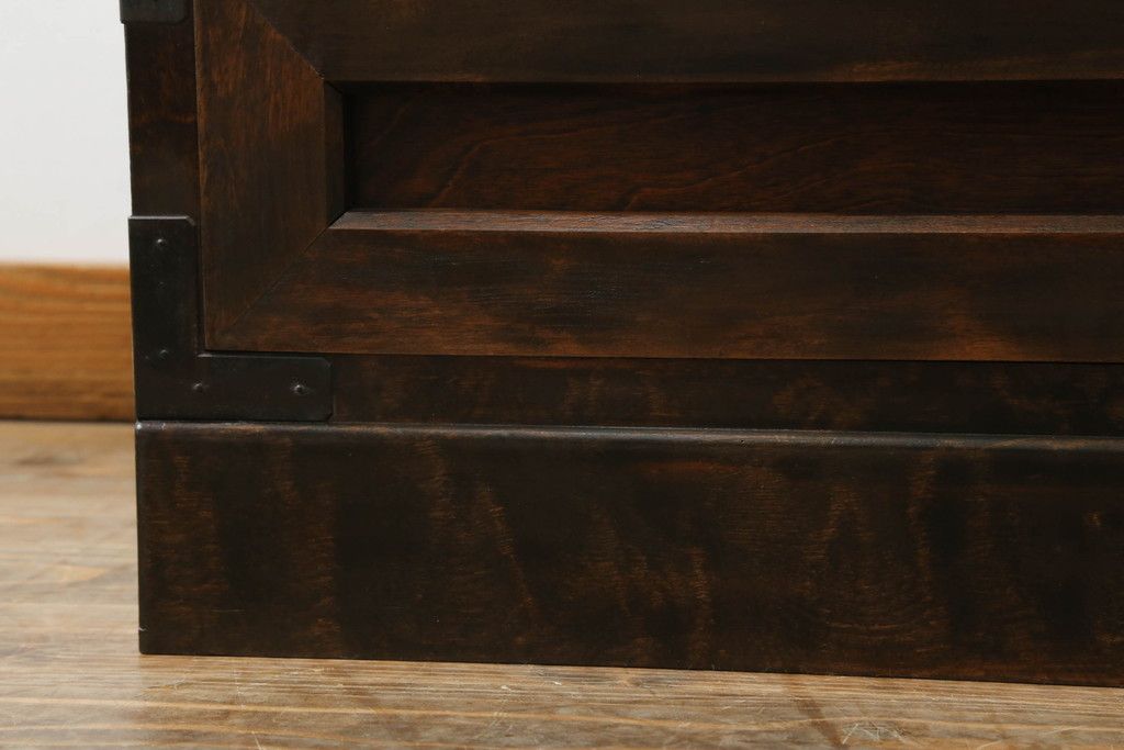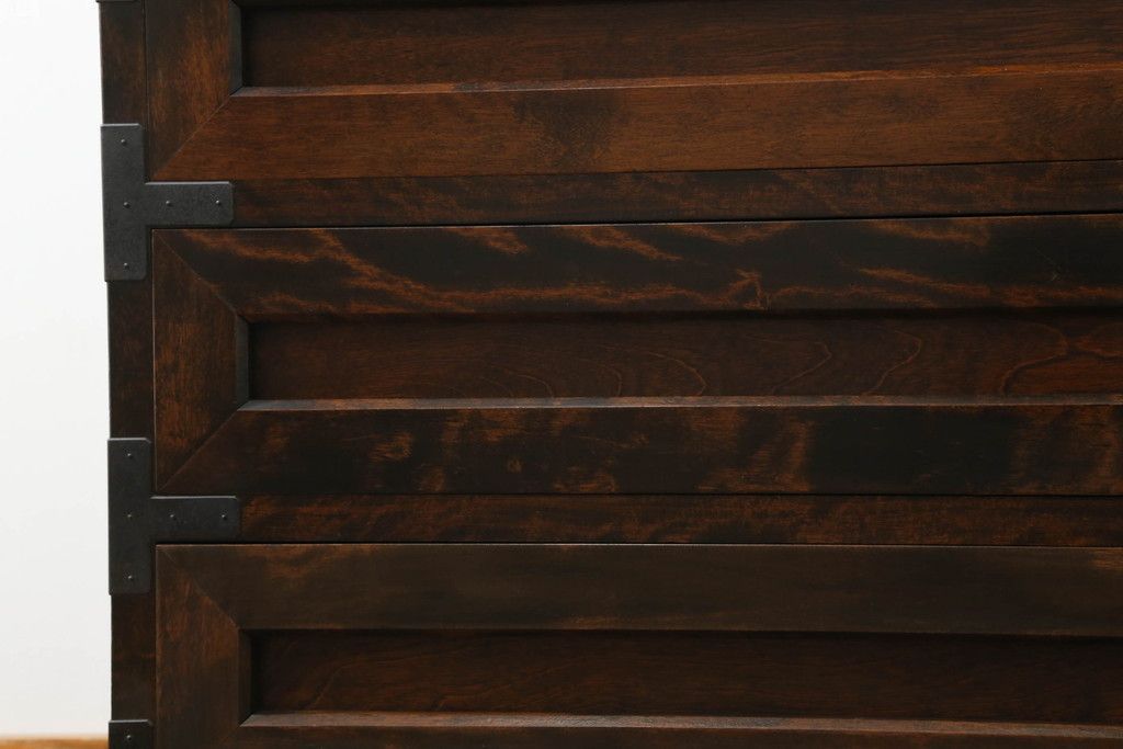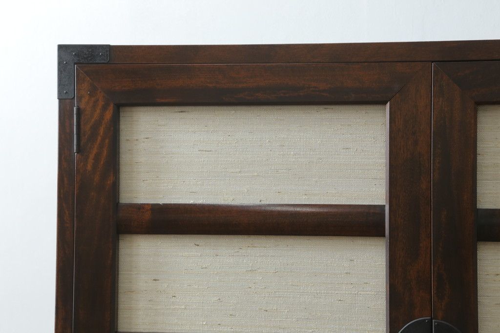 セミオーダー家具実績 > 和箪笥をリペア&カスタム!高品質リペアを施し、観音扉部分の布をふすま紙に張り替え。現状の色味をベースに着色仕上げ。(衣装箪笥、着物箪笥、収納たんす、時代箪笥、チェスト、引き出し)