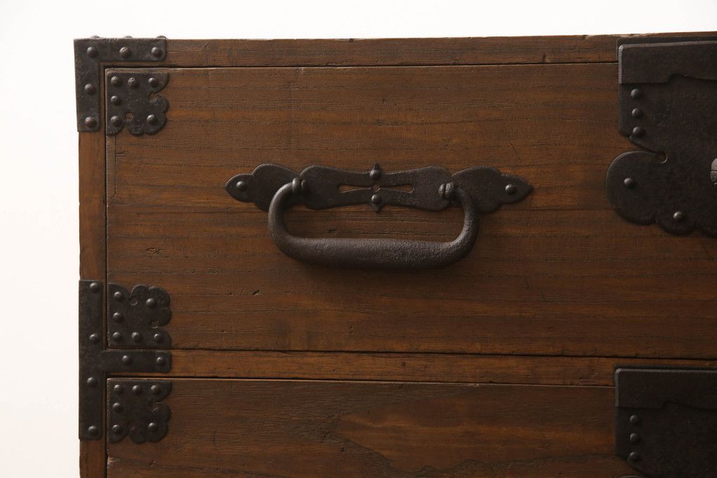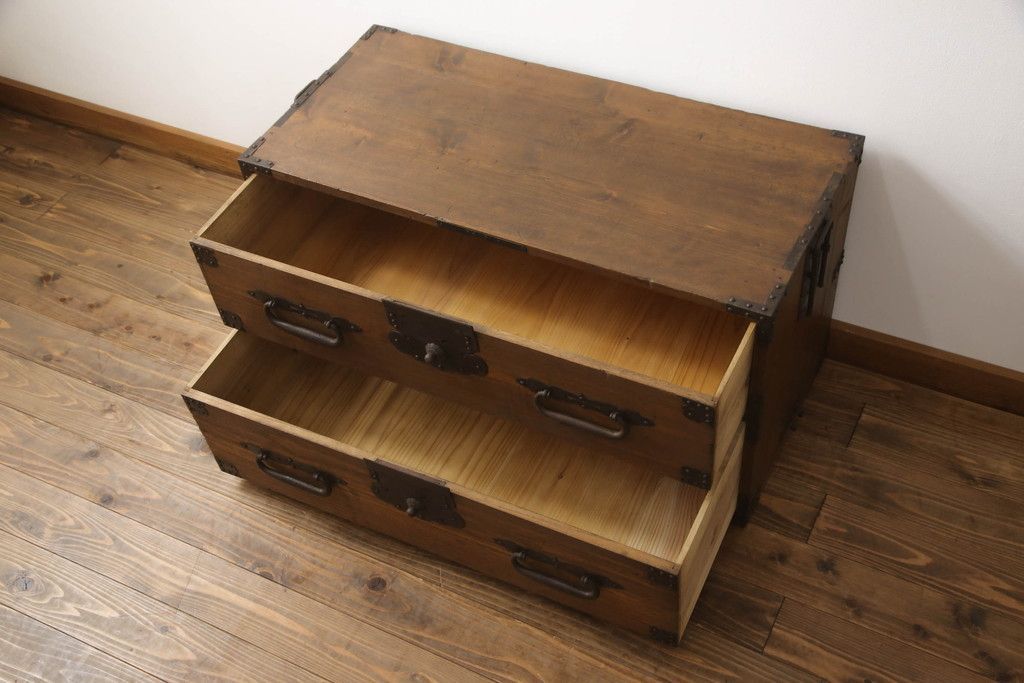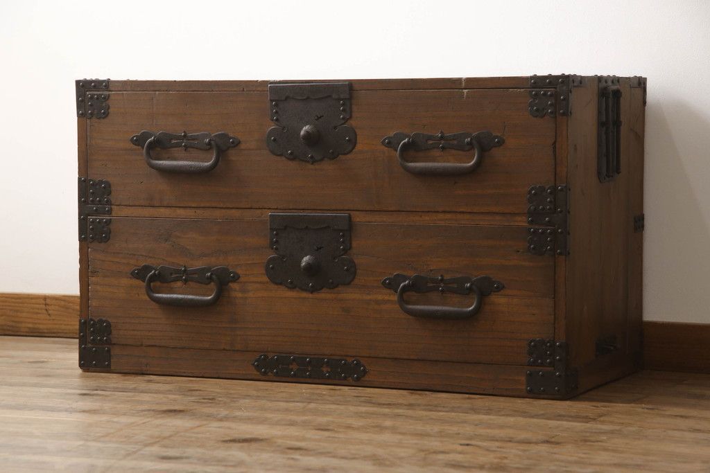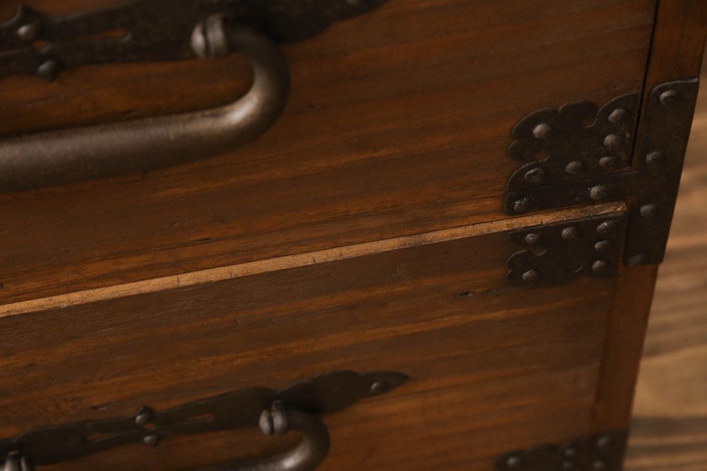 明治期の桐箪笥の見た目を変えずに綺麗にリペア!高品質リペアを施し、ステイン仕上げ。(ローボード、ローチェスト、衣装箪笥)