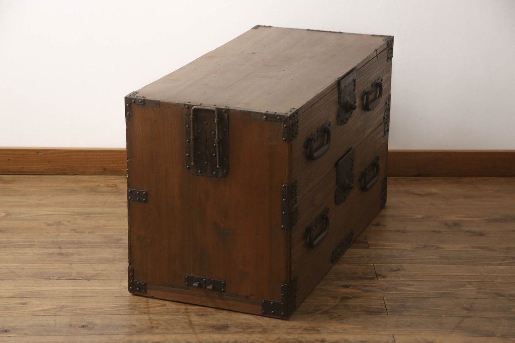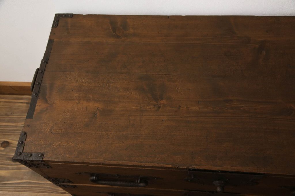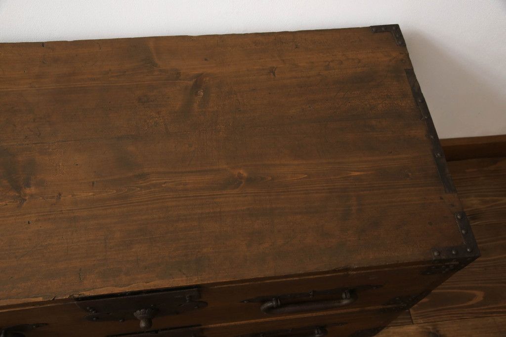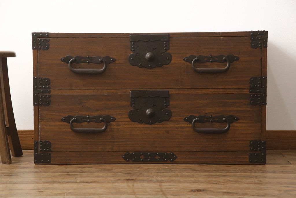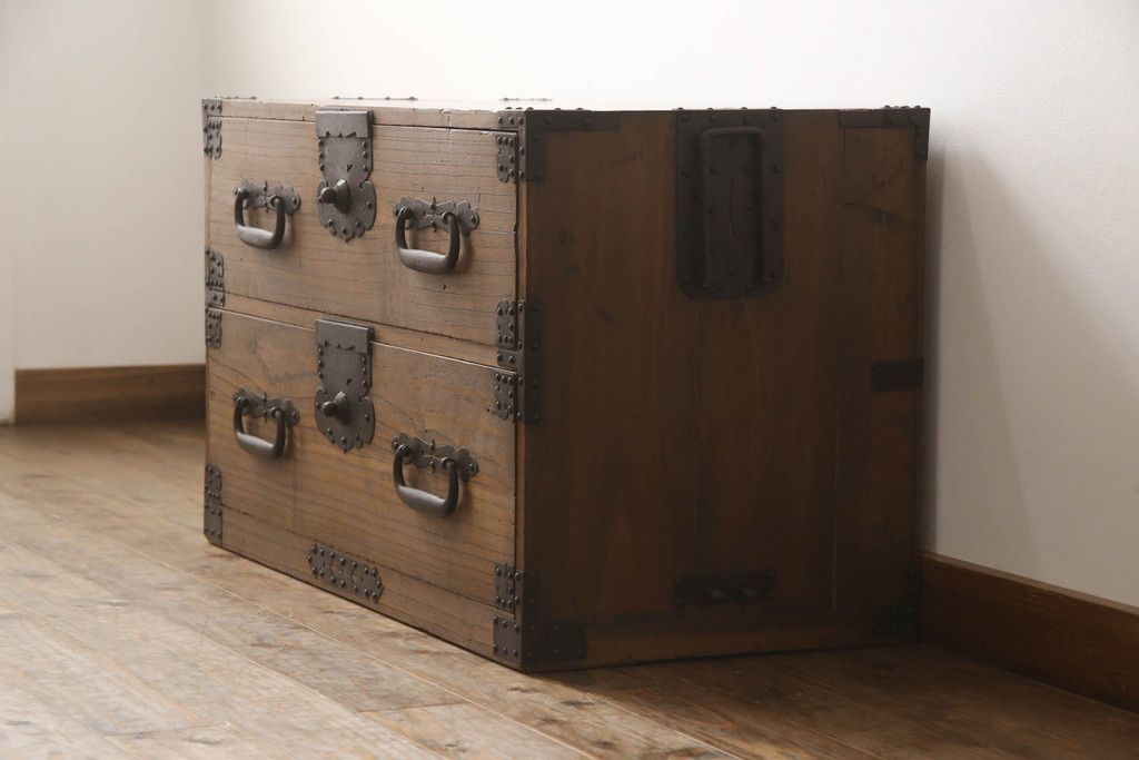 明治期の桐箪笥の見た目を変えずに綺麗にリペア!高品質リペアを施し、ステイン仕上げ。(ローボード、ローチェスト、衣装箪笥)