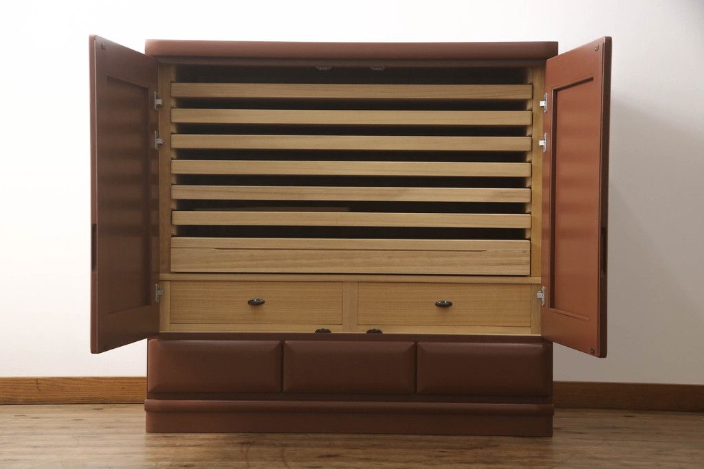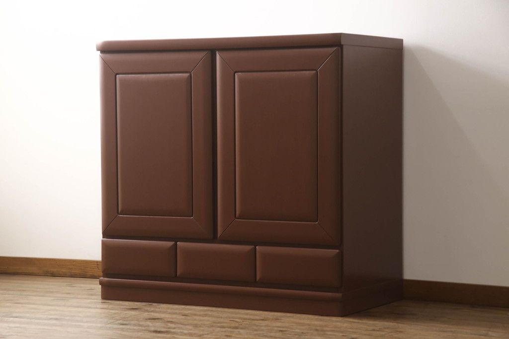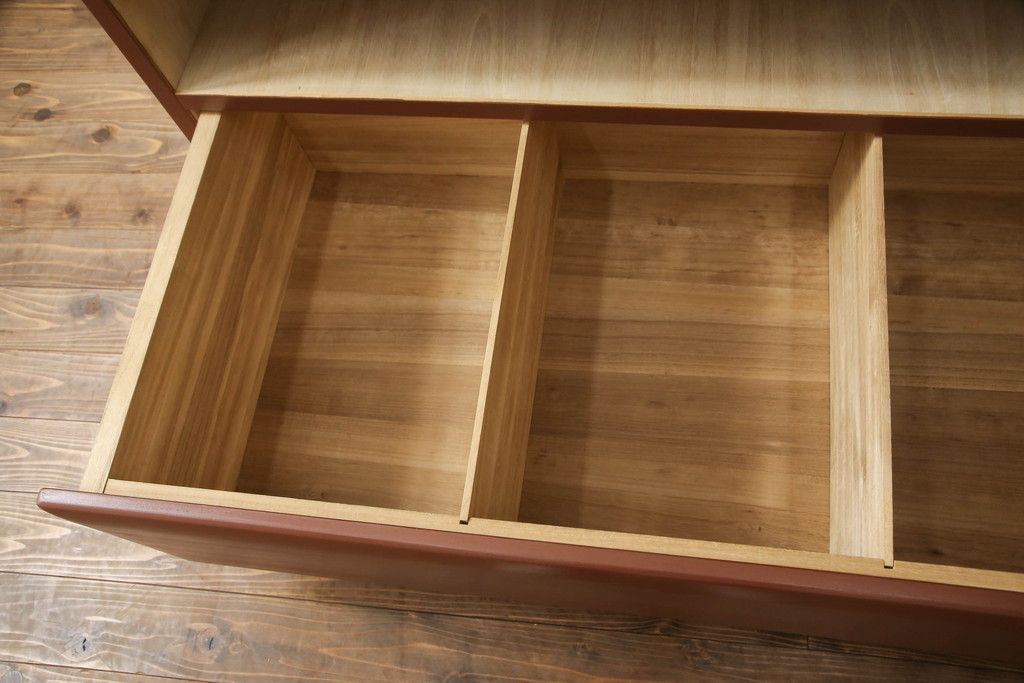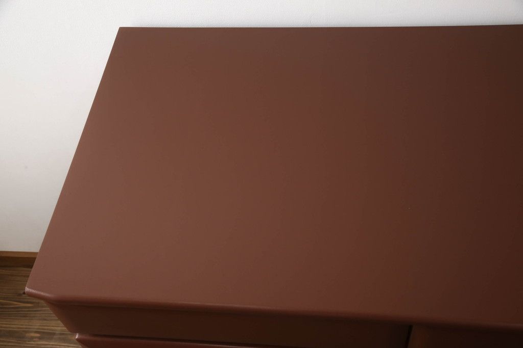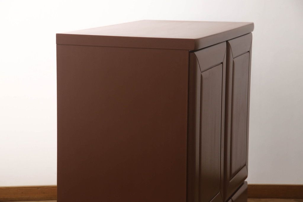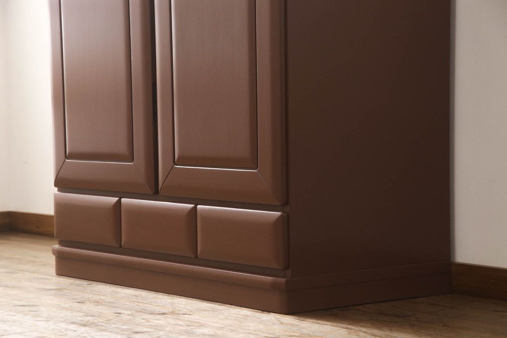 衣装箪笥を上下に分けて2つの箪笥にリメイク!上段は台輪を取り付け。下段はヒノキ無垢材の天板を取り付け。どちらもシナモンブラウンにペイント仕上げ。