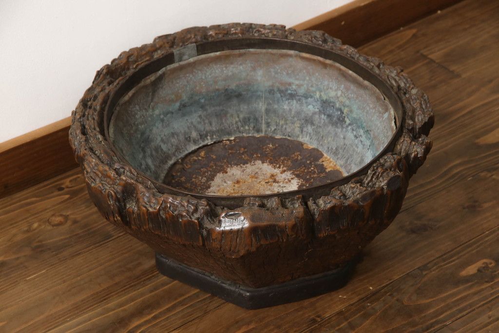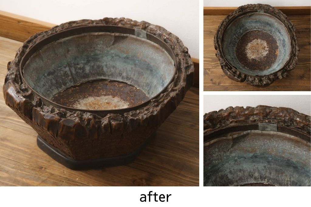 ラフジュ工房> お手持ちの家具・建具リメイク実績 > 火鉢を綺麗に再生!高品質リペアを施し、内部側面を補修。