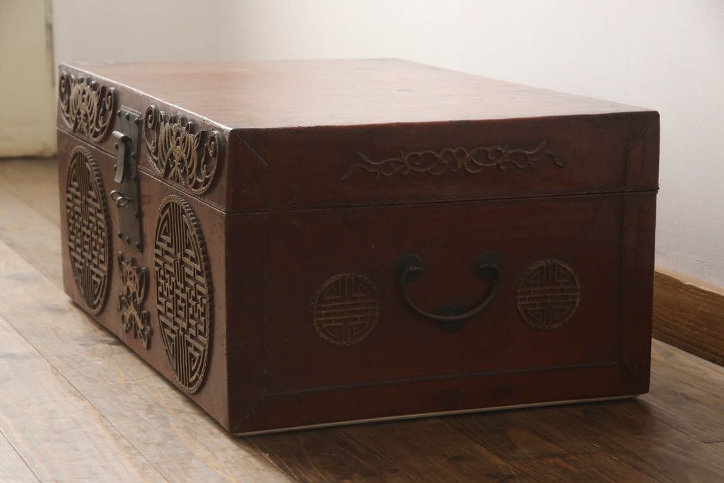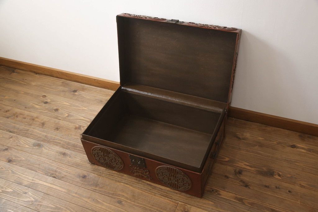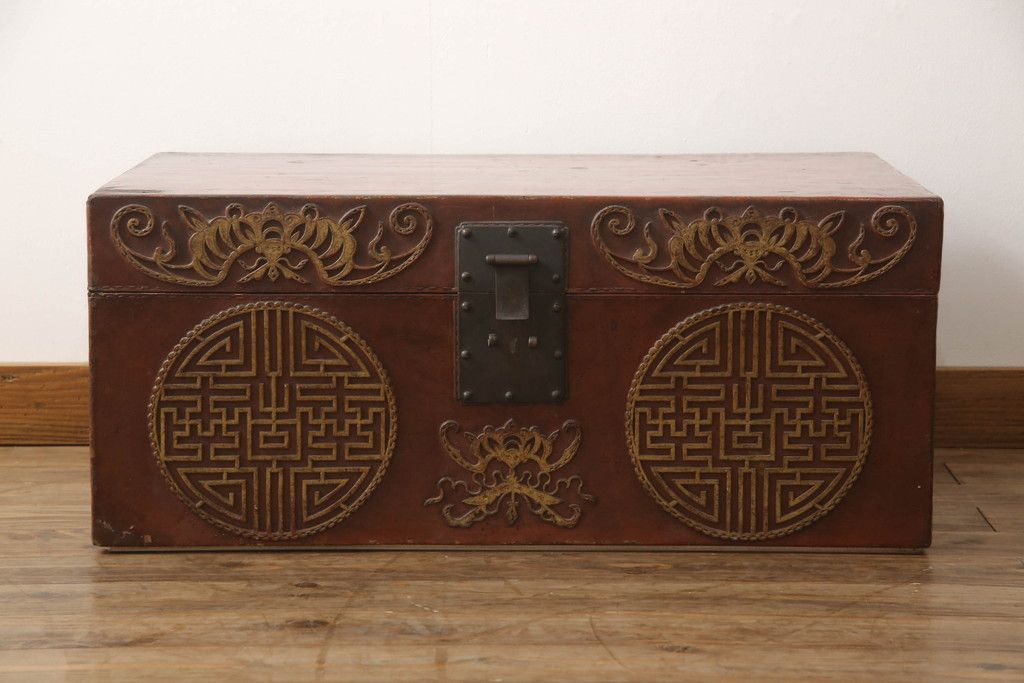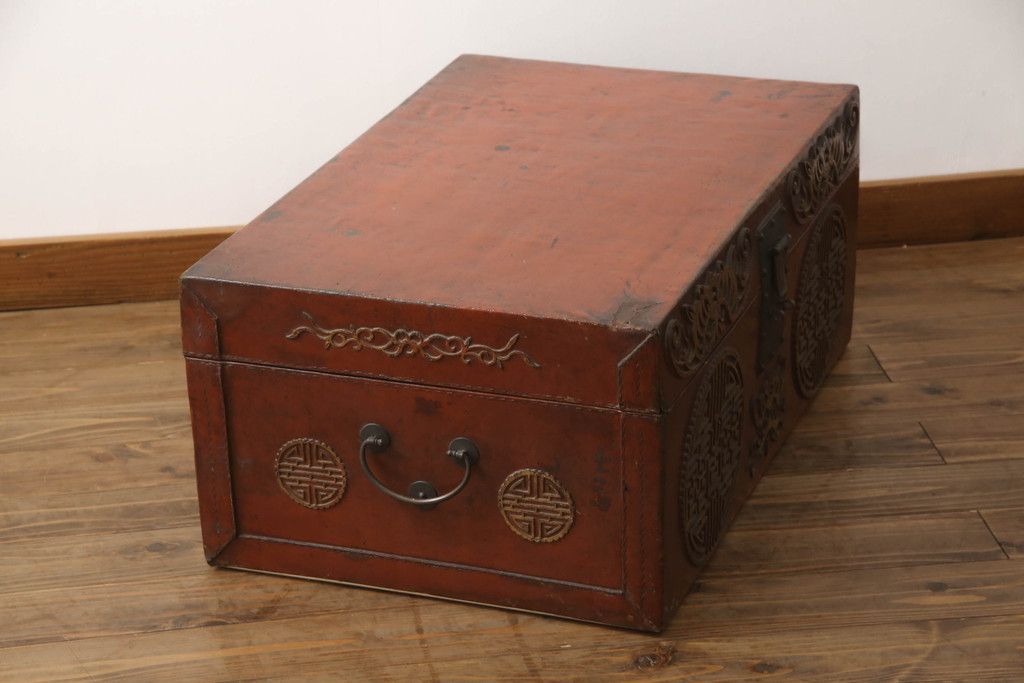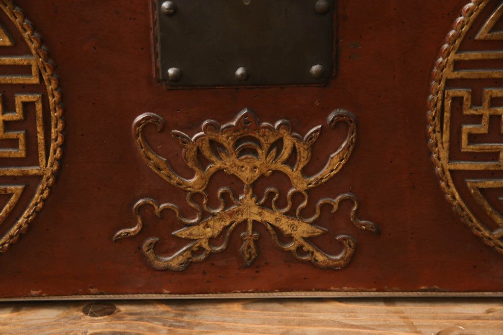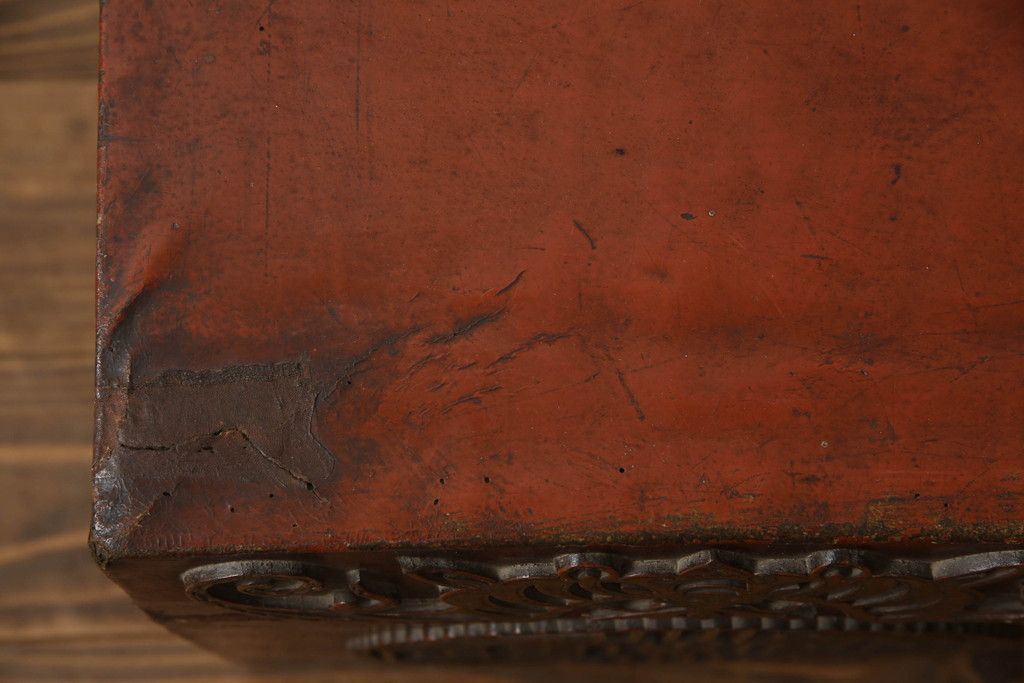 シナ鞄を綺麗に再生!高品質リペアを施し、上蓋内部を塗装。収納部分に箱を、底板に突板を入れて内部を補強。殺虫のために燻蒸作業。