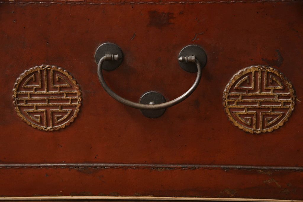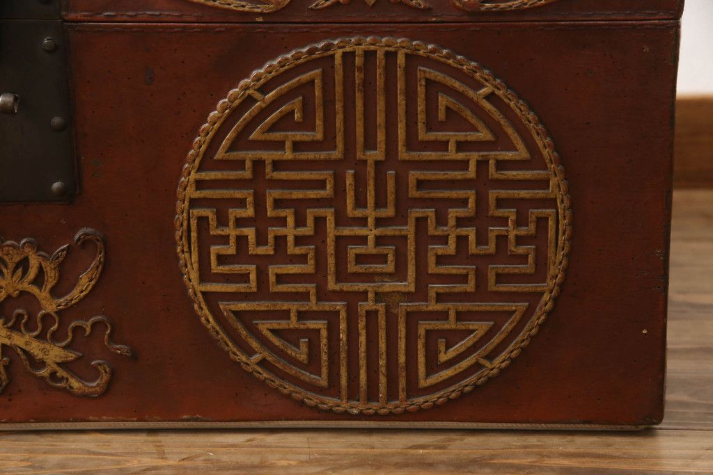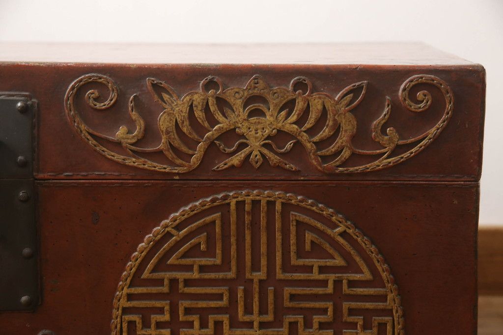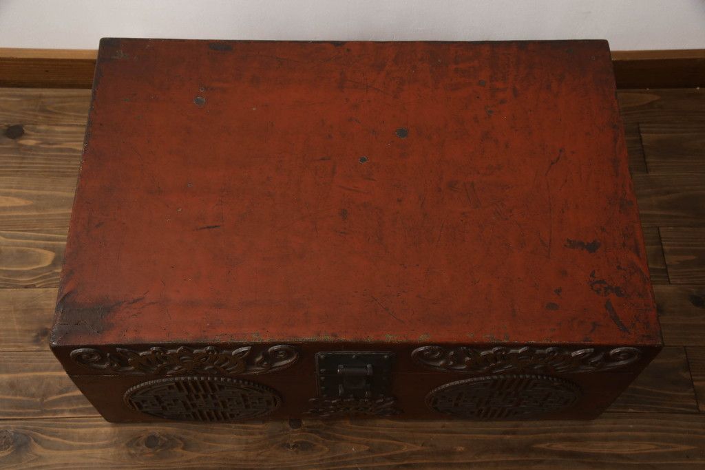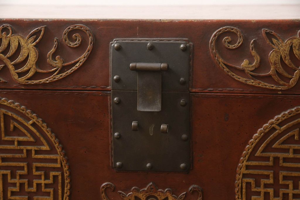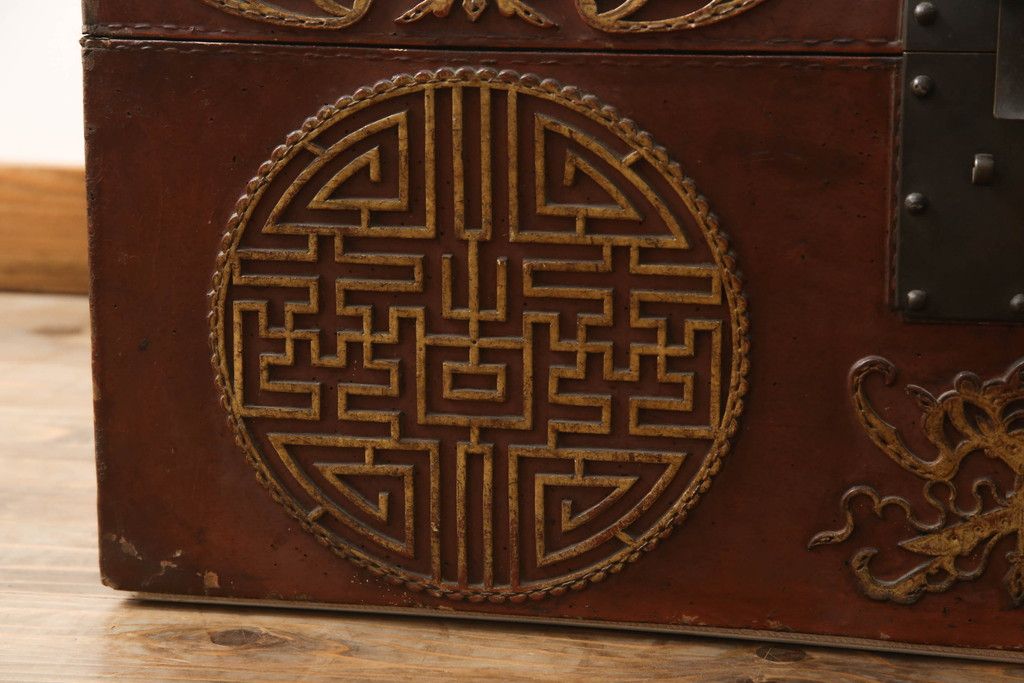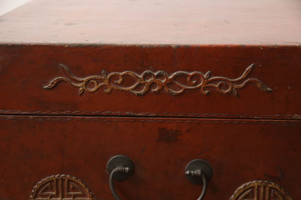シナ鞄を綺麗に再生!高品質リペアを施し、上蓋内部を塗装。収納部分に箱を、底板に突板を入れて内部を補強。殺虫のために燻蒸作業。
