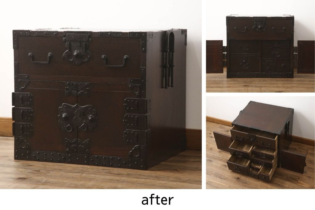 船箪笥を綺麗に再生!高品質リペアを施し、金具を補修、鍵を制作。殺虫のために燻蒸作業。