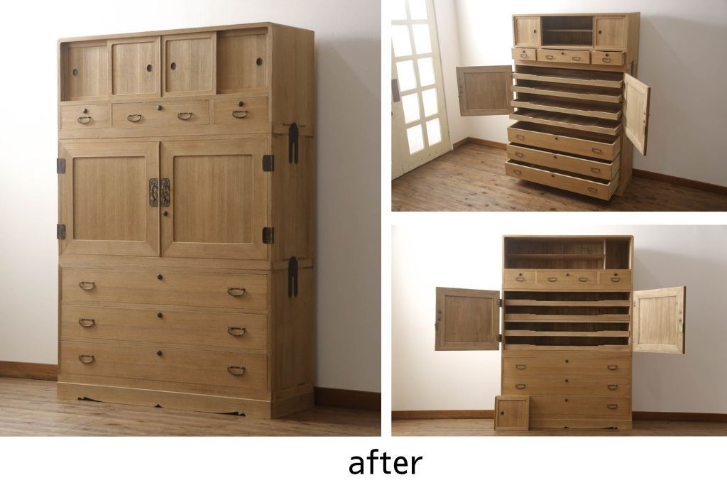 3段重ね桐箪笥を綺麗に再生!既存の砥の粉を洗浄後に蜜蝋ワックスで木地仕上げ。