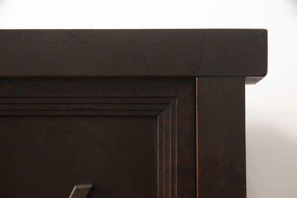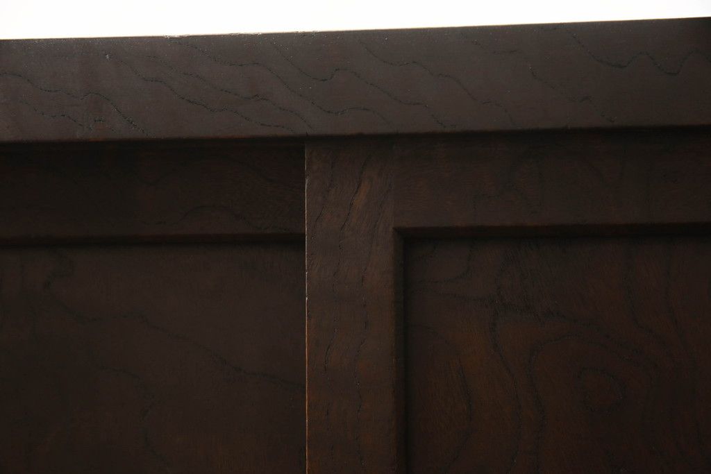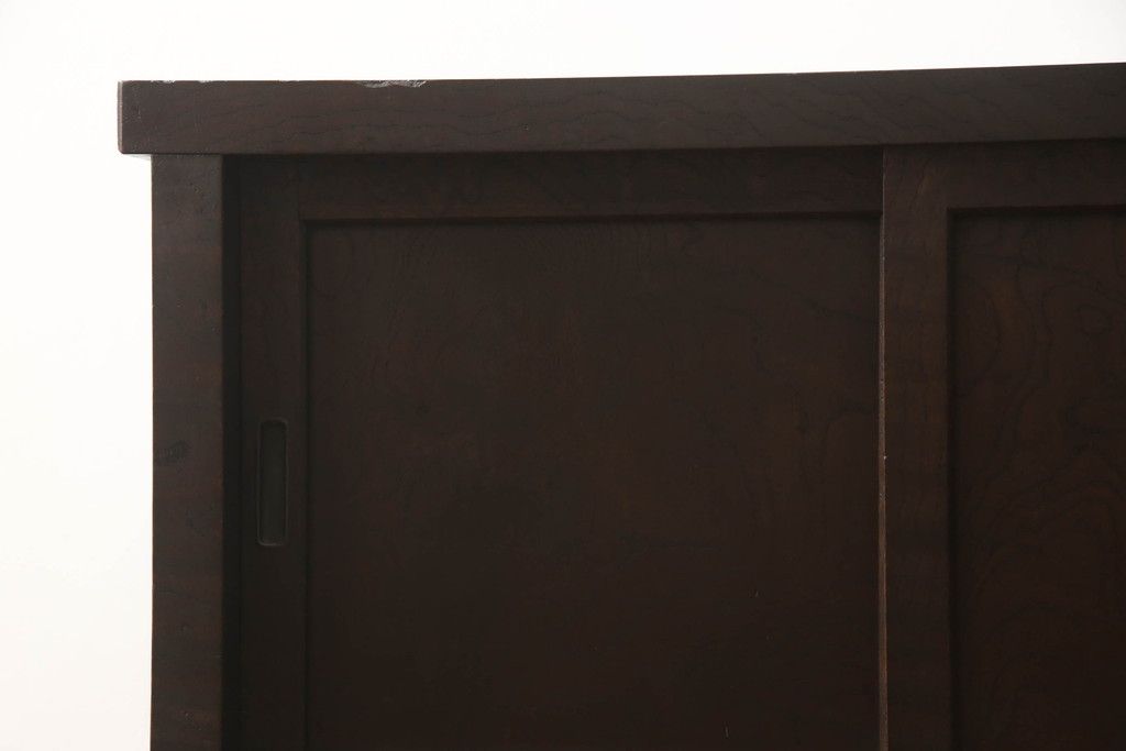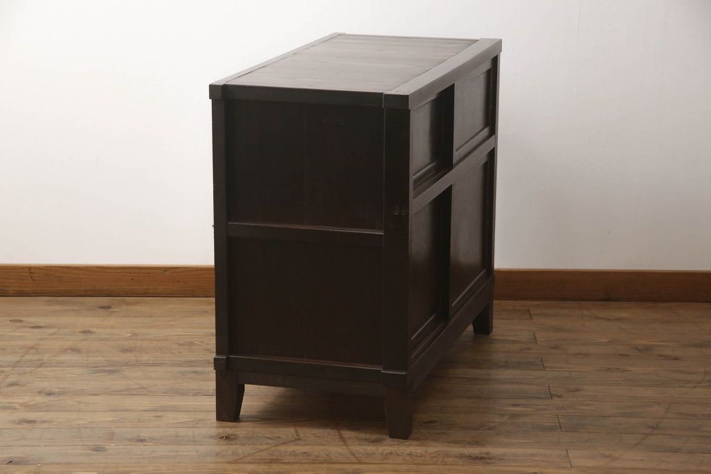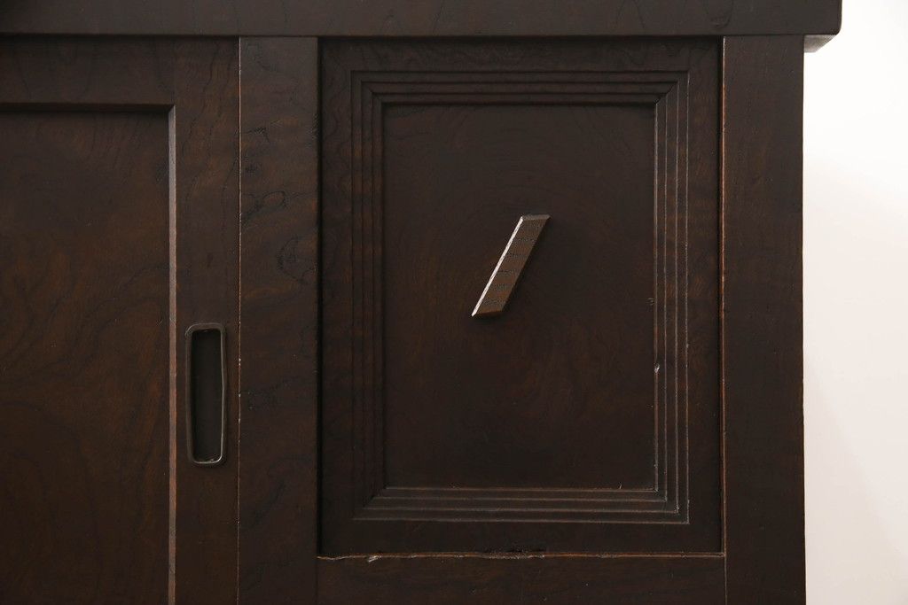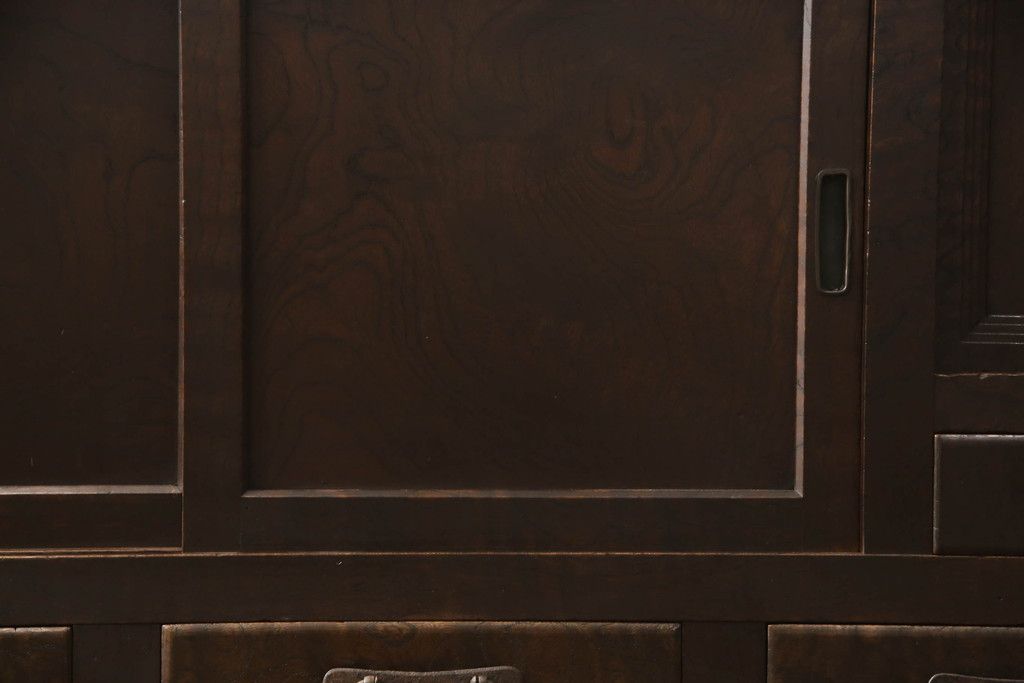 お手持ちの家具・建具リメイク実績 > 2段重ね箪笥を2つのサイドボードにリメイク!上段の開き戸に棚受けと棚板を制作し、電源タップとリモコン中継器を取り付け。下段は棚底を張り替え。いずれも引手・取っ手を交換し脚を付けて、新材は本体に合わせて着色。本体は1トーン落ち着いた色に仕上げ。