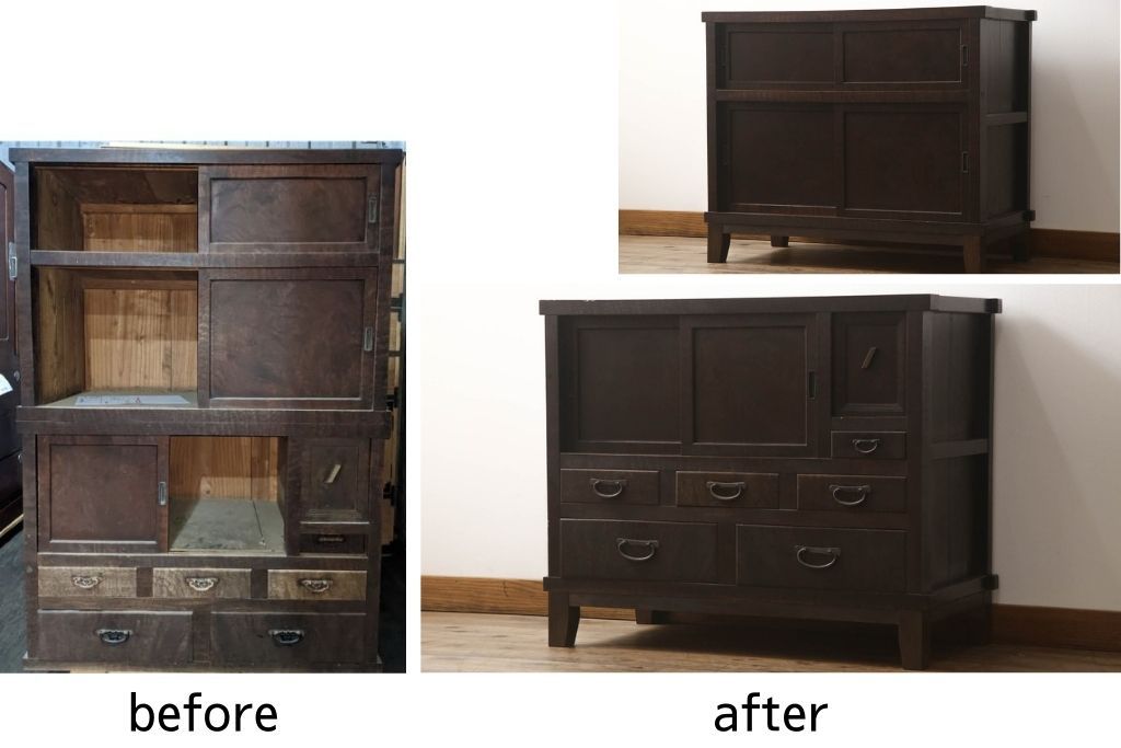お客様持ち込みの二段重ね箪笥をチェストへリメイク