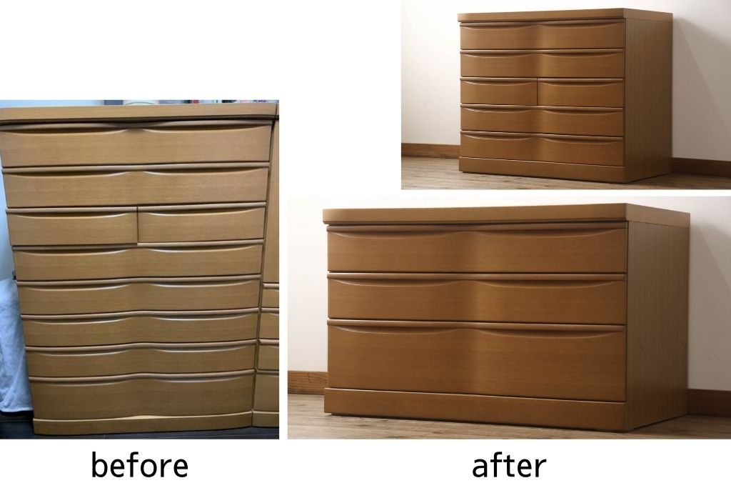 整理箪笥を上下に分けて2つの箪笥にリメイク!上段には台輪を取り付け。下段は同デザインの別の箪笥の天板を移設。