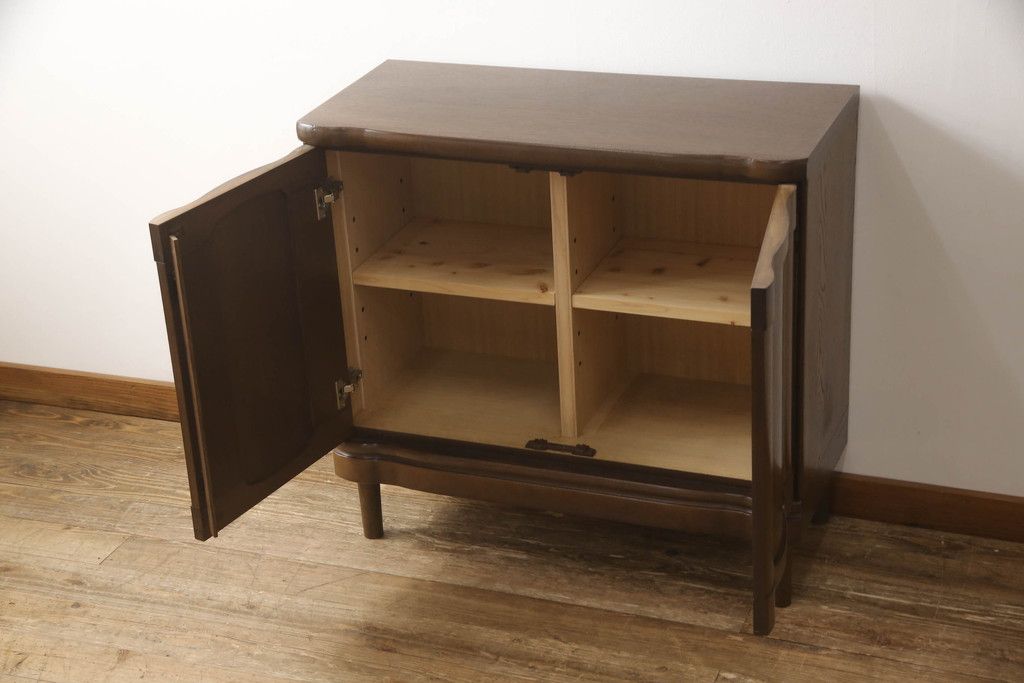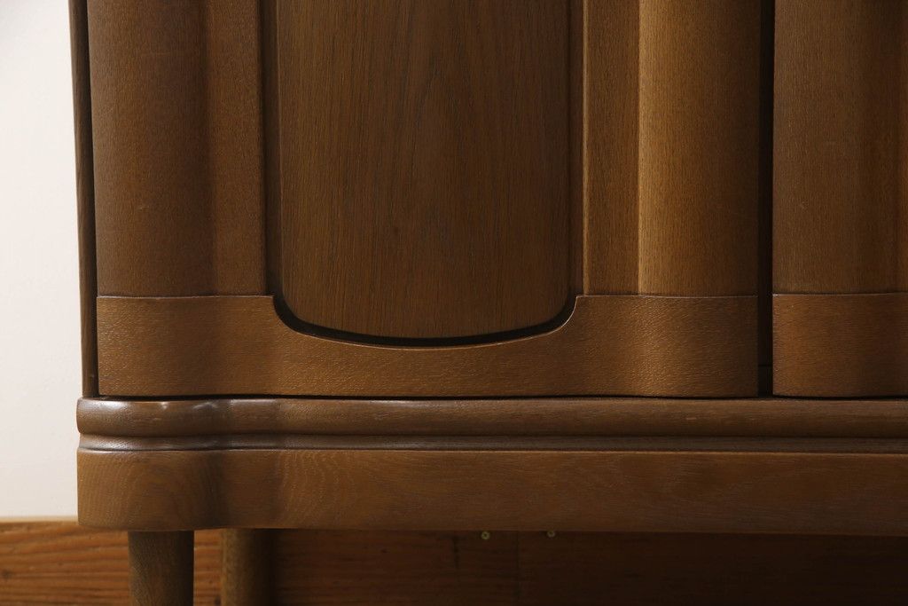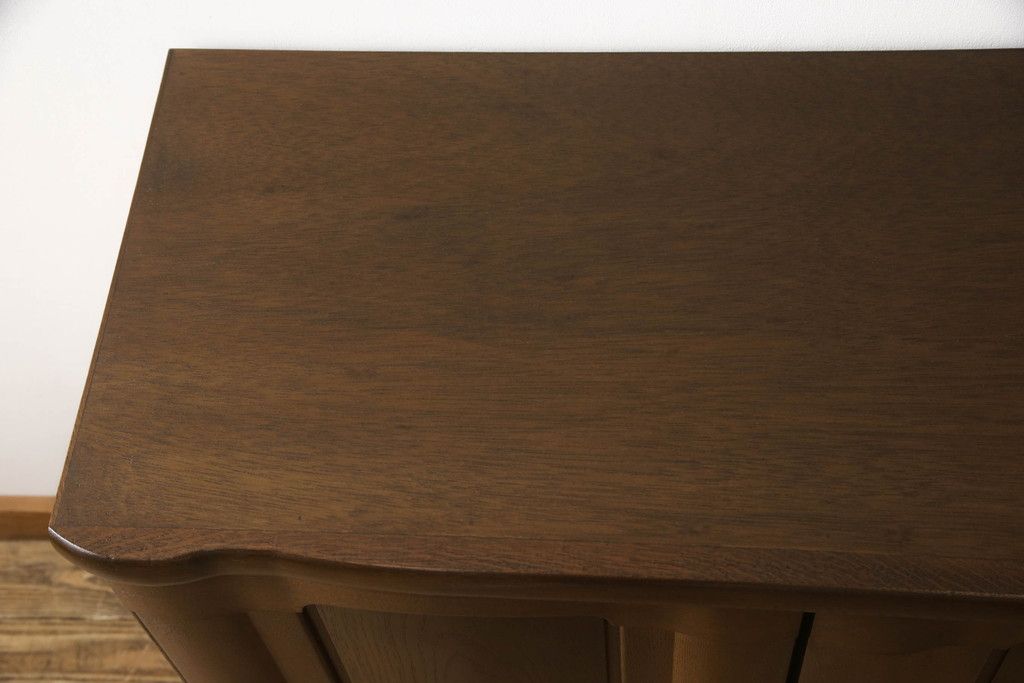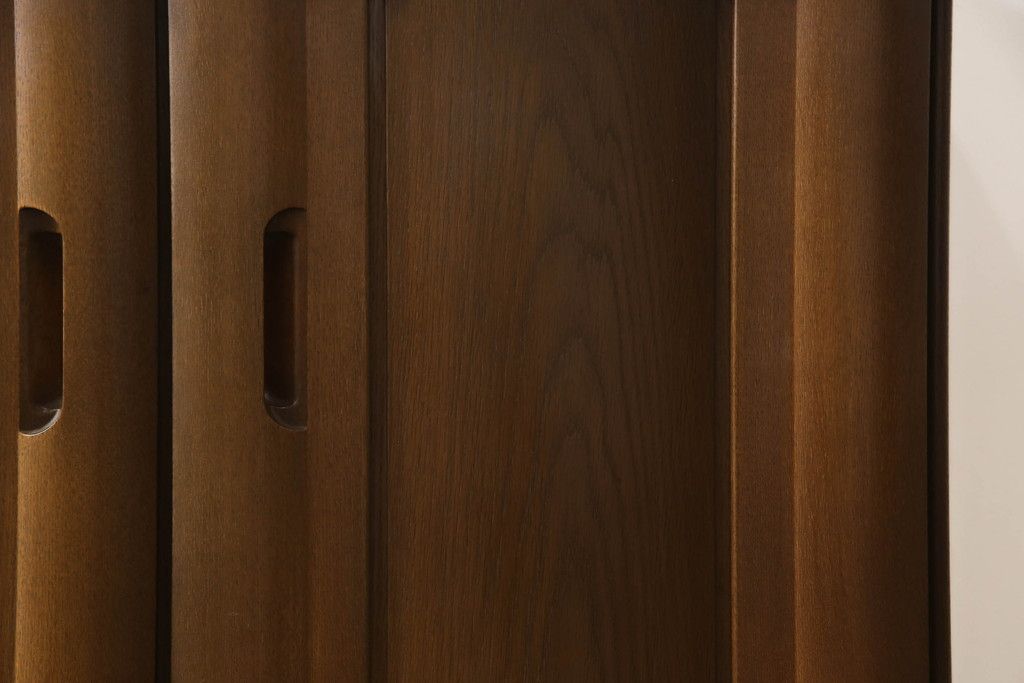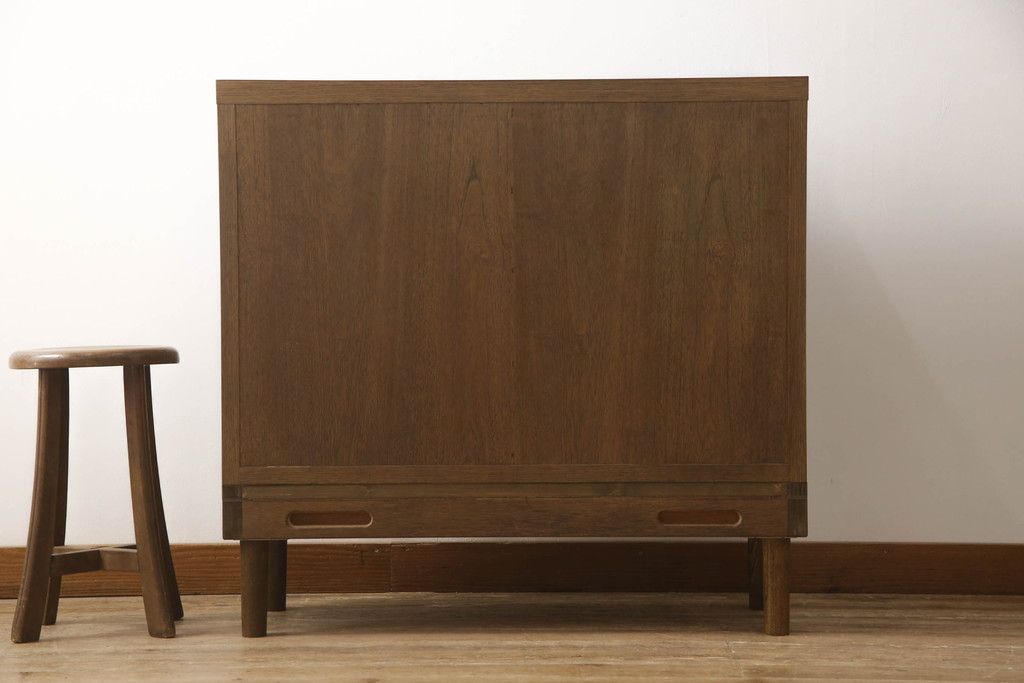 ワードローブをテレビ台にリメイク!高さと奥行きを小さくリサイズし、棚板を新たに制作。脚を取り付け、ワントーン落ち着いた色に着色仕上げ。