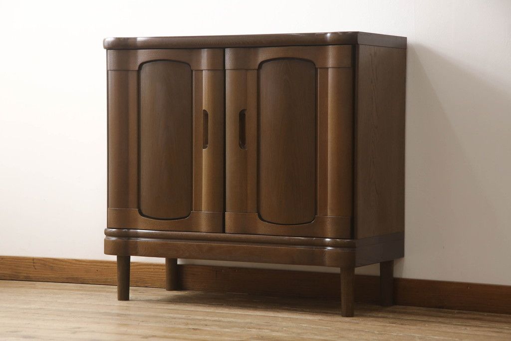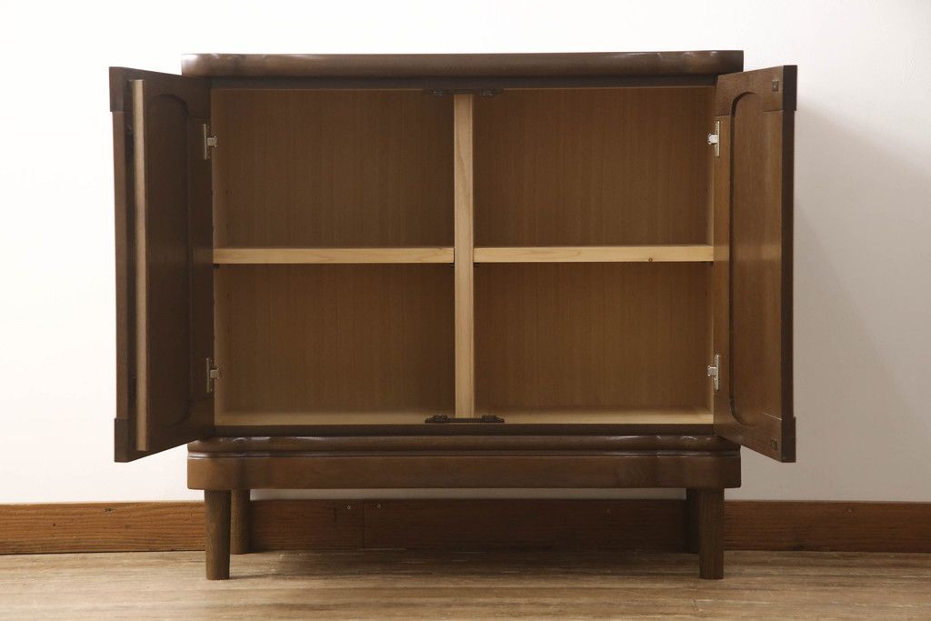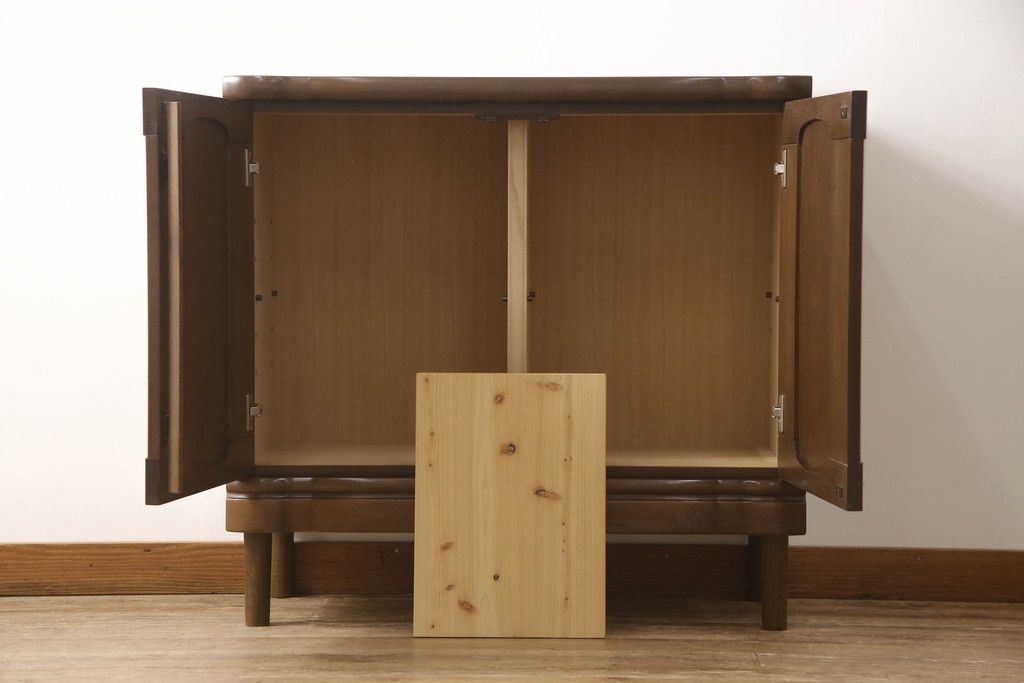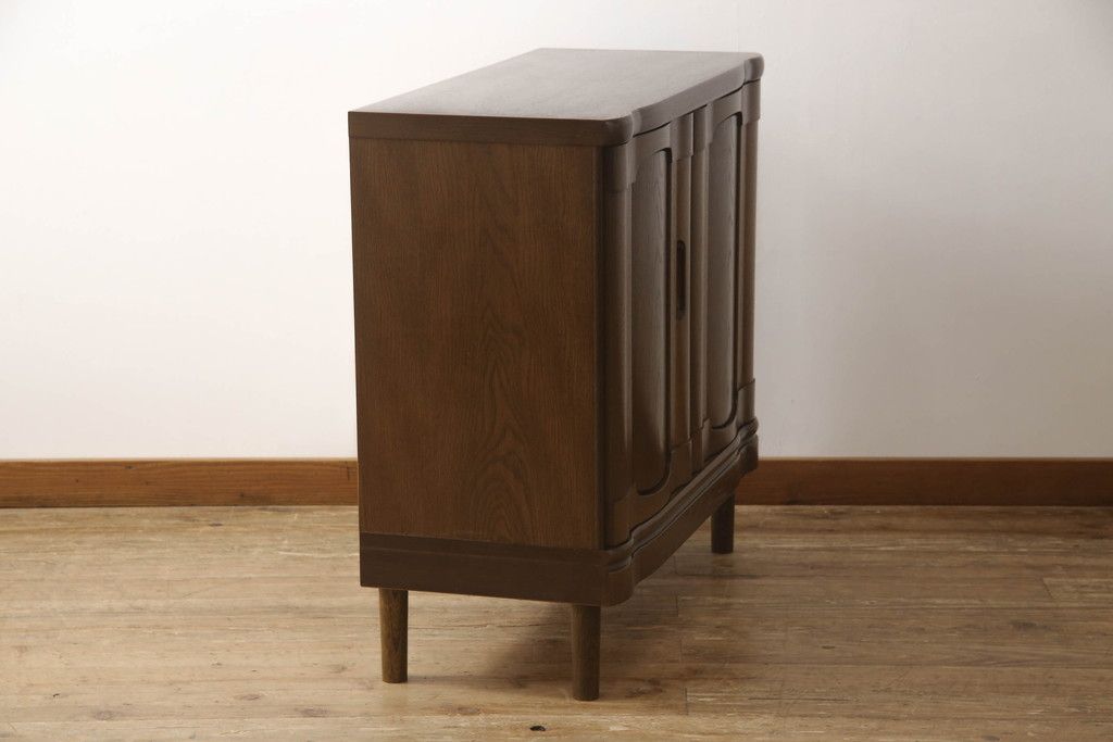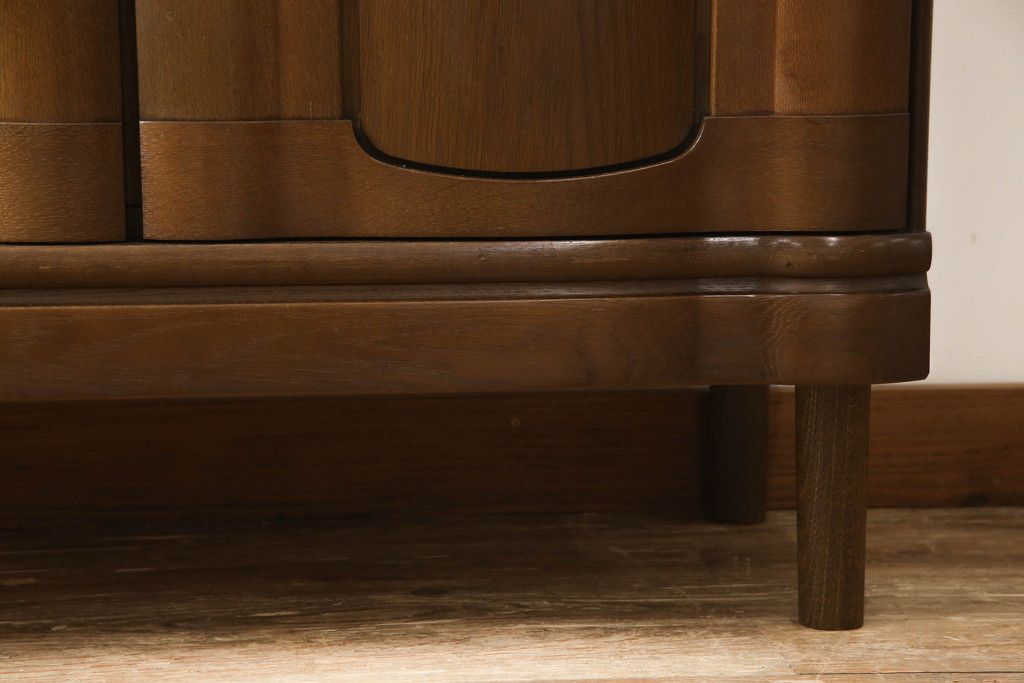 ワードローブをテレビ台にリメイク!高さと奥行きを小さくリサイズし、棚板を新たに制作。脚を取り付け、ワントーン落ち着いた色に着色仕上げ。