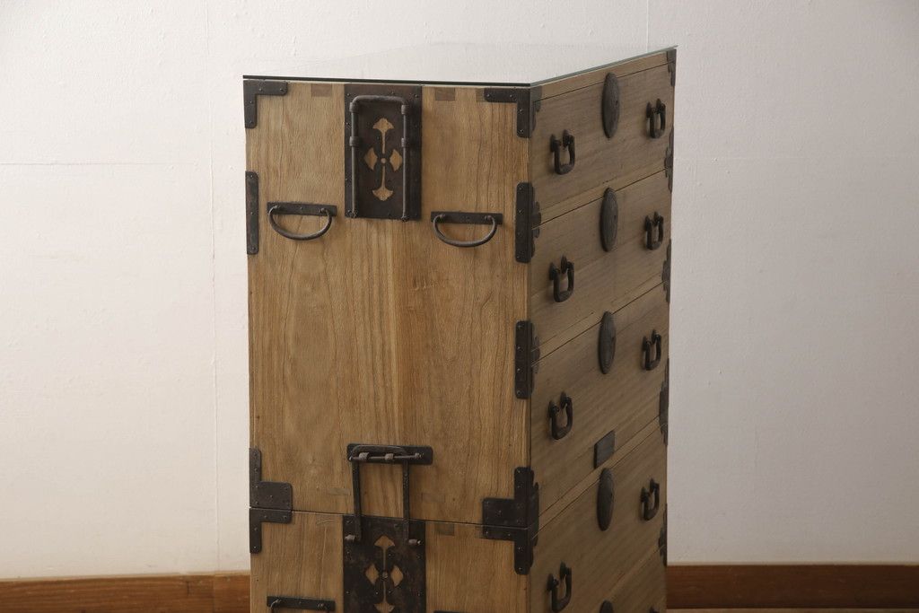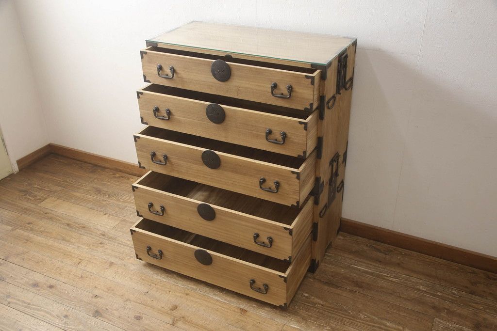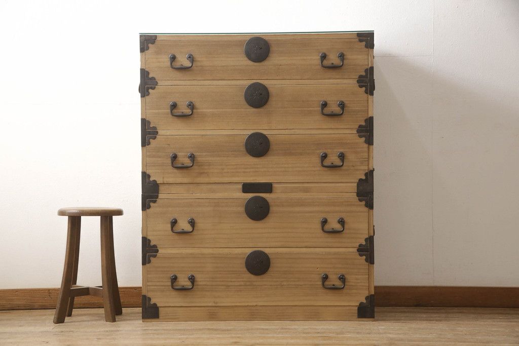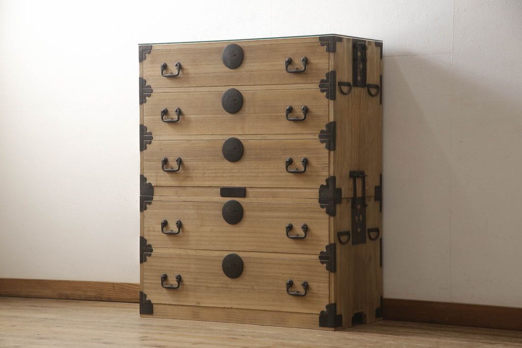 和箪笥 > 桐箪笥をリペア&カスタム!高品質リペアを施し、ガラス天板を取り付け。木地色仕上げ。(引き出し、収納箪笥、衣装箪笥、桐箪笥)