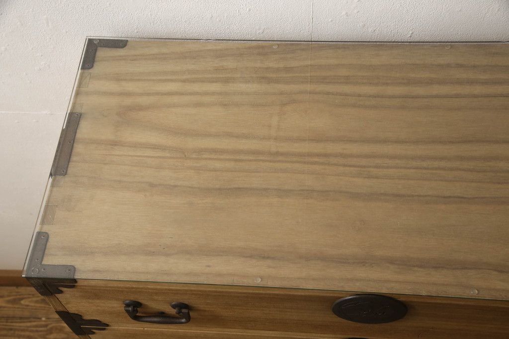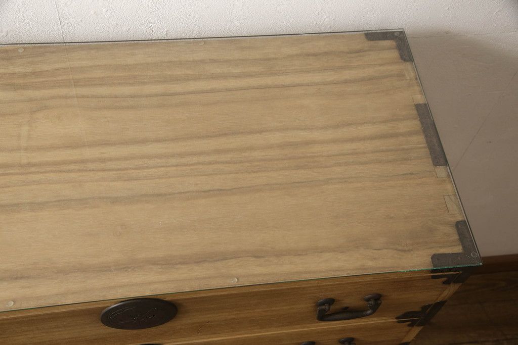 和箪笥> 衣装箪笥 > 桐箪笥をリペア&カスタム!高品質リペアを施し、ガラス天板を取り付け。木地色仕上げ。(引き出し、収納箪笥、衣装箪笥、桐箪笥)