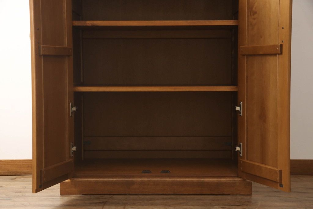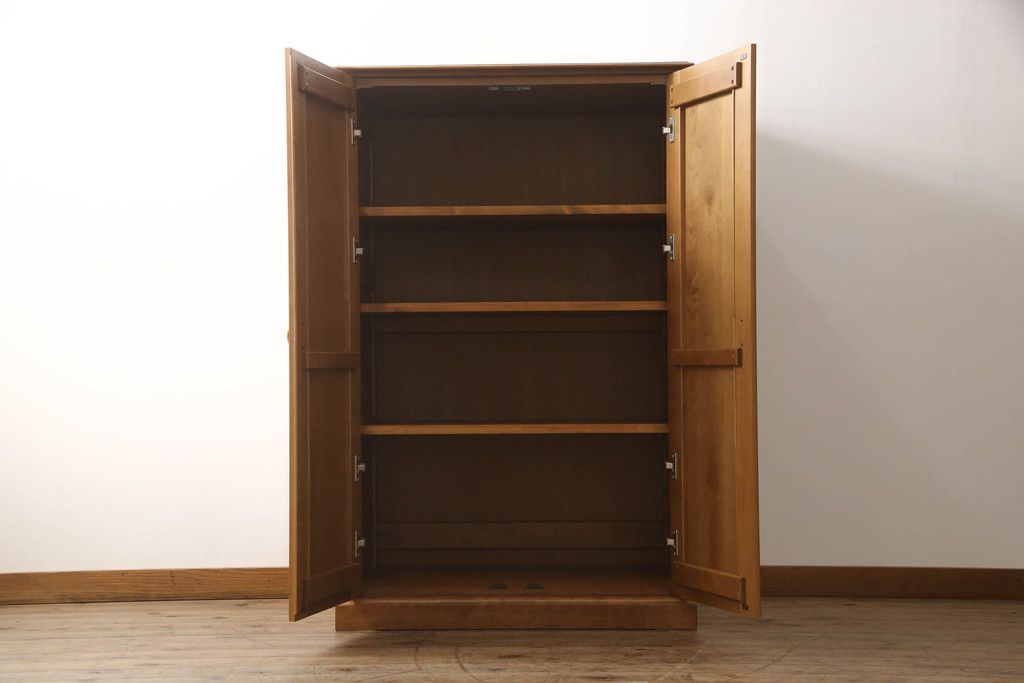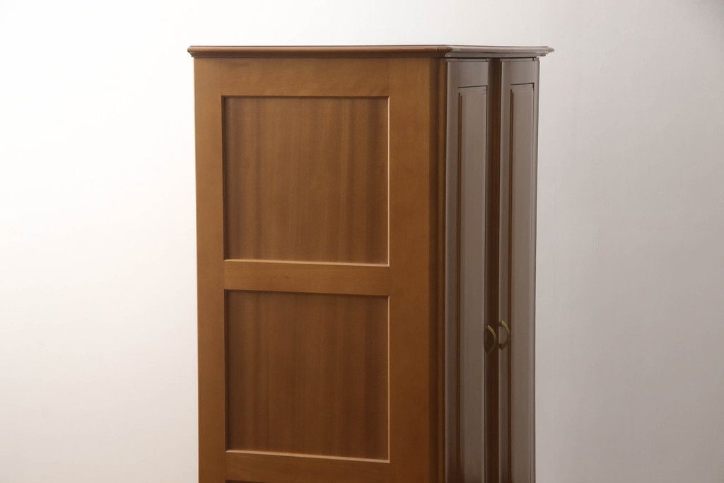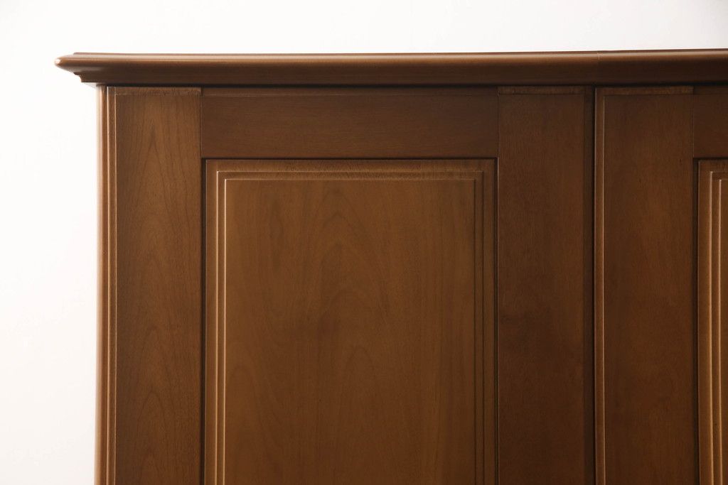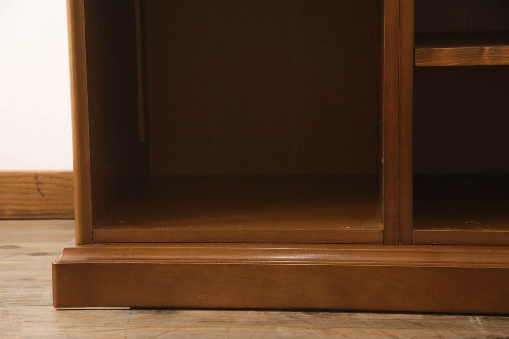 ワードローブを収納棚とテレビ台にリメイク!上部は横幅もリサイズし、底面と台輪を取り付け。可動式の棚を製作して収納棚に。下部は高さをカットし、天板と棚板を製作してオープンタイプのテレビ台に。