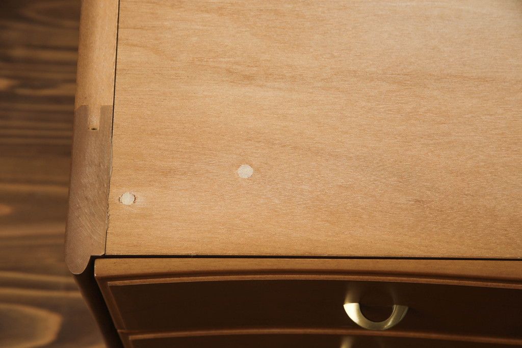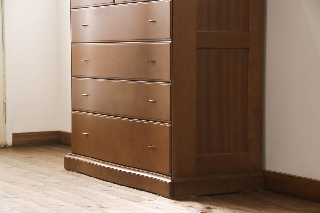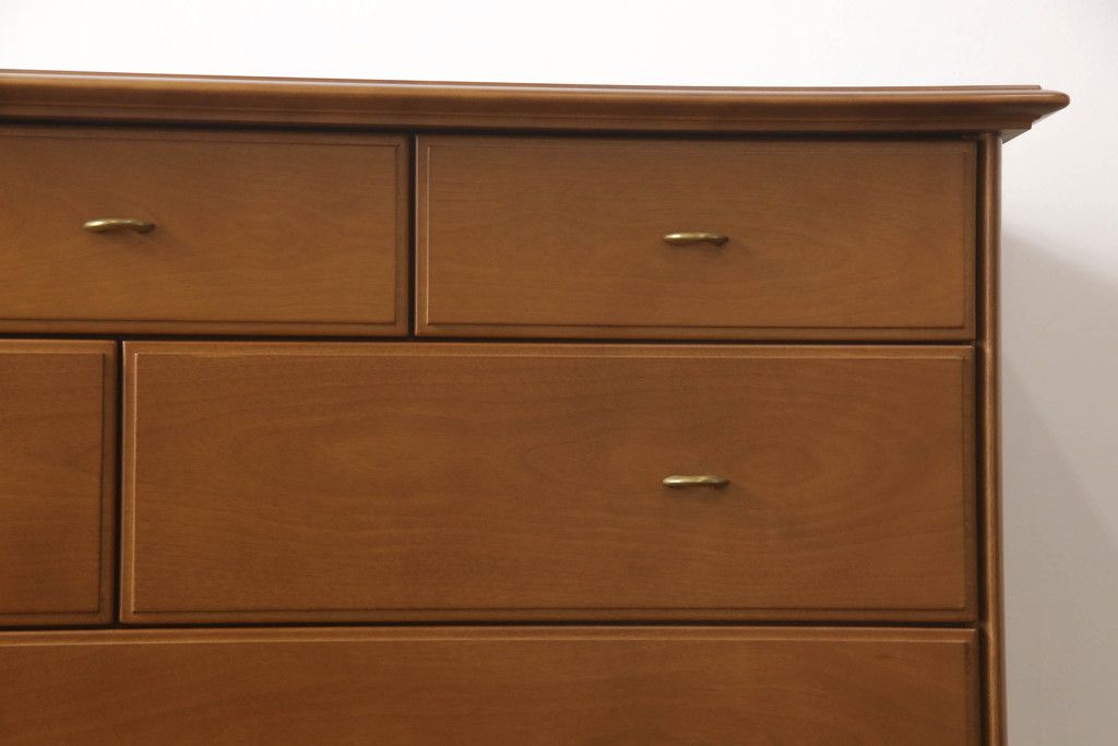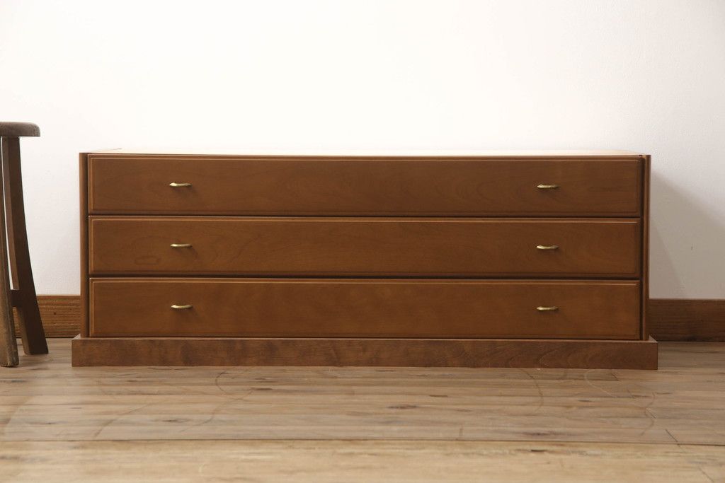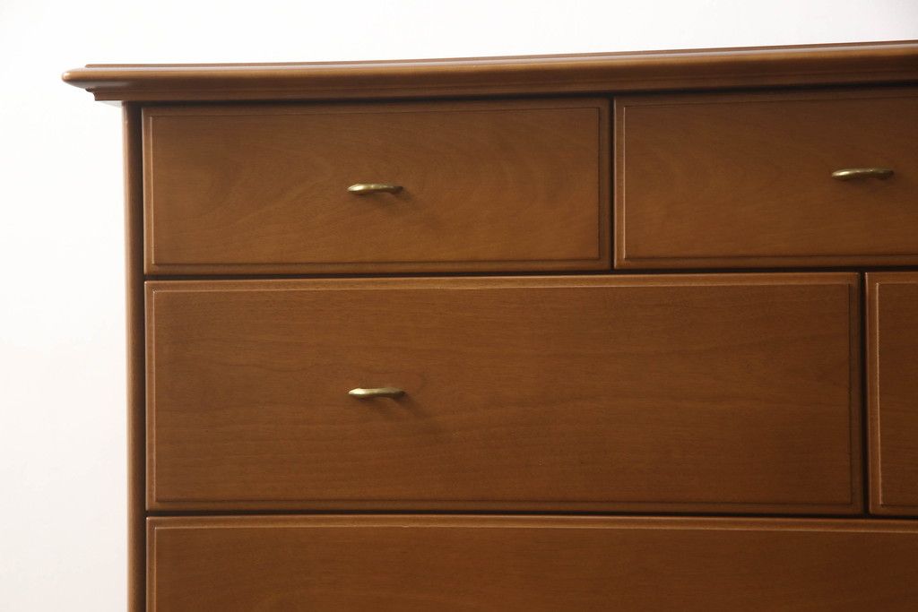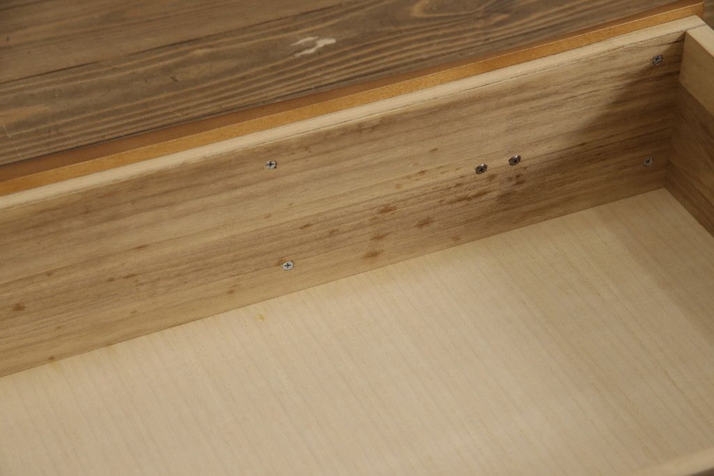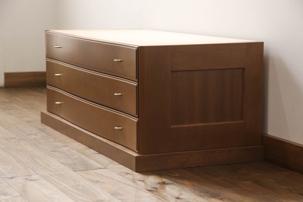 ハイチェストをローボードとチェストにリメイク!上から3段は天板を取り外し台輪を付けてローボードに。下段は上段の天板を移設しチェストに。