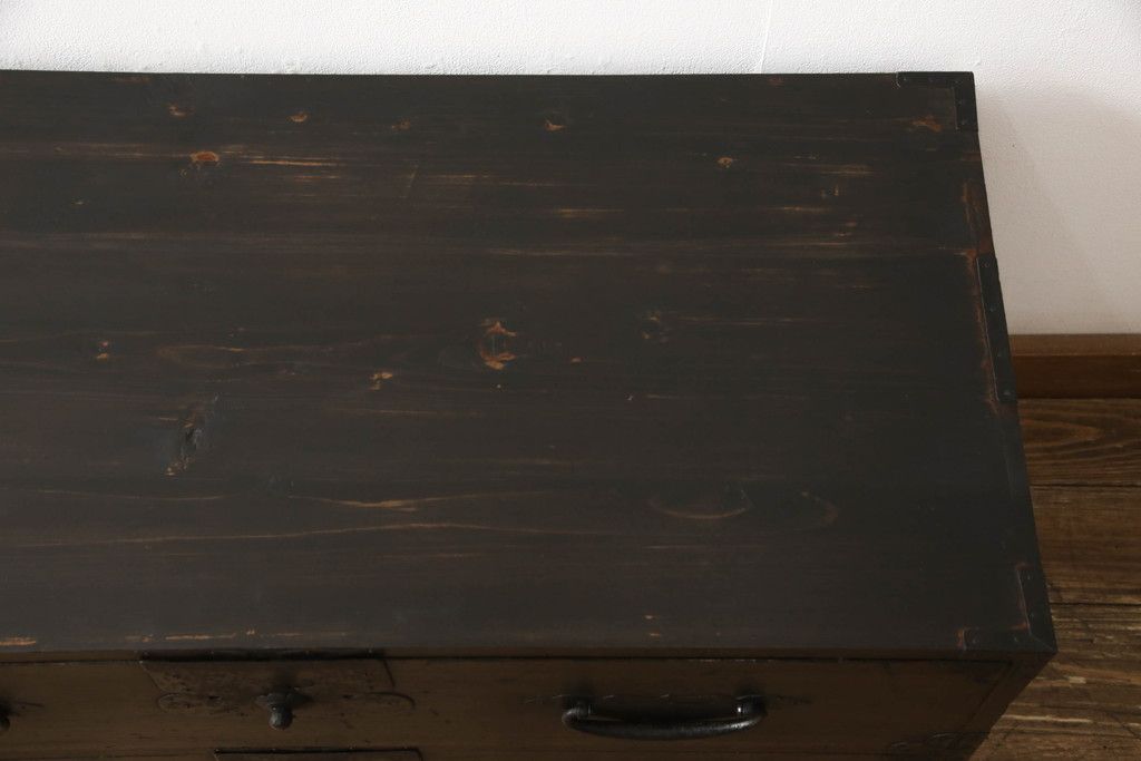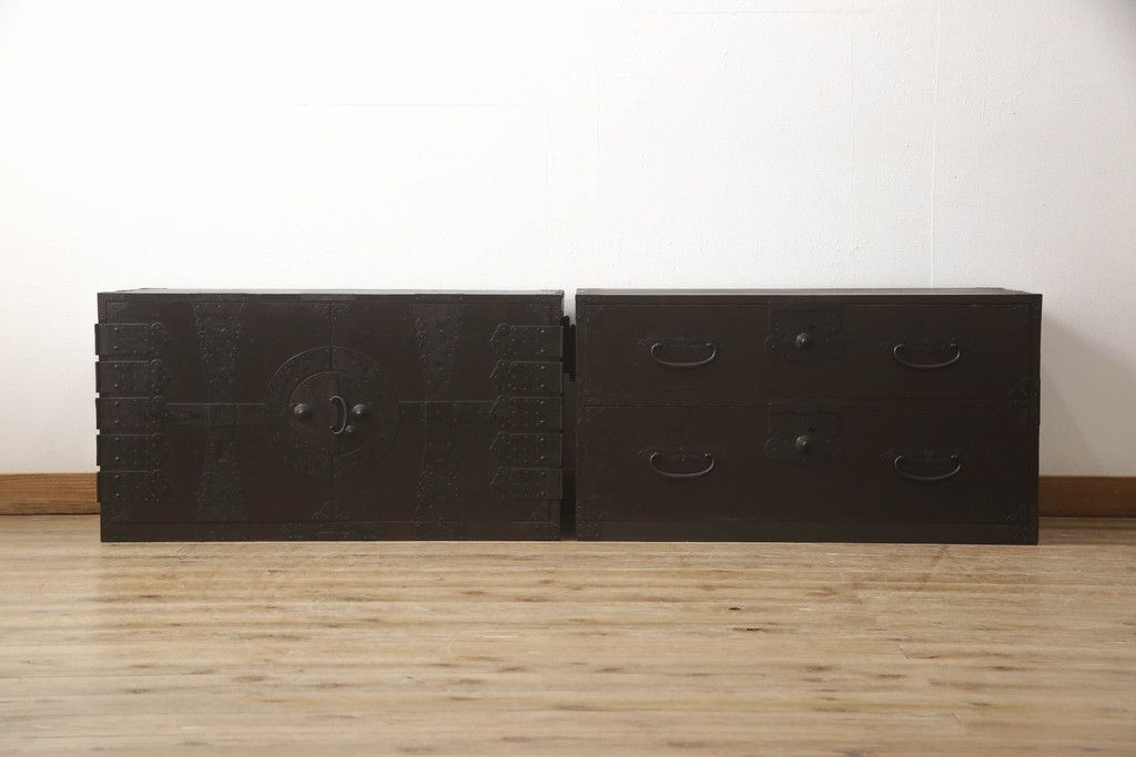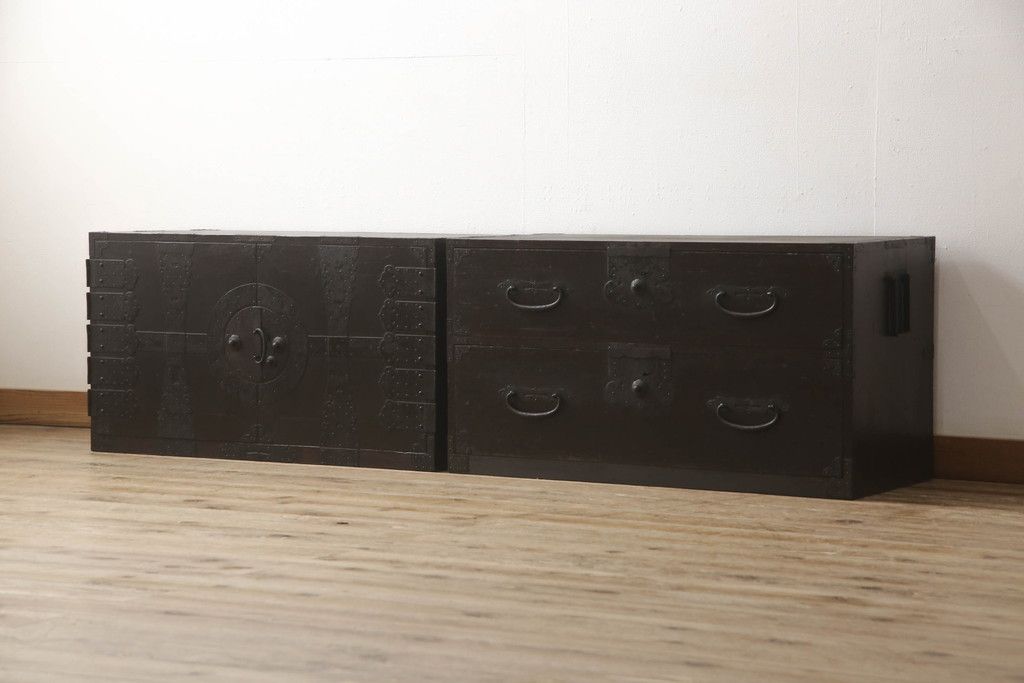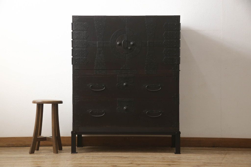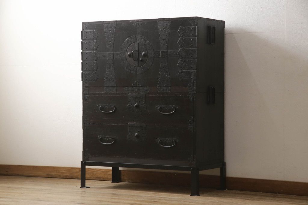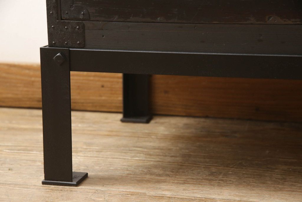 重ね箪笥をリペア&カスタム!観音扉内部は引き出しを取り外し棚に加工。鉄脚を取り付け、現状の色味をベースに着色仕上げ。(観音箪笥、衣装箪笥、時代箪笥、引き出し)