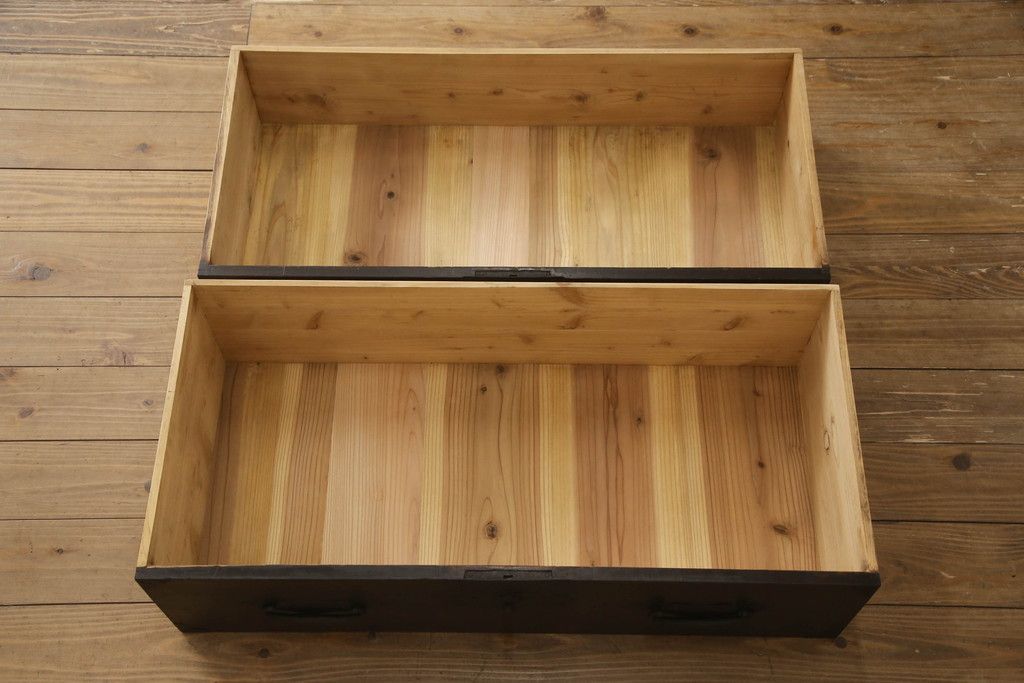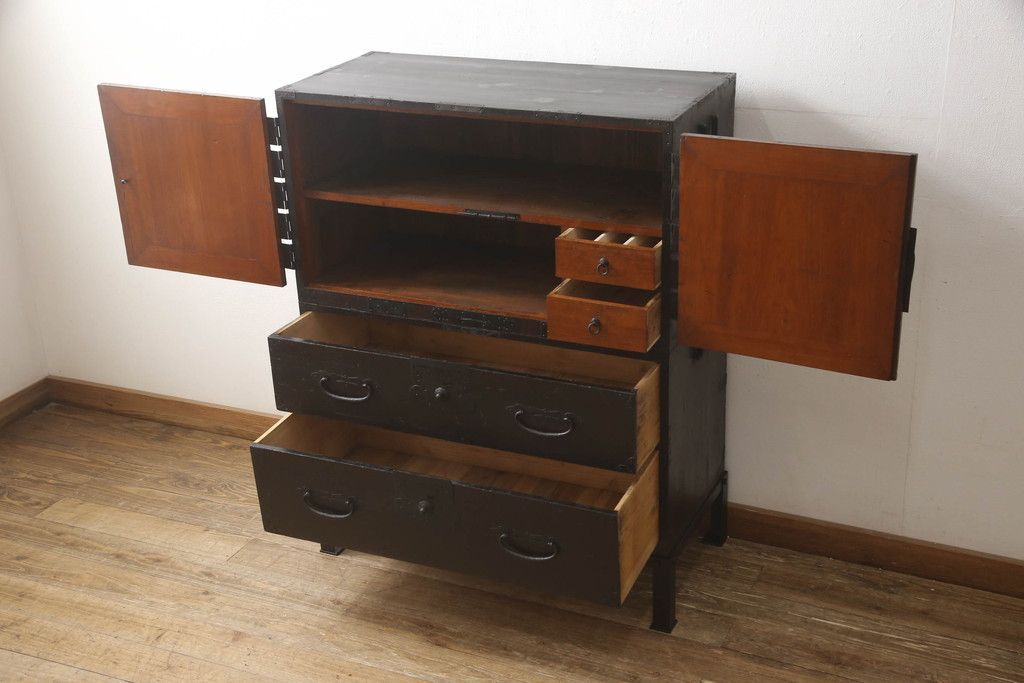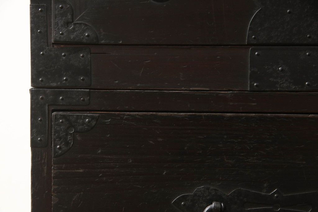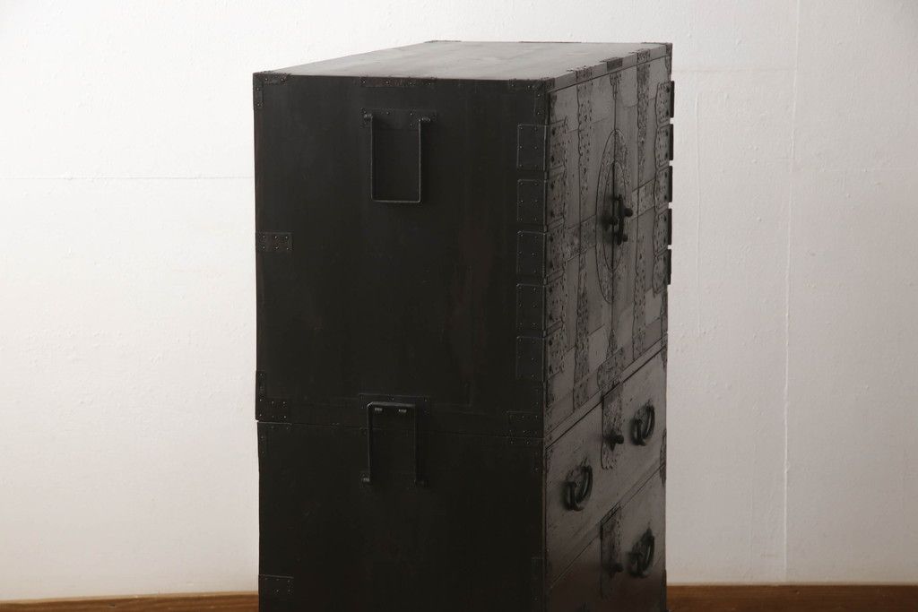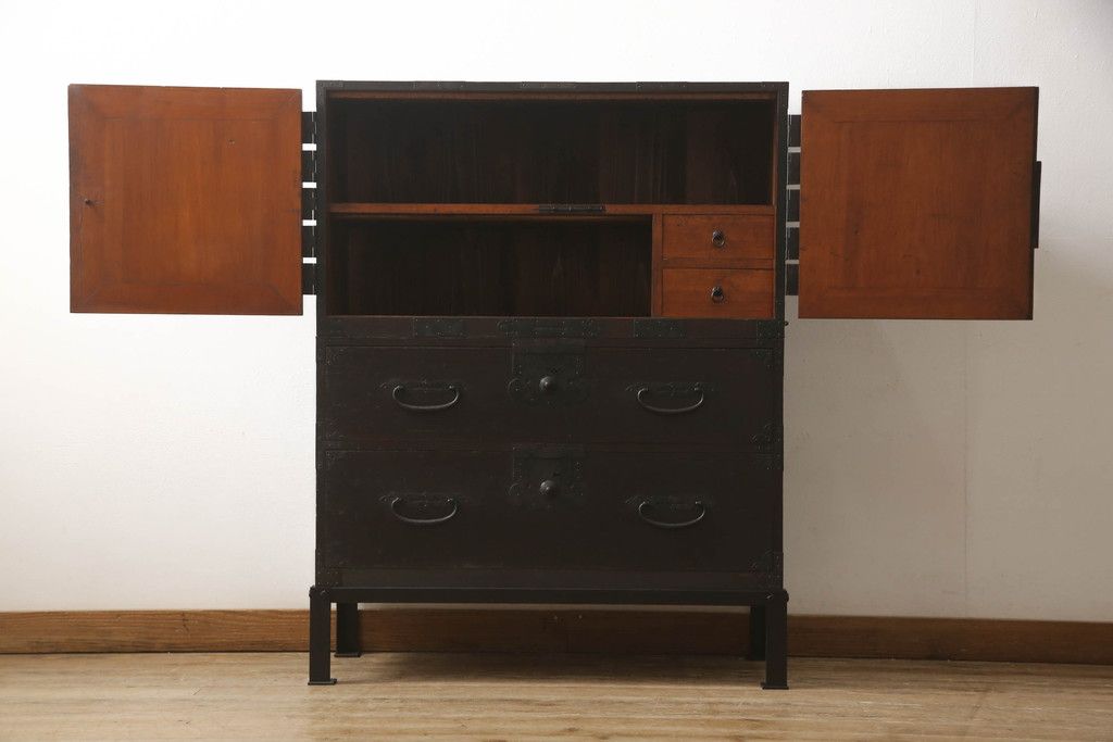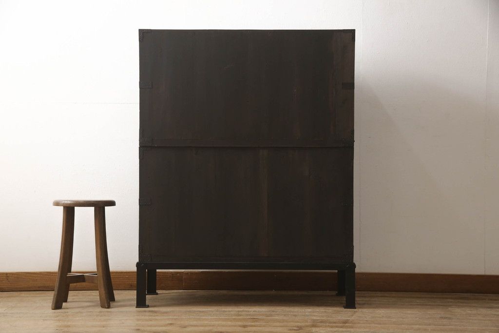 和箪笥> 衣装箪笥 > 重ね箪笥をリペア&カスタム!観音扉内部は引き出しを取り外し棚に加工。鉄脚を取り付け、現状の色味をベースに着色仕上げ。(観音箪笥、衣装箪笥、時代箪笥、引き出し)