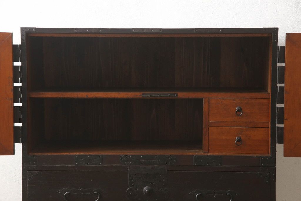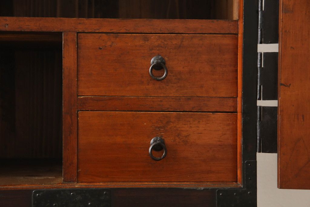 和箪笥 > 重ね箪笥をリペア&カスタム!観音扉内部は引き出しを取り外し棚に加工。鉄脚を取り付け、現状の色味をベースに着色仕上げ。(観音箪笥、衣装箪笥、時代箪笥、引き出し)