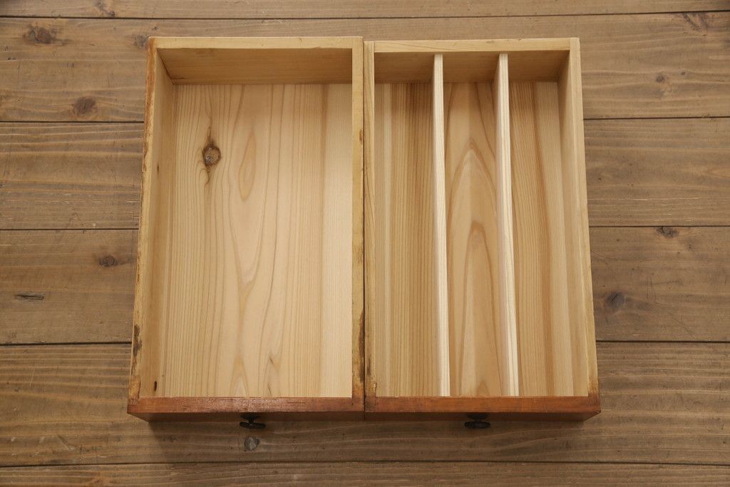 小さい引き出しのうち1杯のみ内部が縦方向に3分割になるように仕切りを取り付け