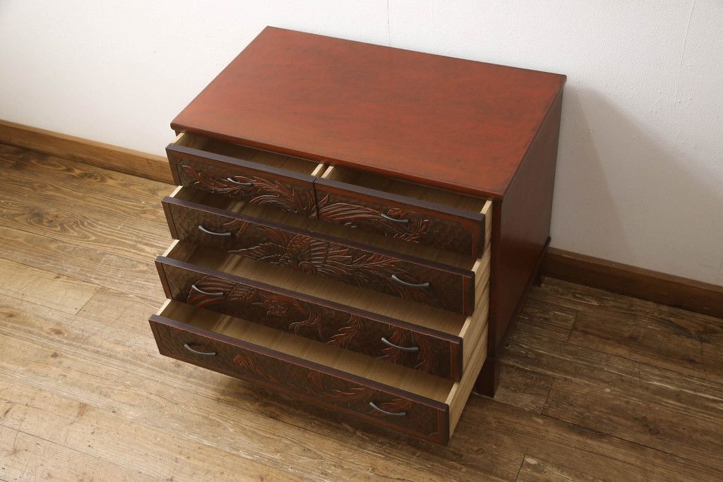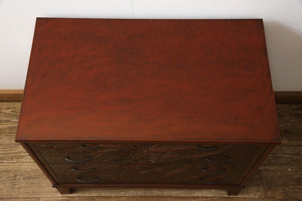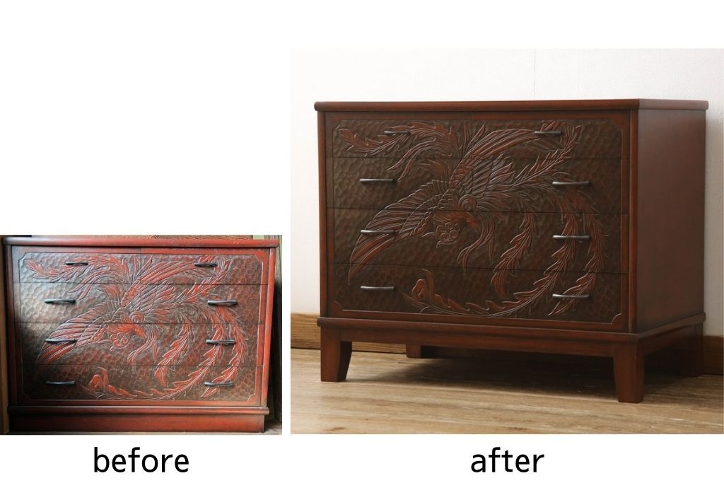 和箪笥をチェストにリメイク!台輪をカットし木製脚の取り付け。現状をベースにワントーン落ち着いた色に着色仕上げ。