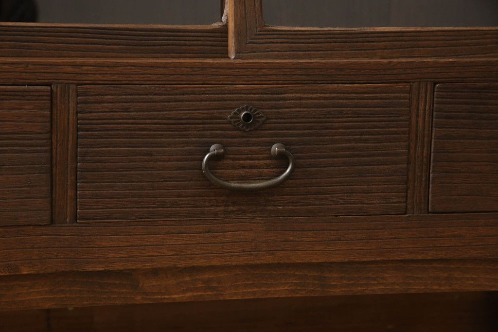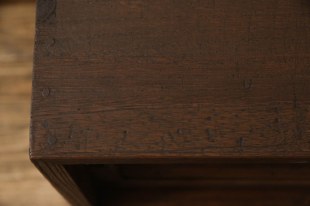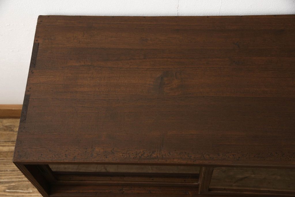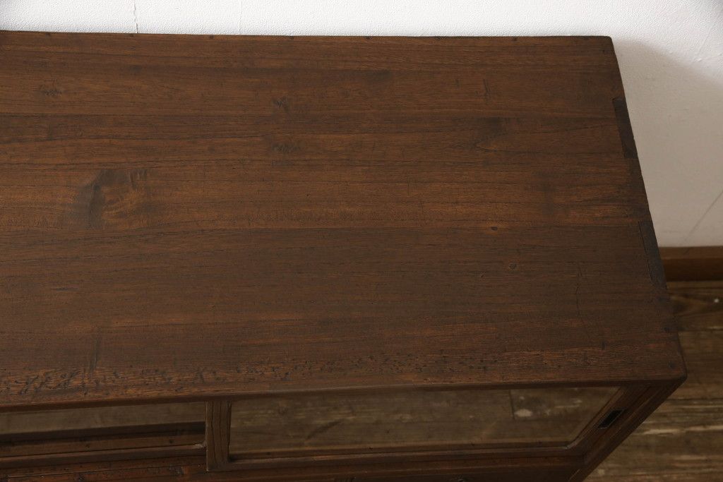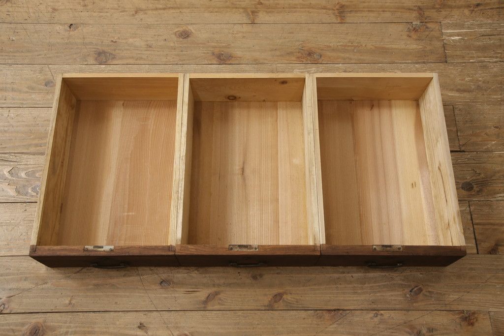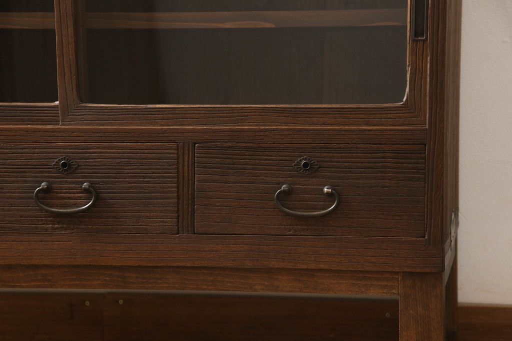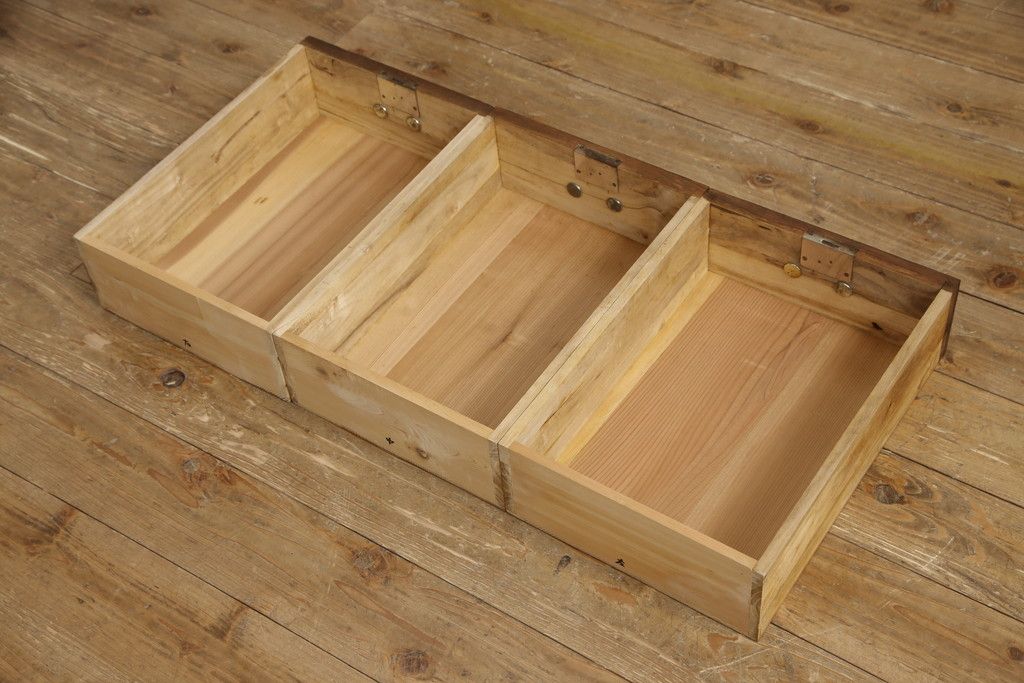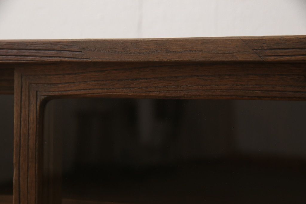 桐箪笥をローボードにリメイク!引き戸にクリアガラスをはめ込み、引手を取り付け。既存の棚板を撤去し新たな棚下を製作、脚を取り付け。オーク系に着色して仕上げ。