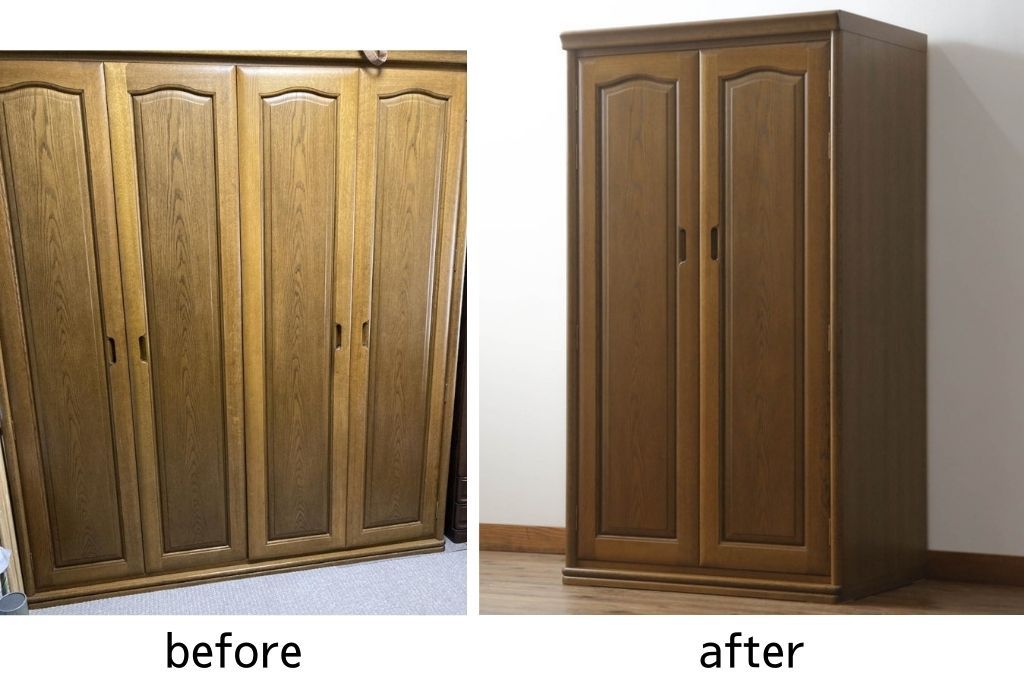 ワードローブを小さくリメイク!横幅を半分に、高さを内側の引き出し分低くリサイズ。ワントーン落ち着いた色に着色仕上げ。