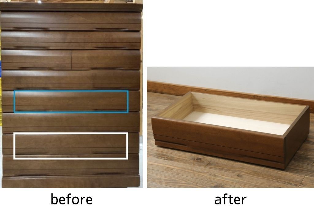 お客様持ち込みの和箪笥をベッド下収納へリメイク