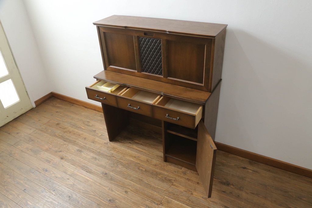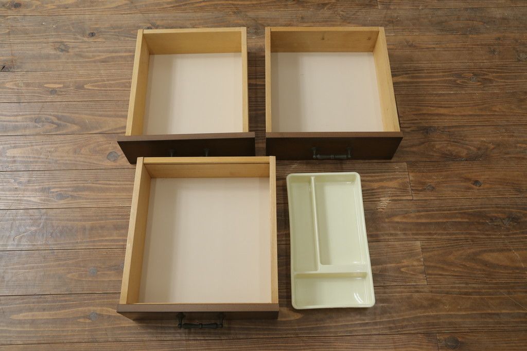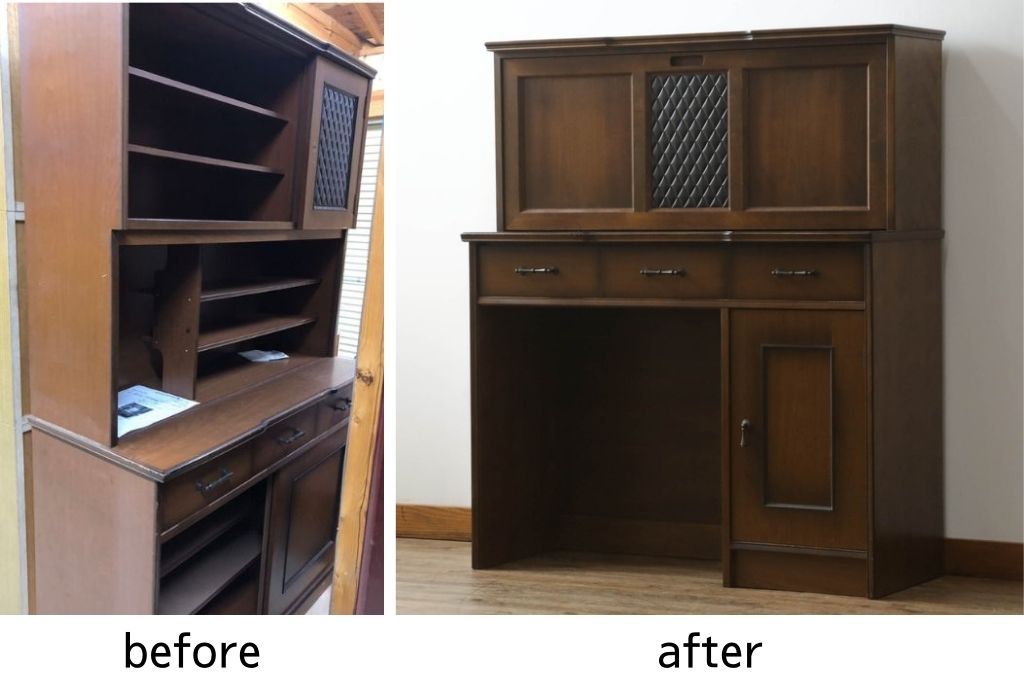 お客様持ち込みの三段重ね茶箪笥をライティングビューロー(中下段)へリメイク