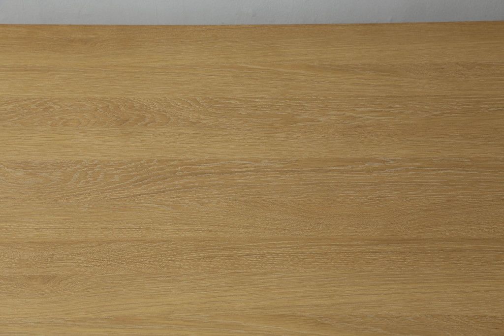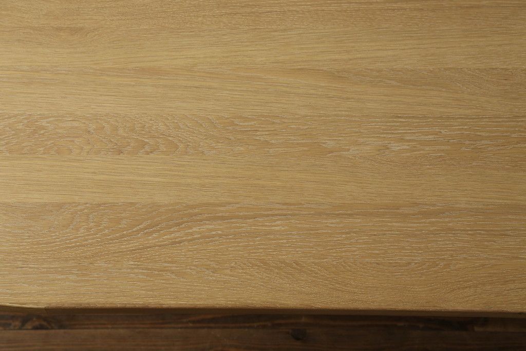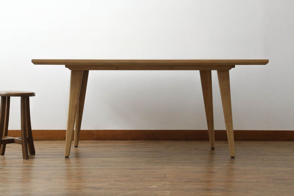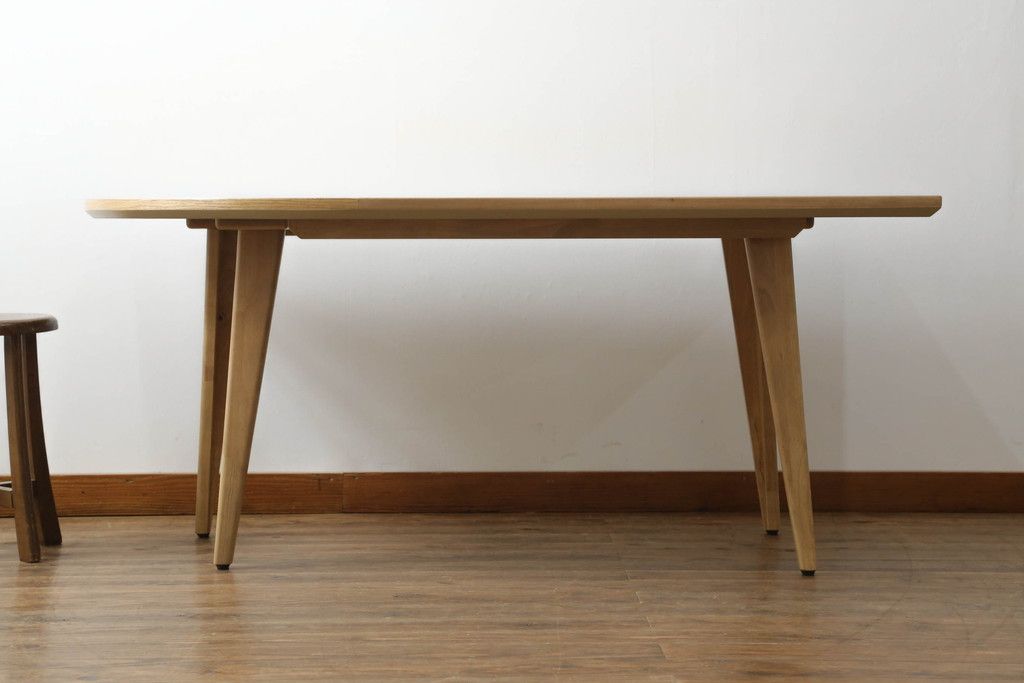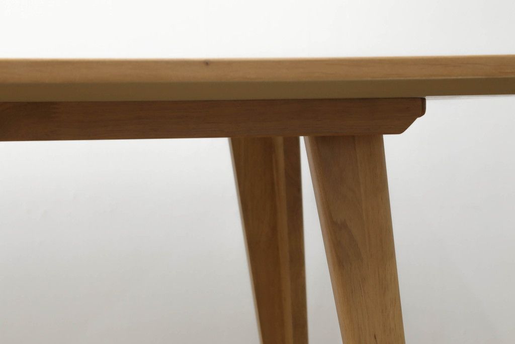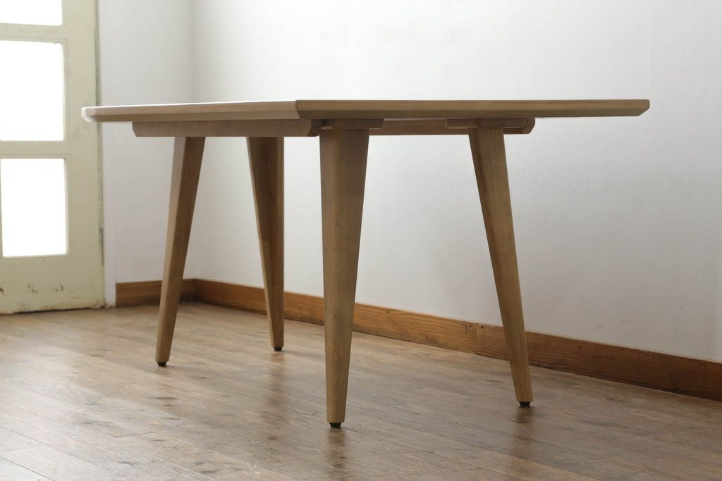 ダイニングテーブルの角1か所を丸くリメイク!指定の角を曲線にカットし、断面にオーク突板を張って仕上げ。それに合わせて脚を移設。