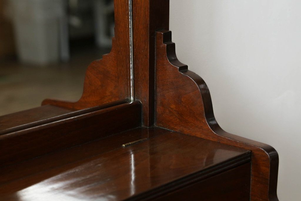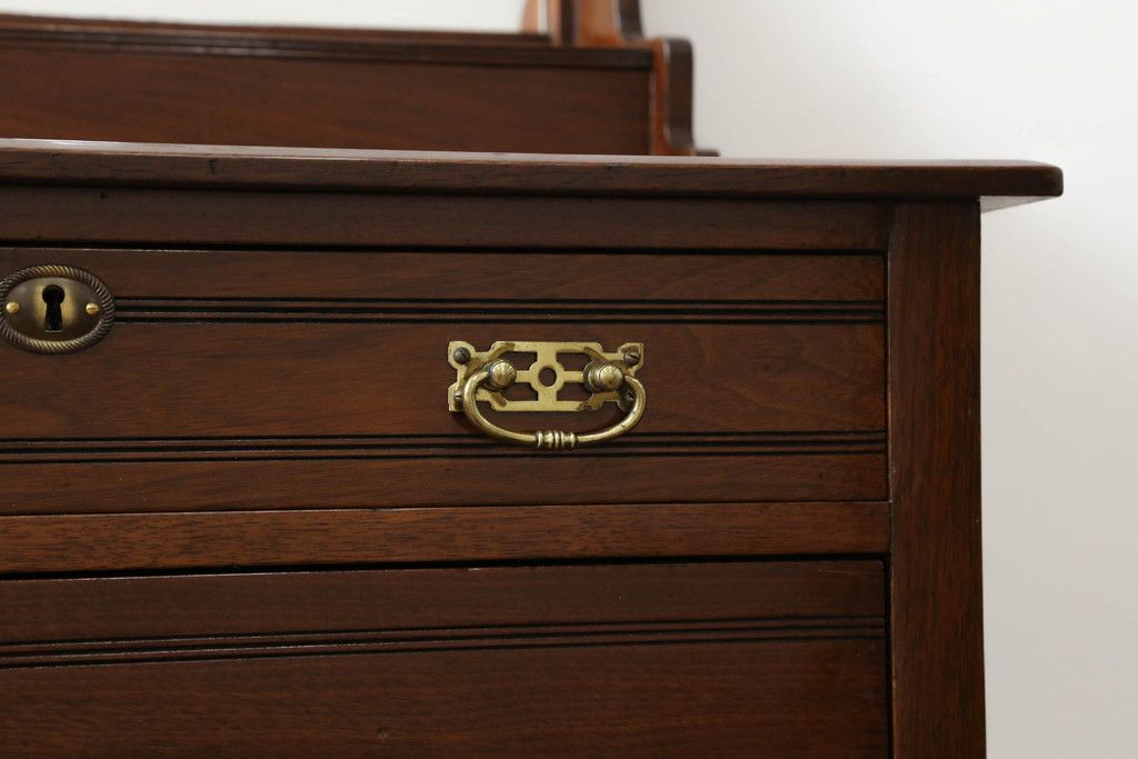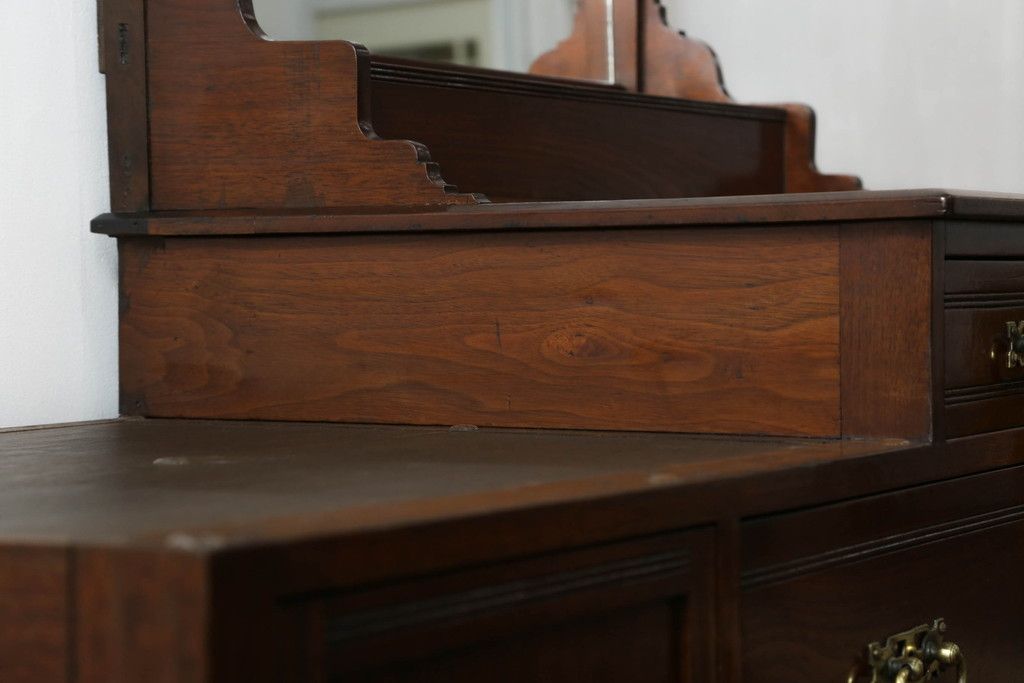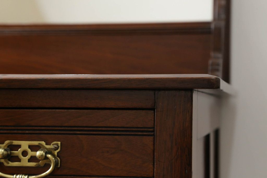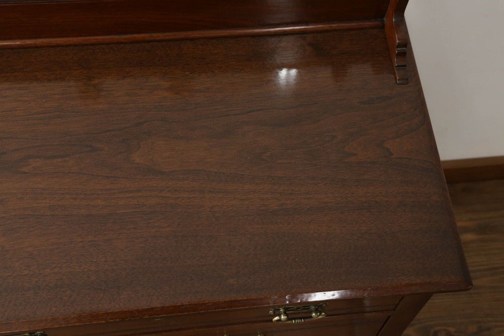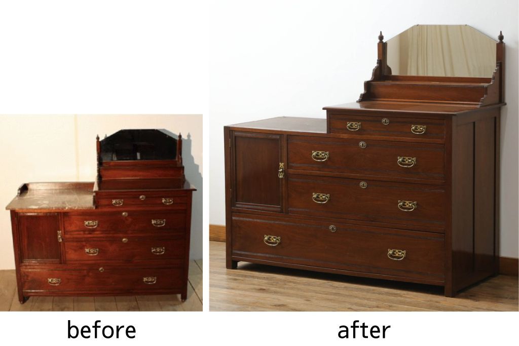 ウォッシュスタンドを綺麗に再生!高品質リペアを施し、背面・大理石天板下・引き出しの前板以外を新材に交換し、本体に合わせた着色仕上げ。