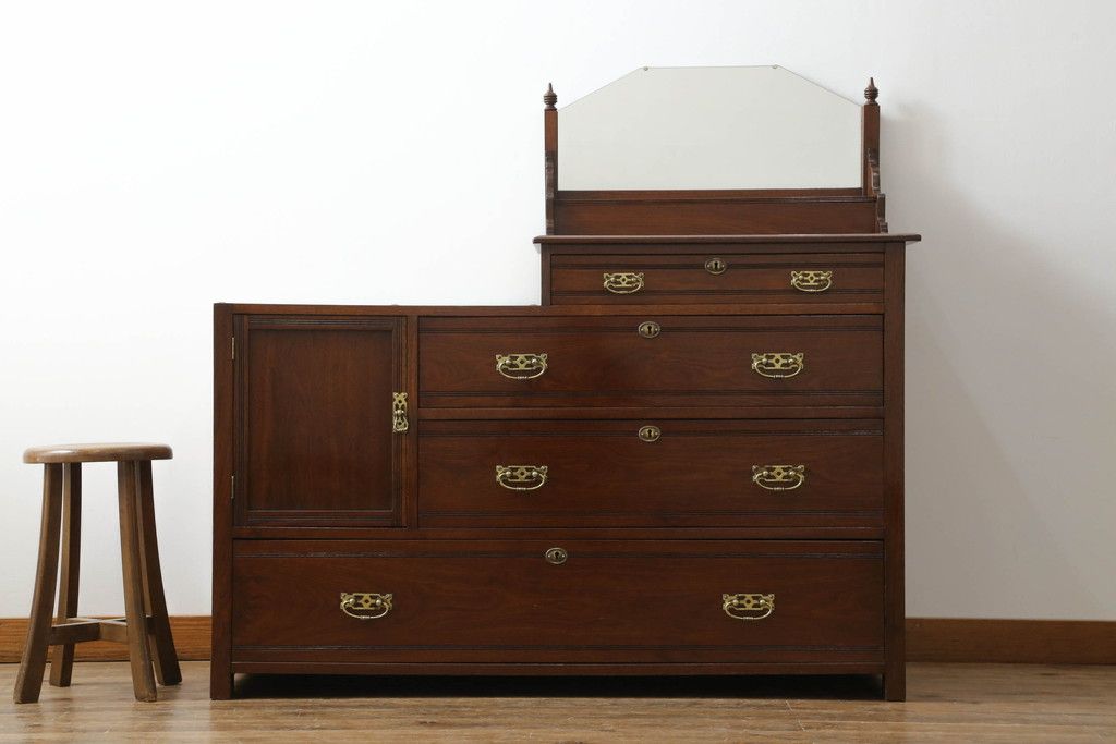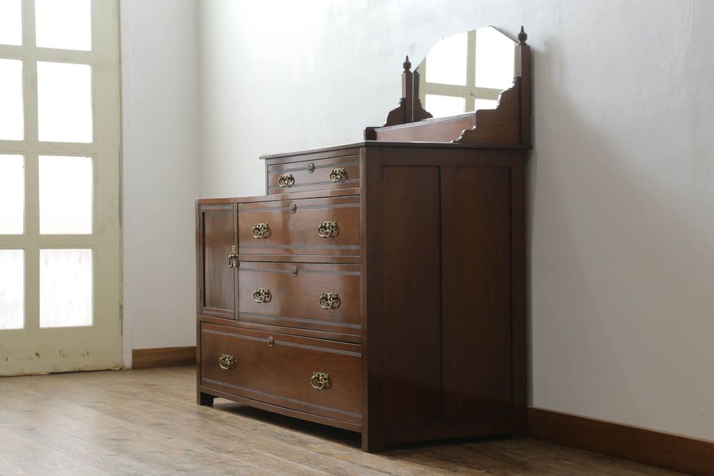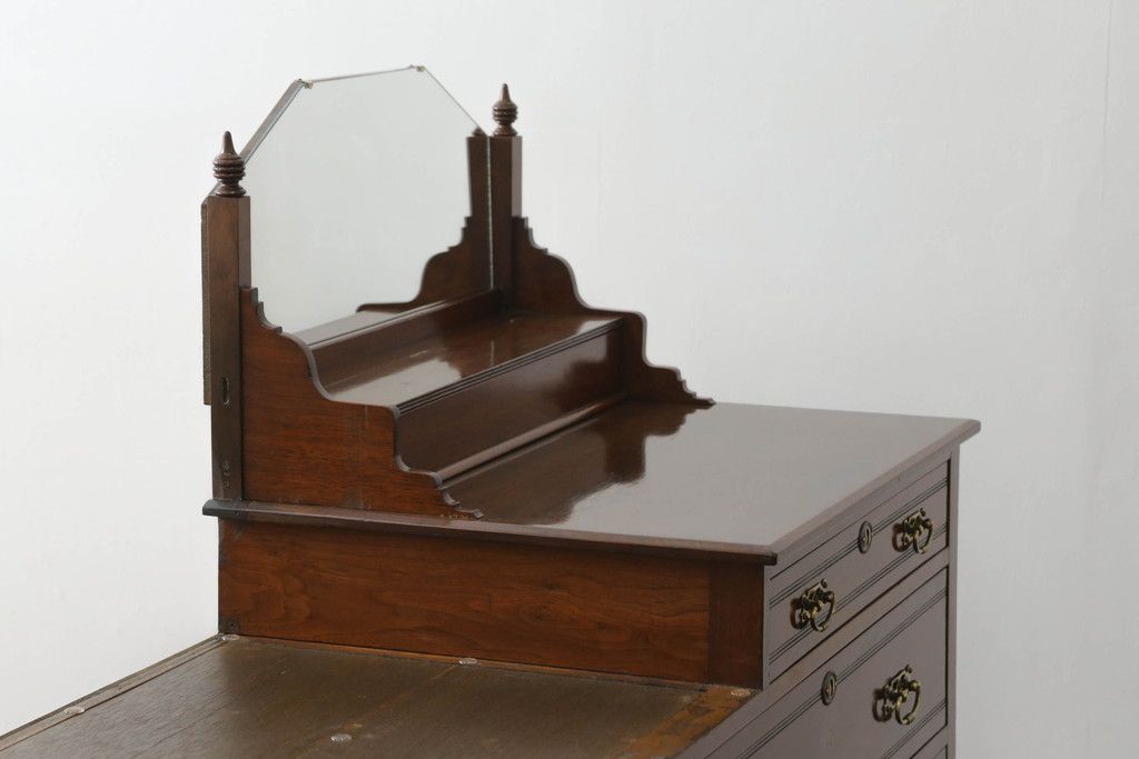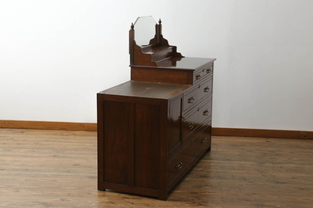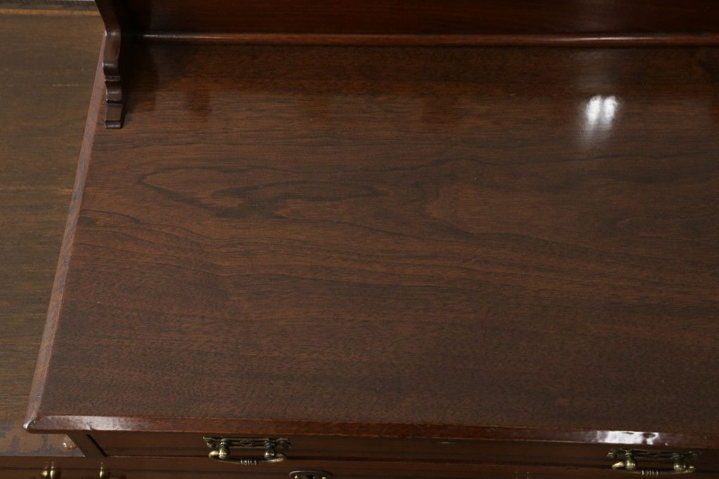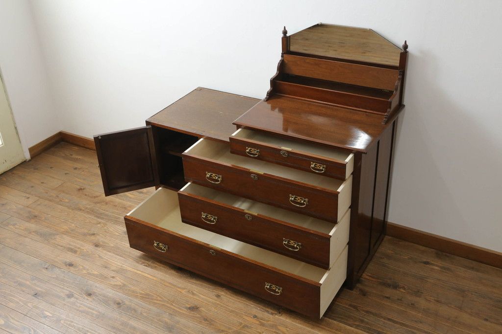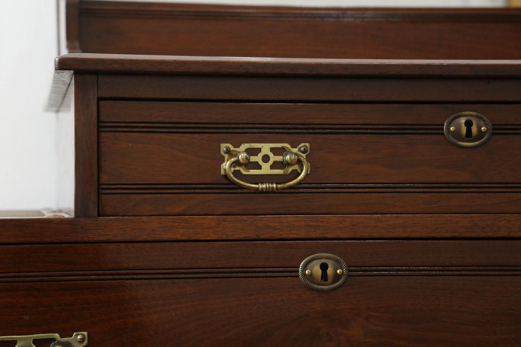 ウォッシュスタンドを綺麗に再生!高品質リペアを施し、背面・大理石天板下・引き出しの前板以外を新材に交換し、本体に合わせた着色仕上げ。