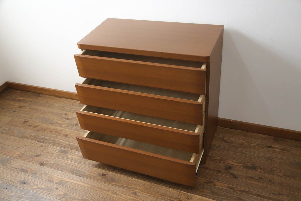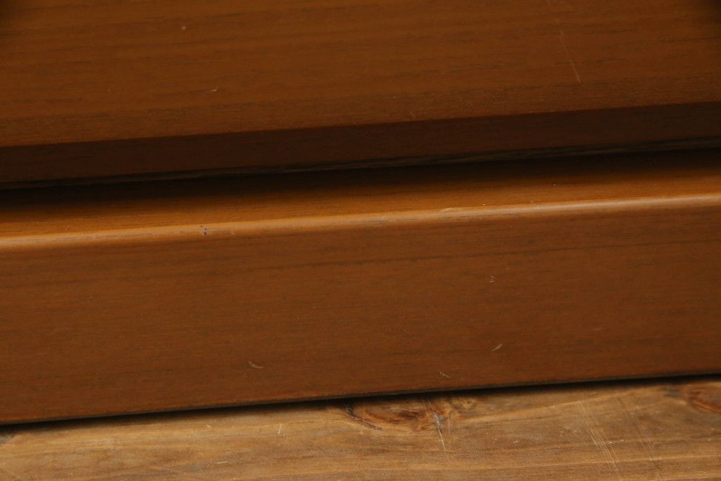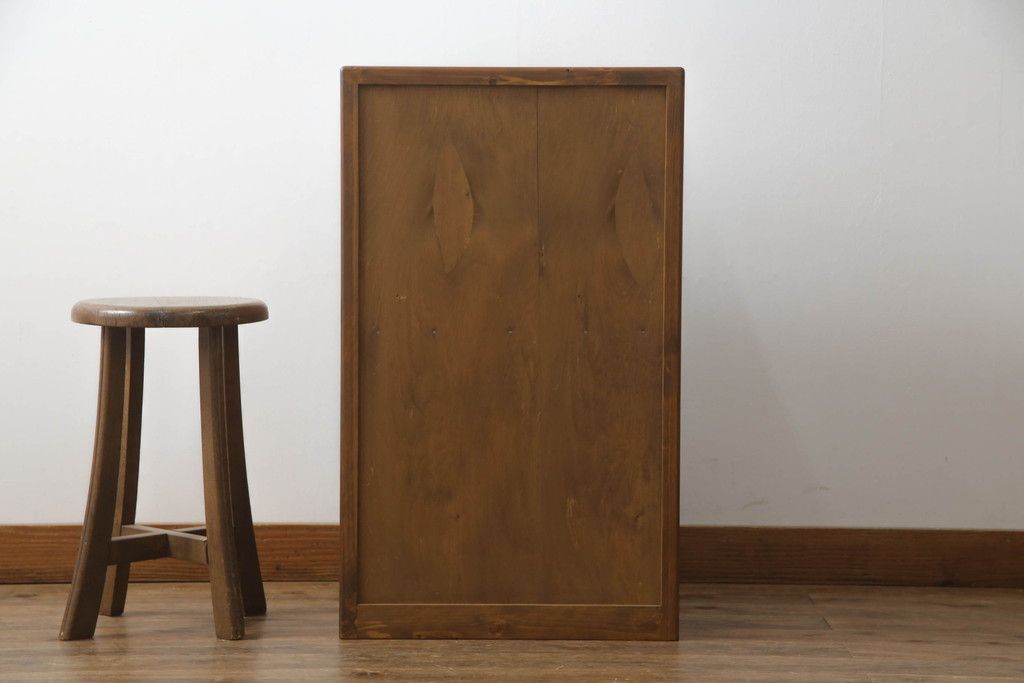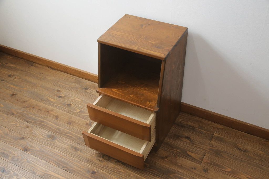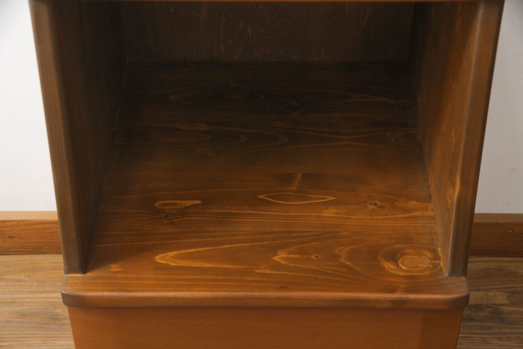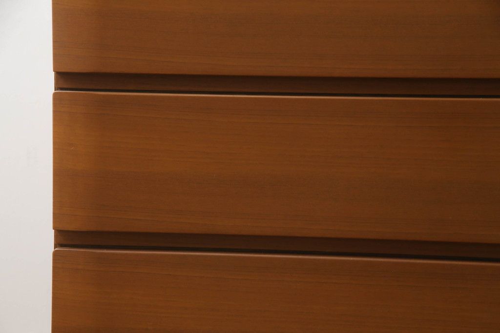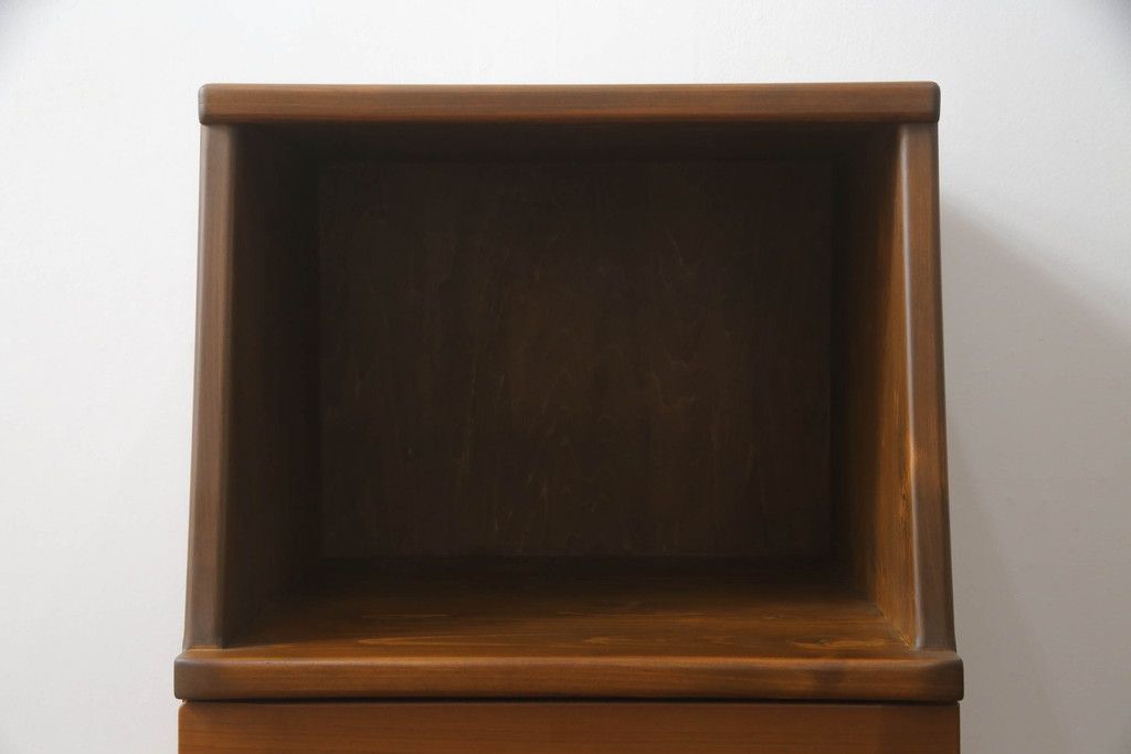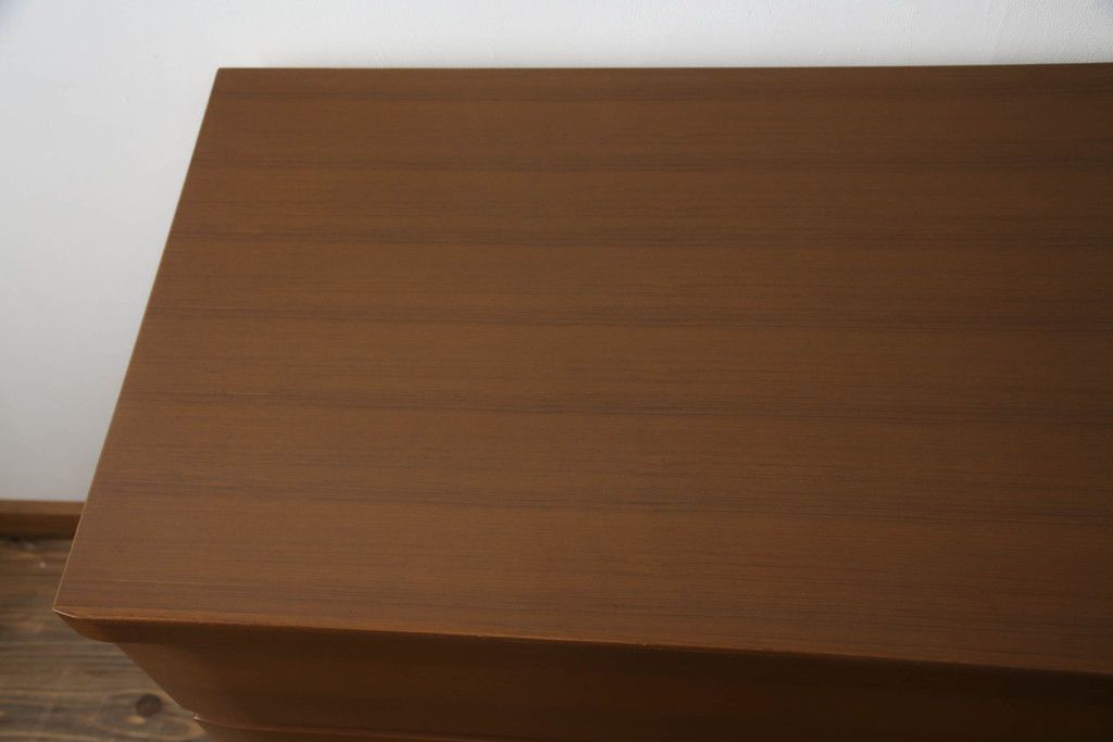 箪笥をサイドキャビネットとチェストにリメイク!上部2杯は新たに制作したオープンラックの引き出しにし、サイドキャビネットに加工。下部4杯は箪笥の天板を移設し、チェストに。いずれも現状の色味をベースに着色仕上げ。