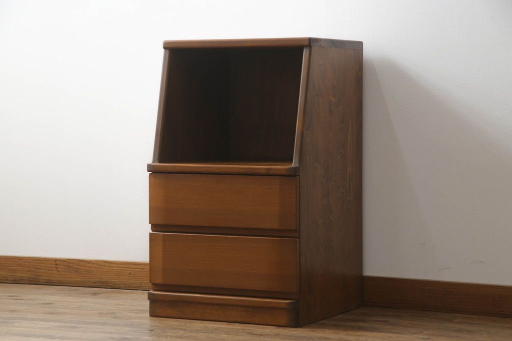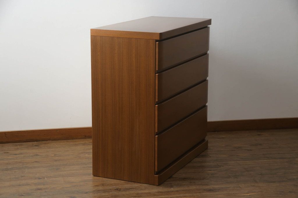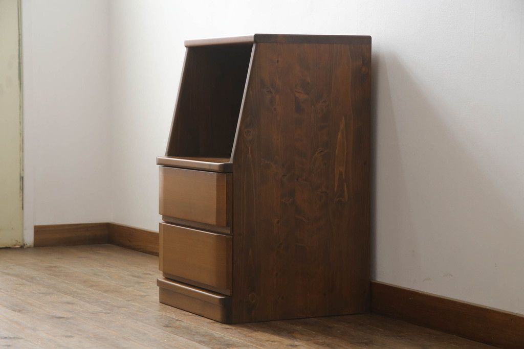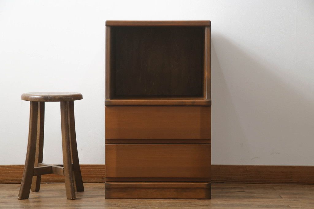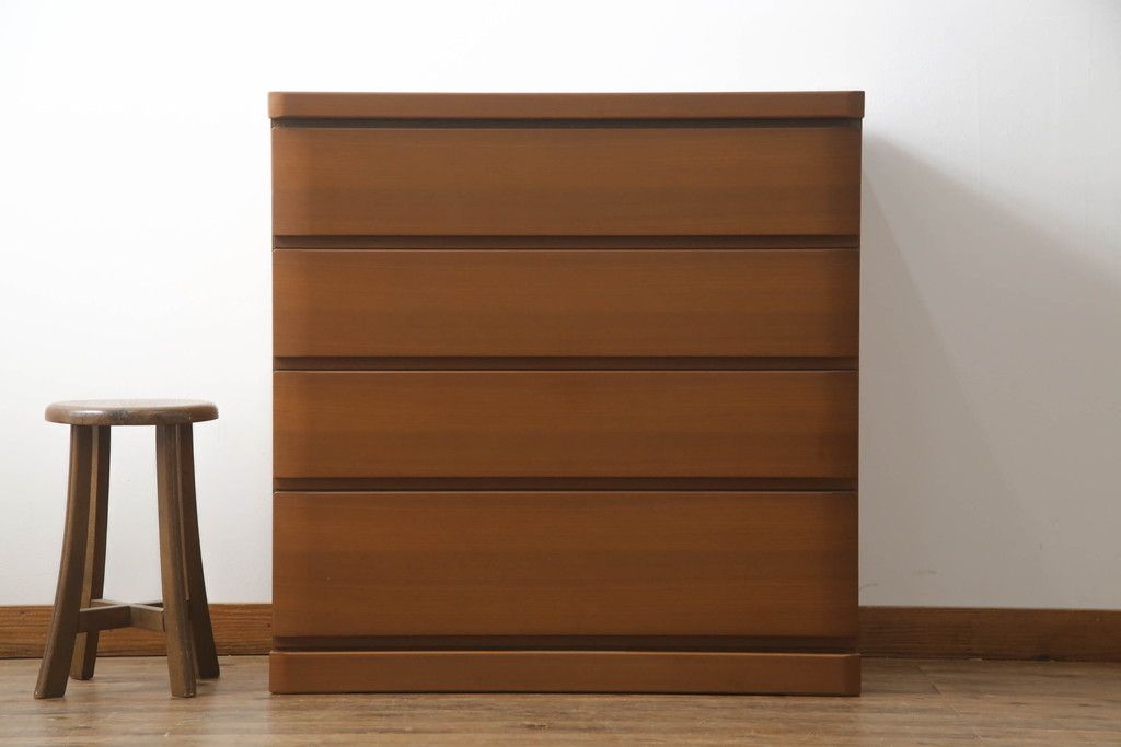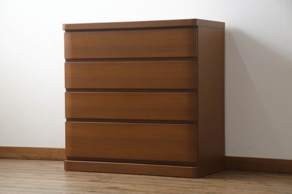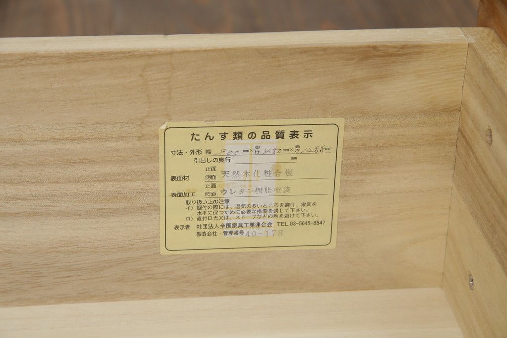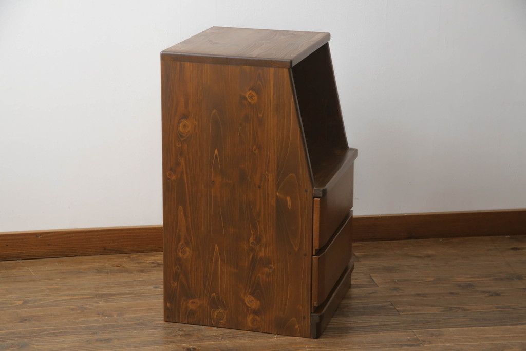 箪笥をサイドキャビネットとチェストにリメイク!上部2杯は新たに制作したオープンラックの引き出しにし、サイドキャビネットに加工。下部4杯は箪笥の天板を移設し、チェストに。いずれも現状の色味をベースに着色仕上げ。