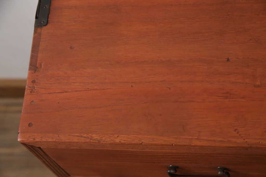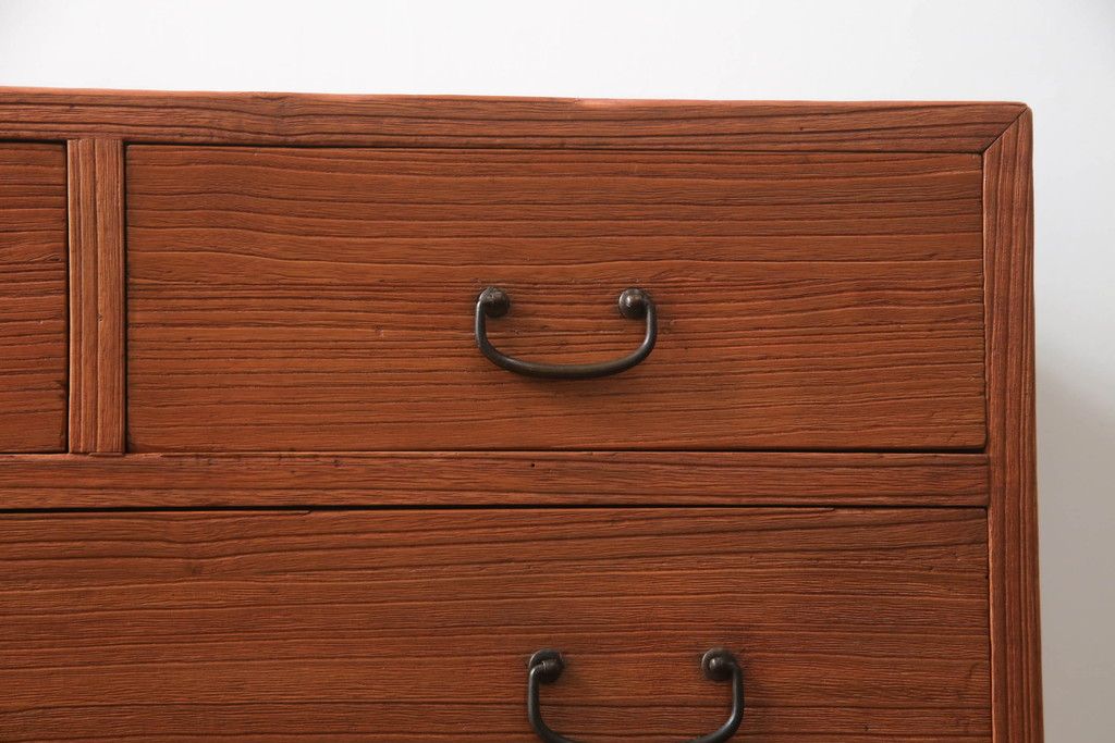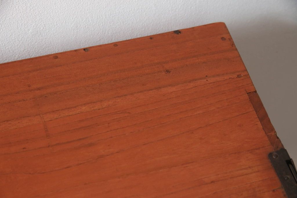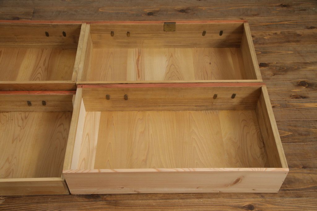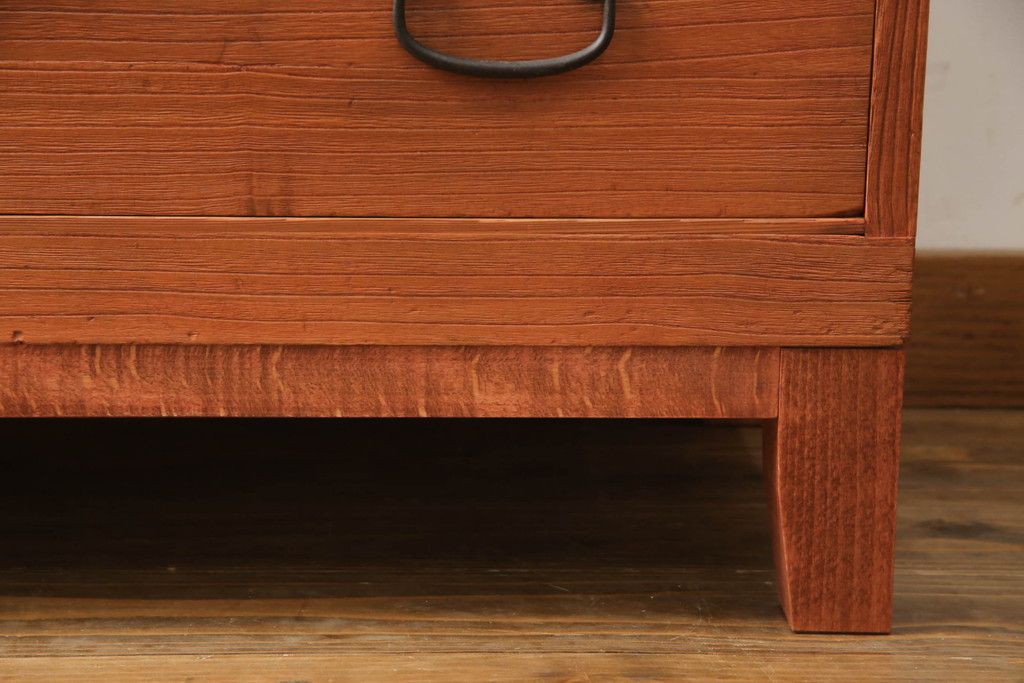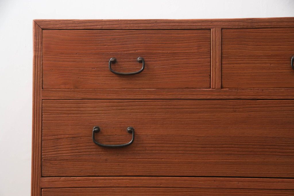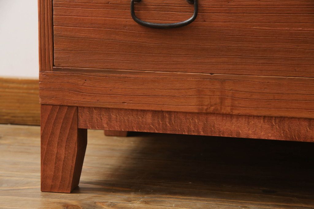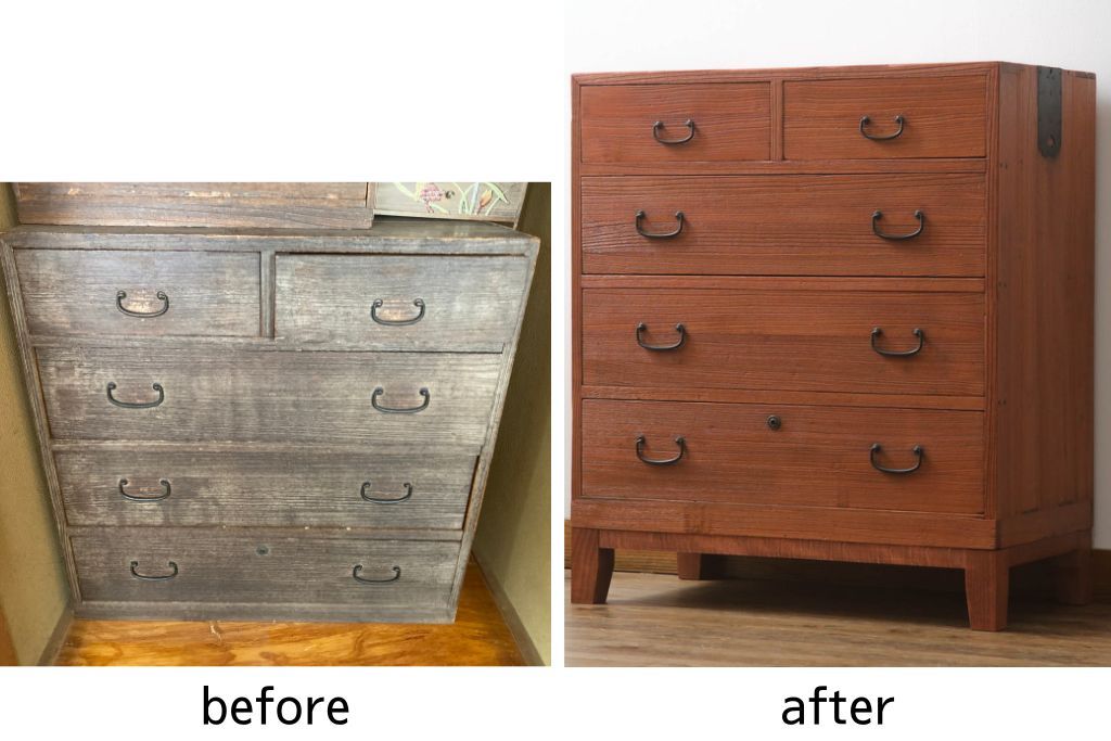 桐箪笥をチェストにリメイク!!ご購入予定のお仏壇の色に合わせて、全体を赤みがかった色に着色。天板を補強し、脚を取り付け。